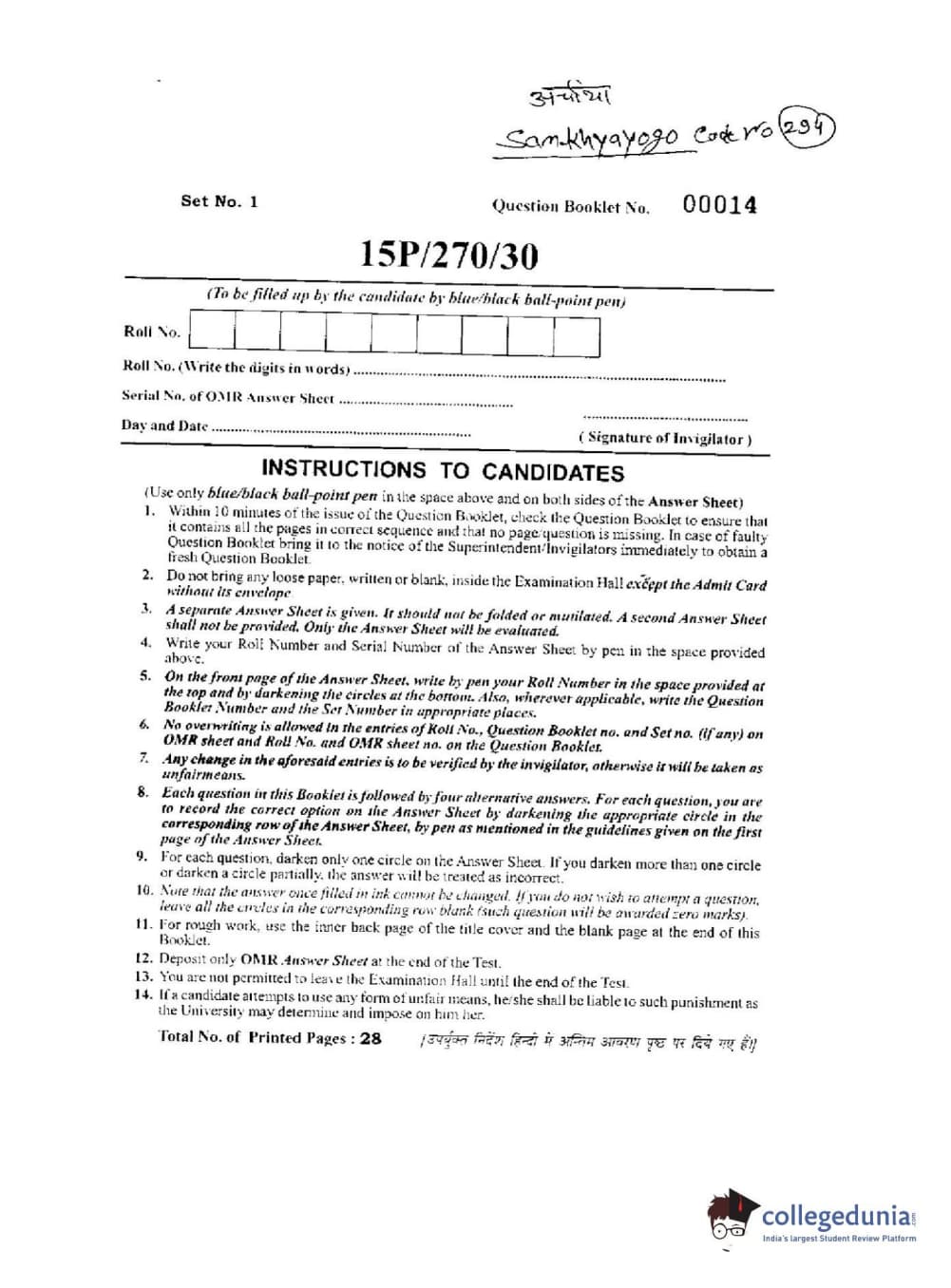 BHU PET 2015 Sankhyogo Question paper with answer key pdf is available for download. The exam was successfully organized by Banaras Hindu University (BHU). The question paper comprised a total of 150 questions.