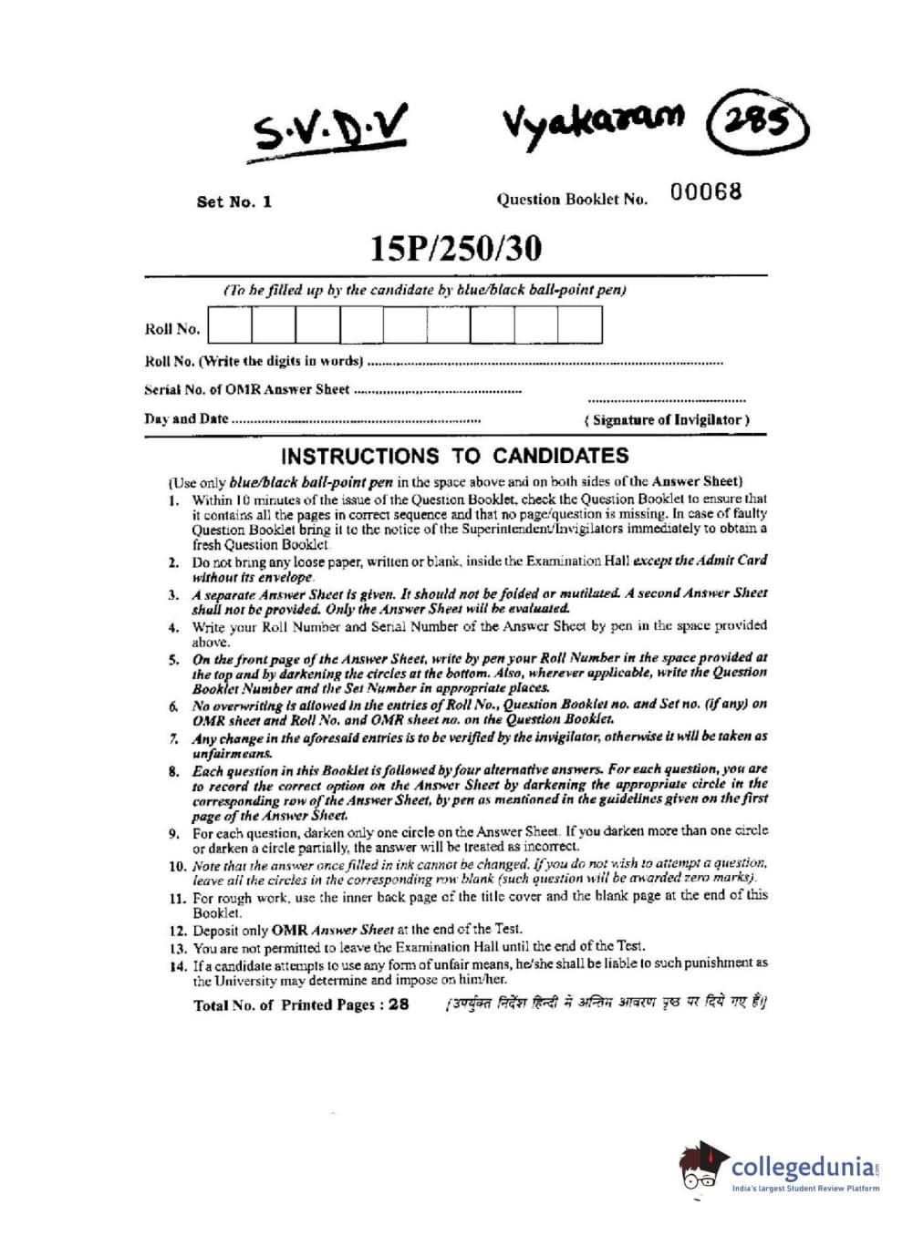 BHU PET 2015 Vyakaran Question paper with answer key pdf is available for download. The exam was successfully organized by Banaras Hindu University (BHU). The question paper comprised a total of 150 questions.