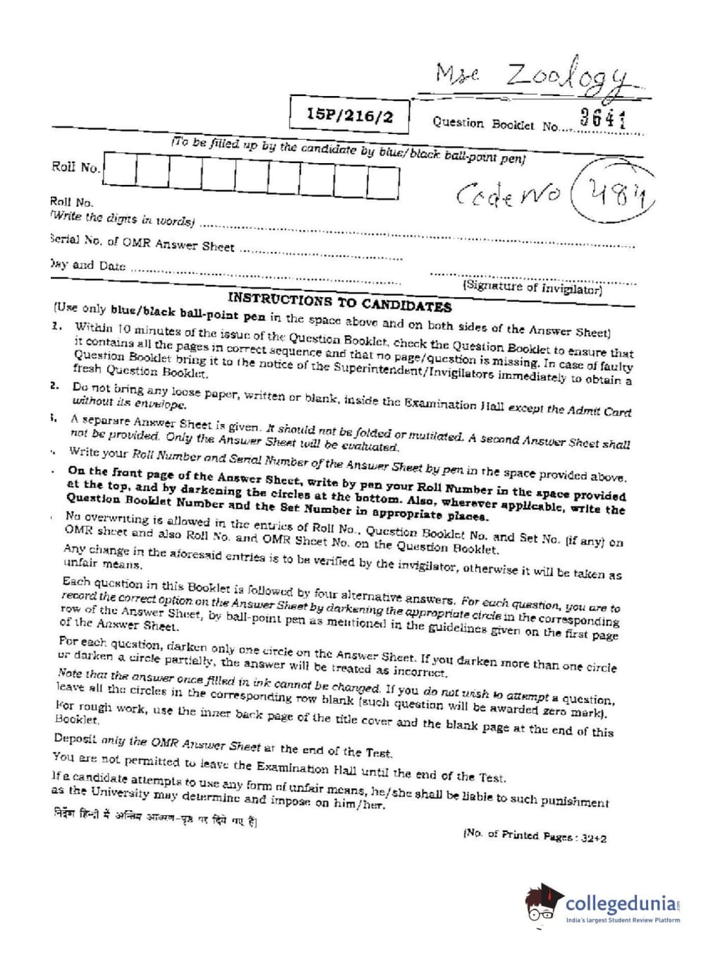 | BHU PET 2015 Zoology Question Paper PDF | BHU PET 2015 Zoology Answer Key PDF |
