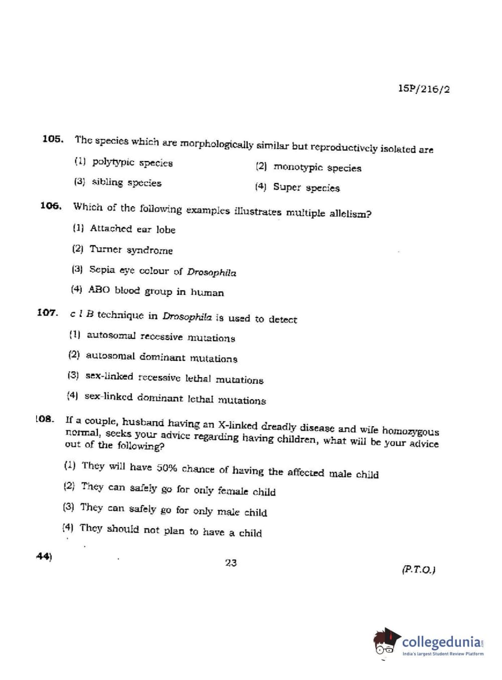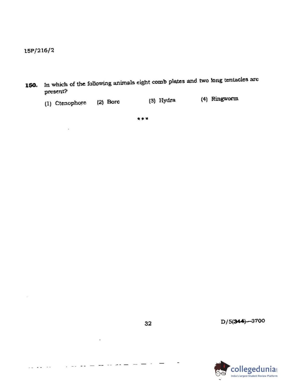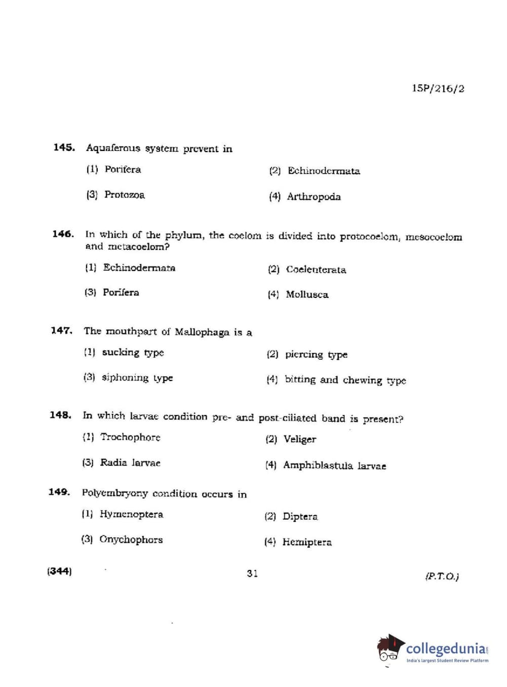 BHU PET 2015 Zoology Question paper with answer key pdf is available for download. The exam was successfully organized by Banaras Hindu University (BHU). The question paper comprised a total of 150 questions.