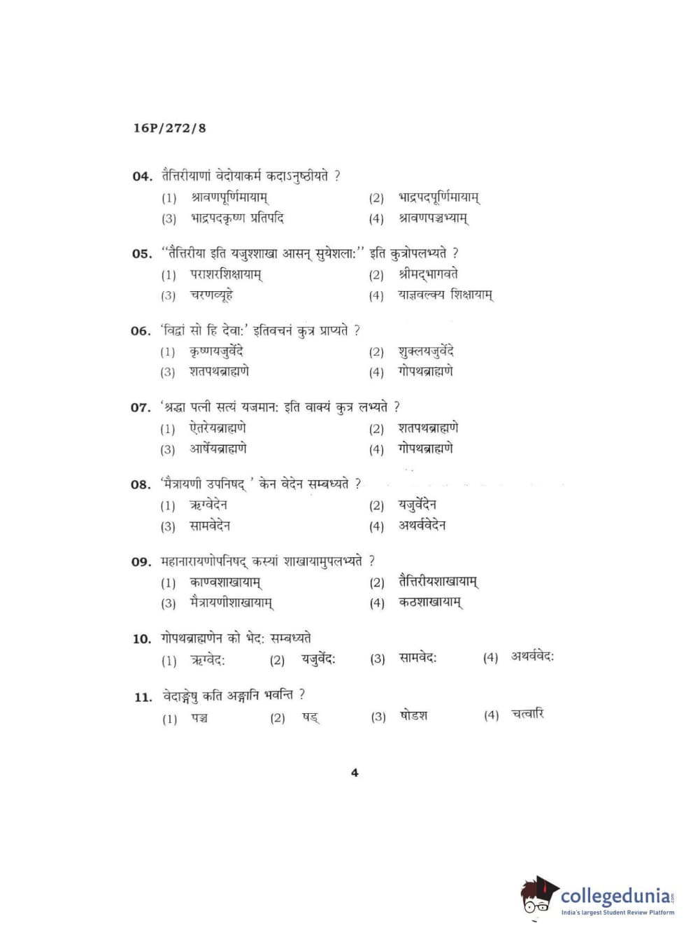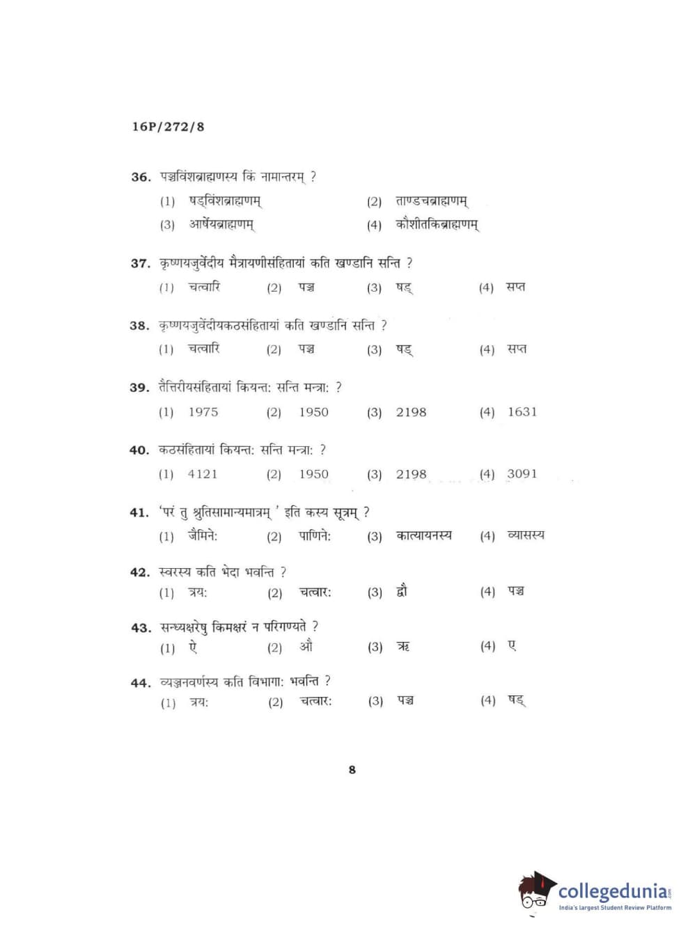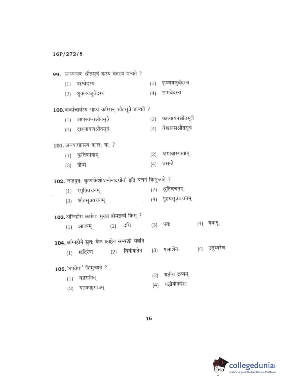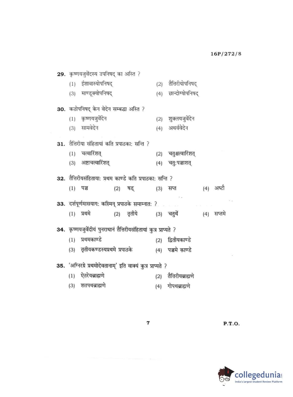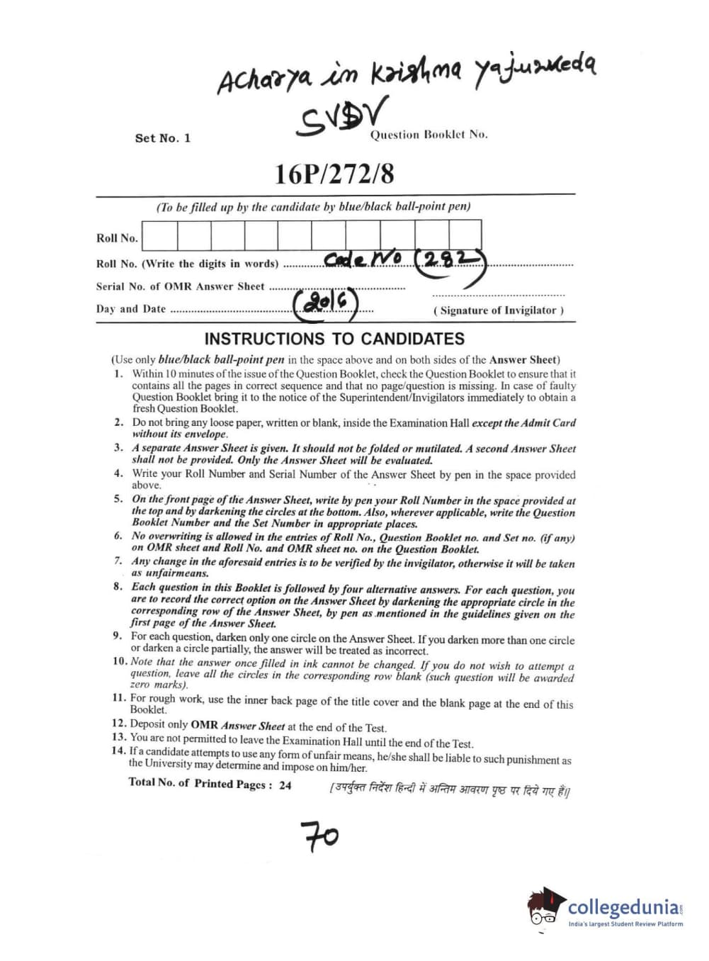 BHU PET 2016 ACHARYA IN KRISHNA YAJURVE Question Paper with Answer Key PDFs