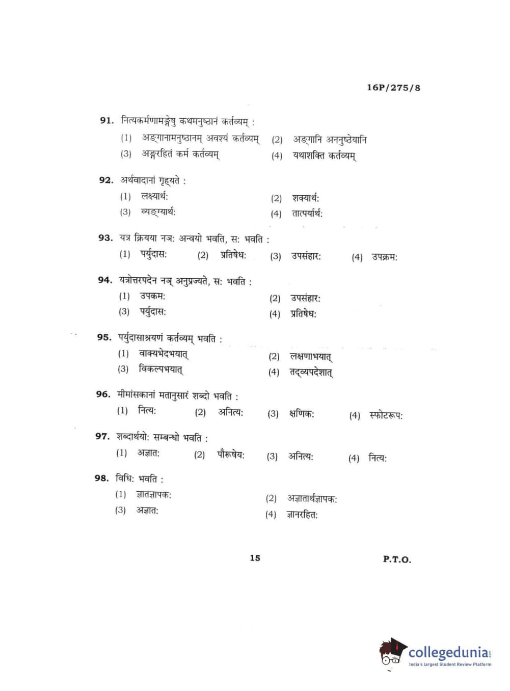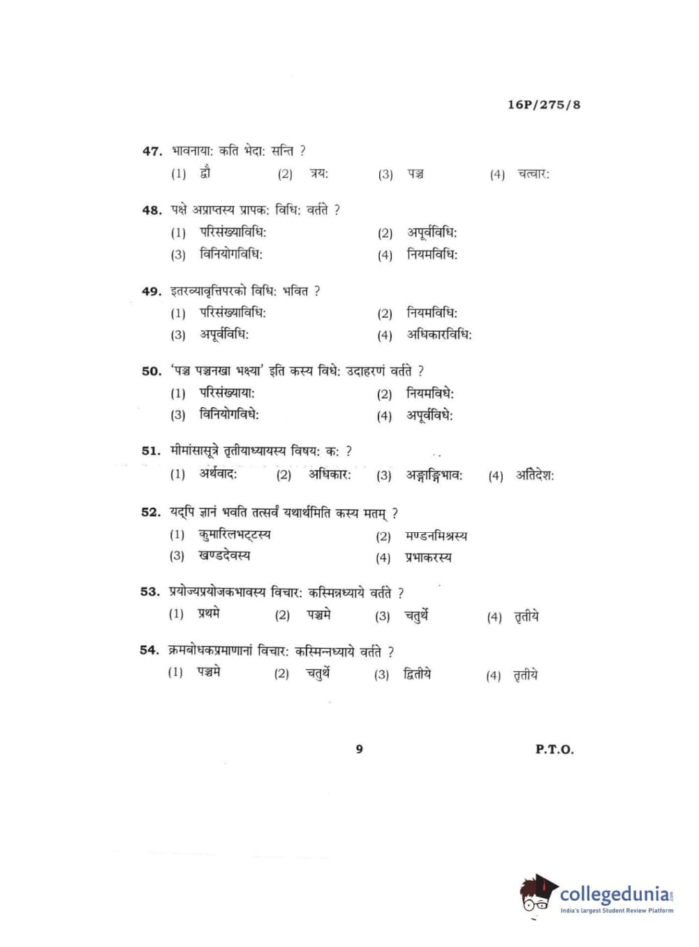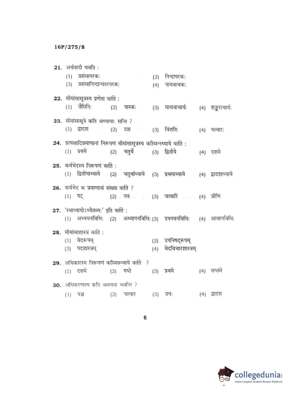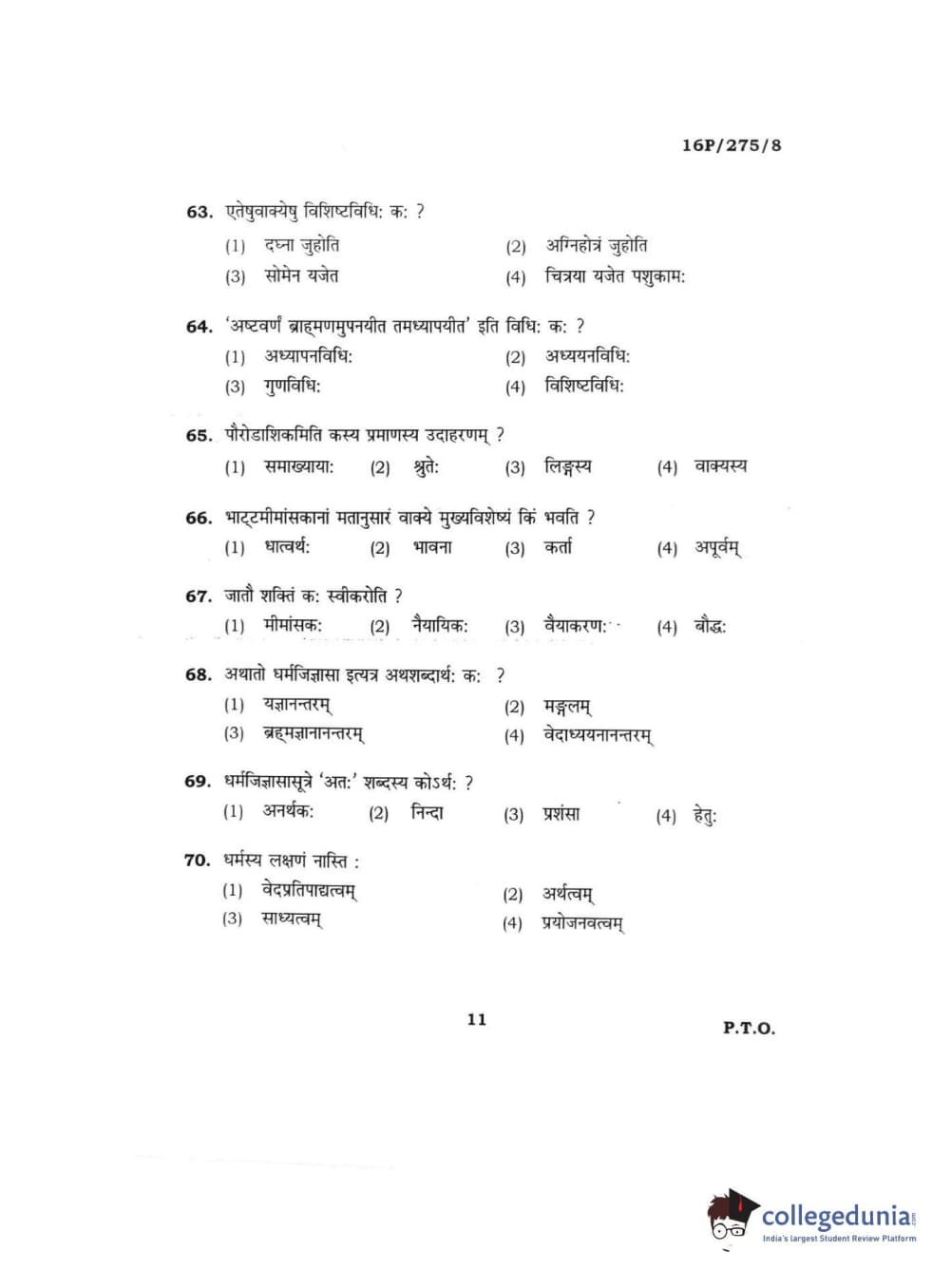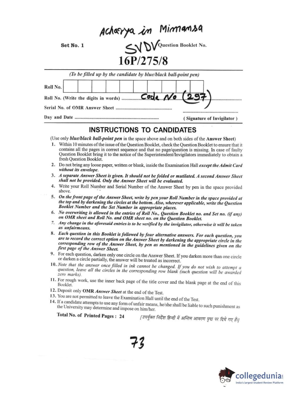 BHU PET 2016 ACHARYA IN MIMANSA Question Paper with Answer Key PDFs