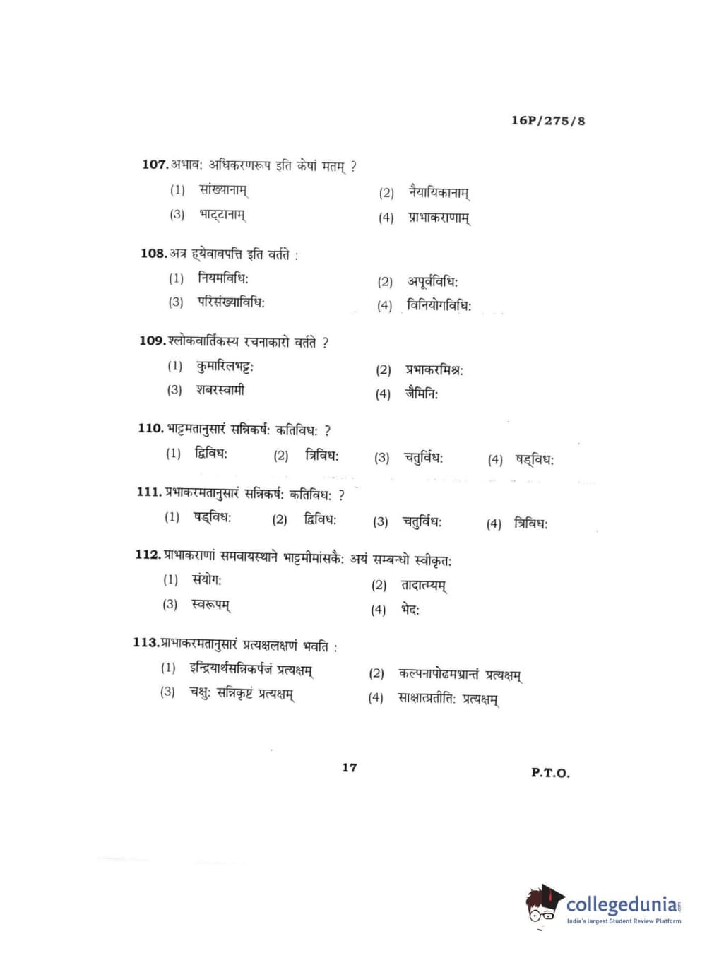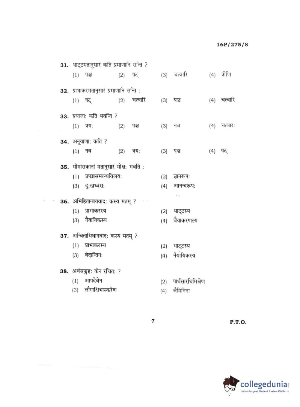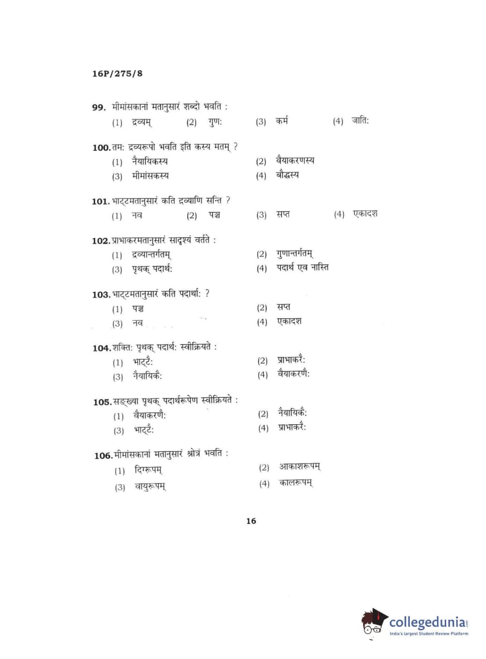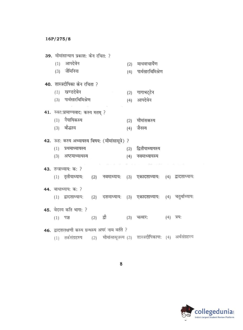 BHU PET 2016 ACHARYA IN MIMANSA Question Paper with Answer Key PDFs