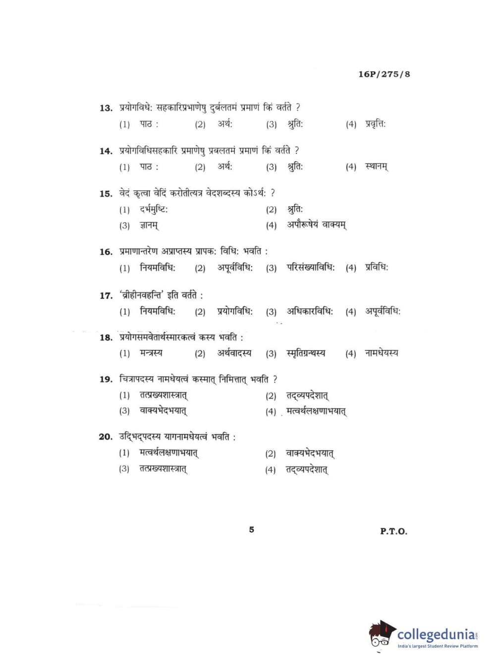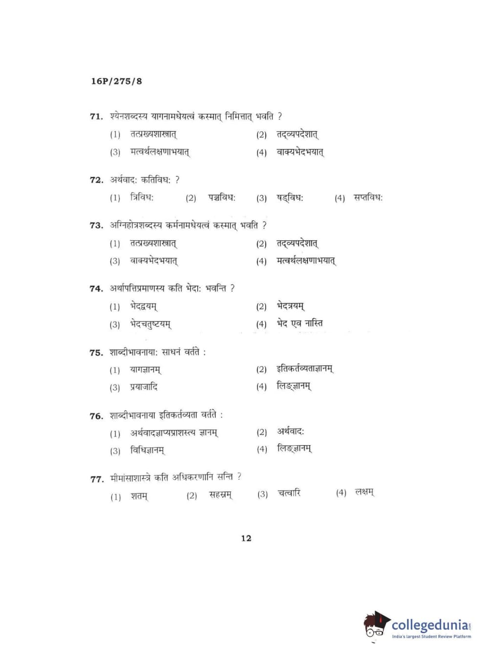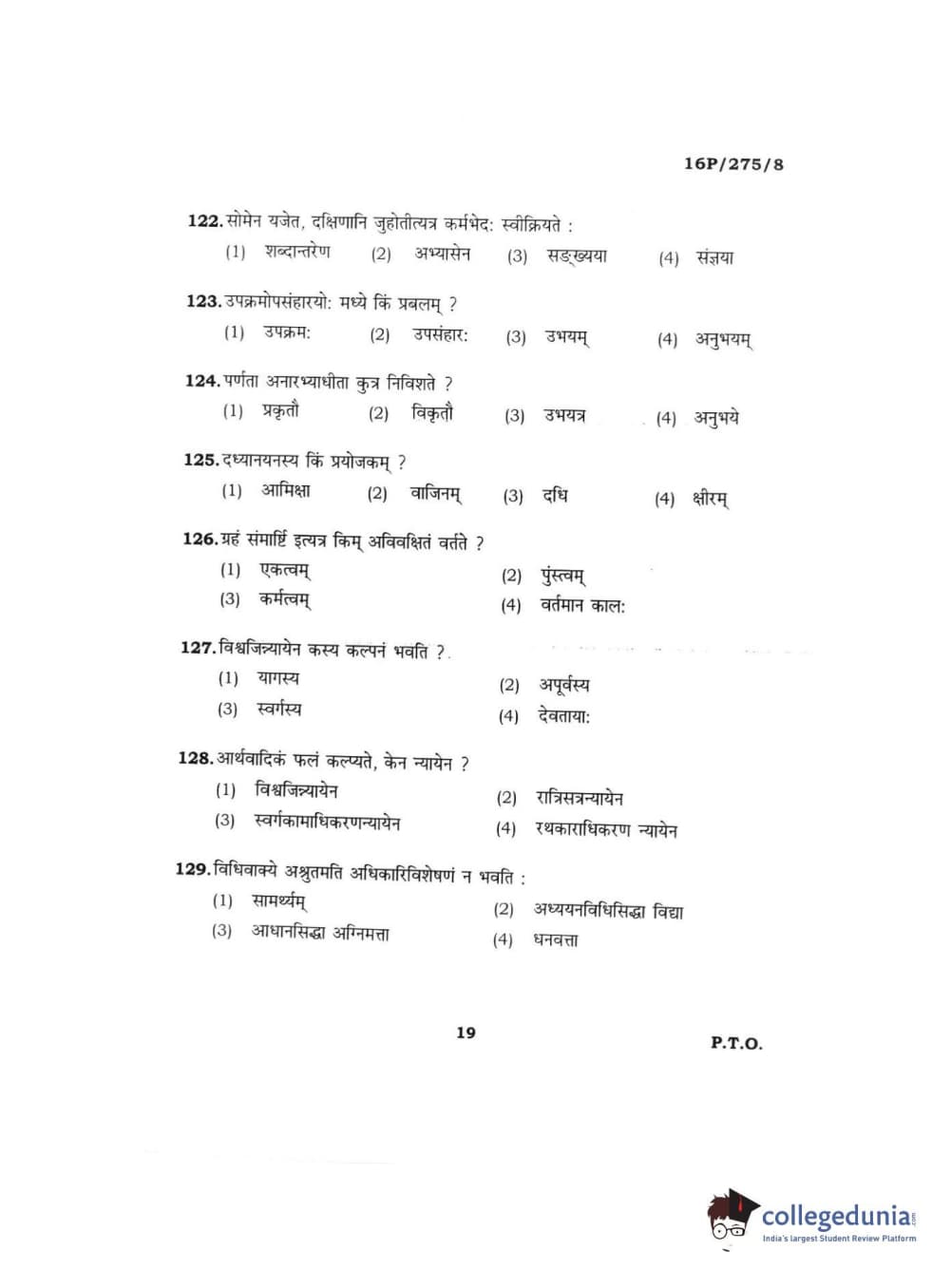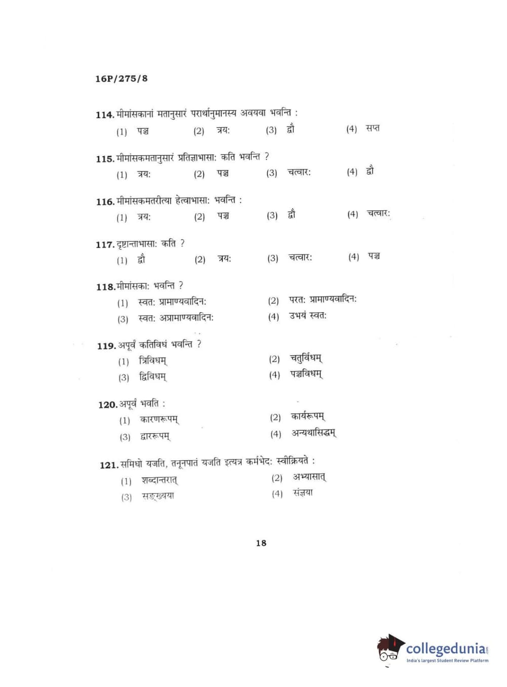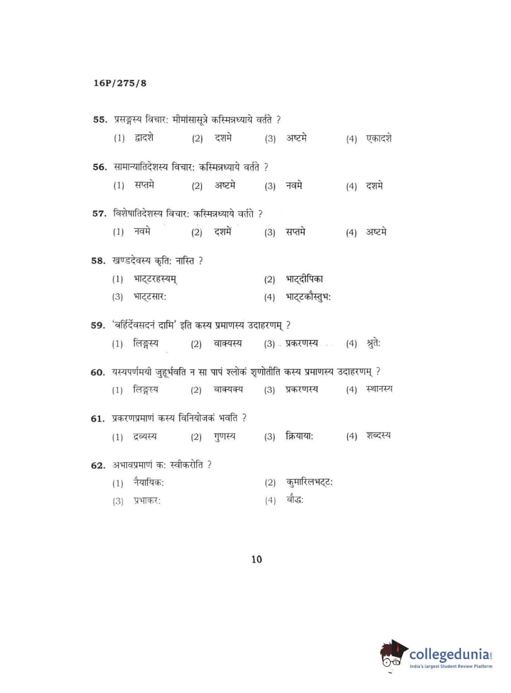 BHU PET 2016 ACHARYA IN MIMANSA Question Paper with Answer Key PDFs