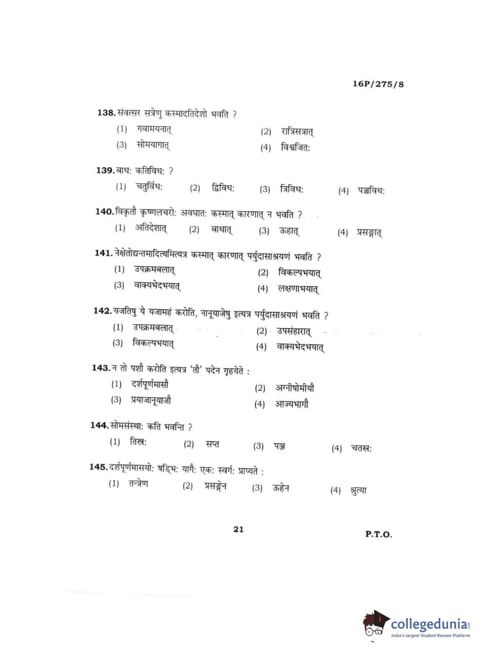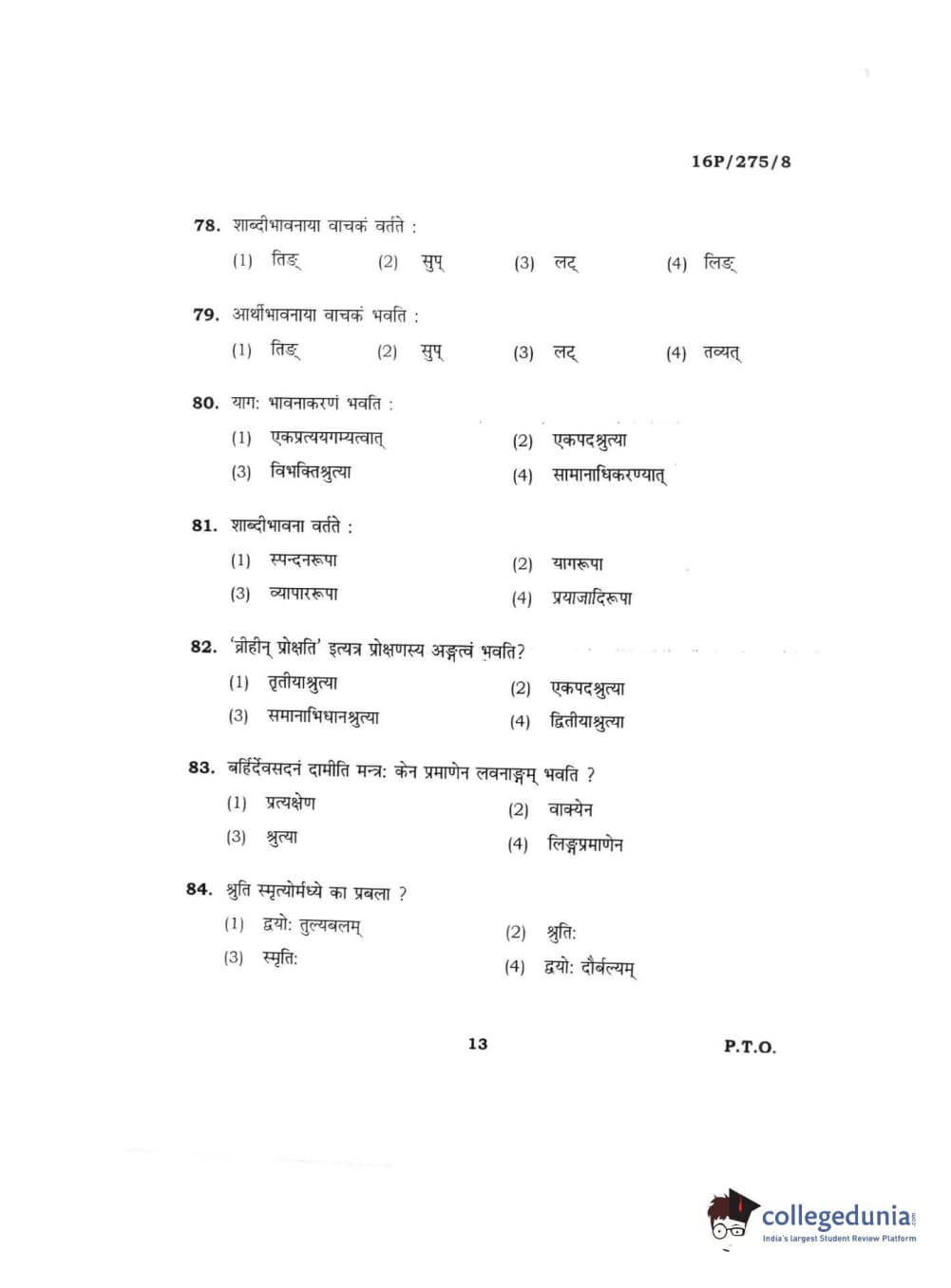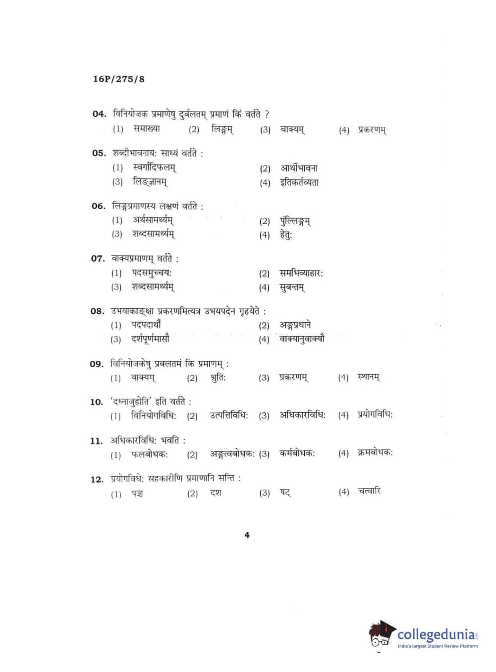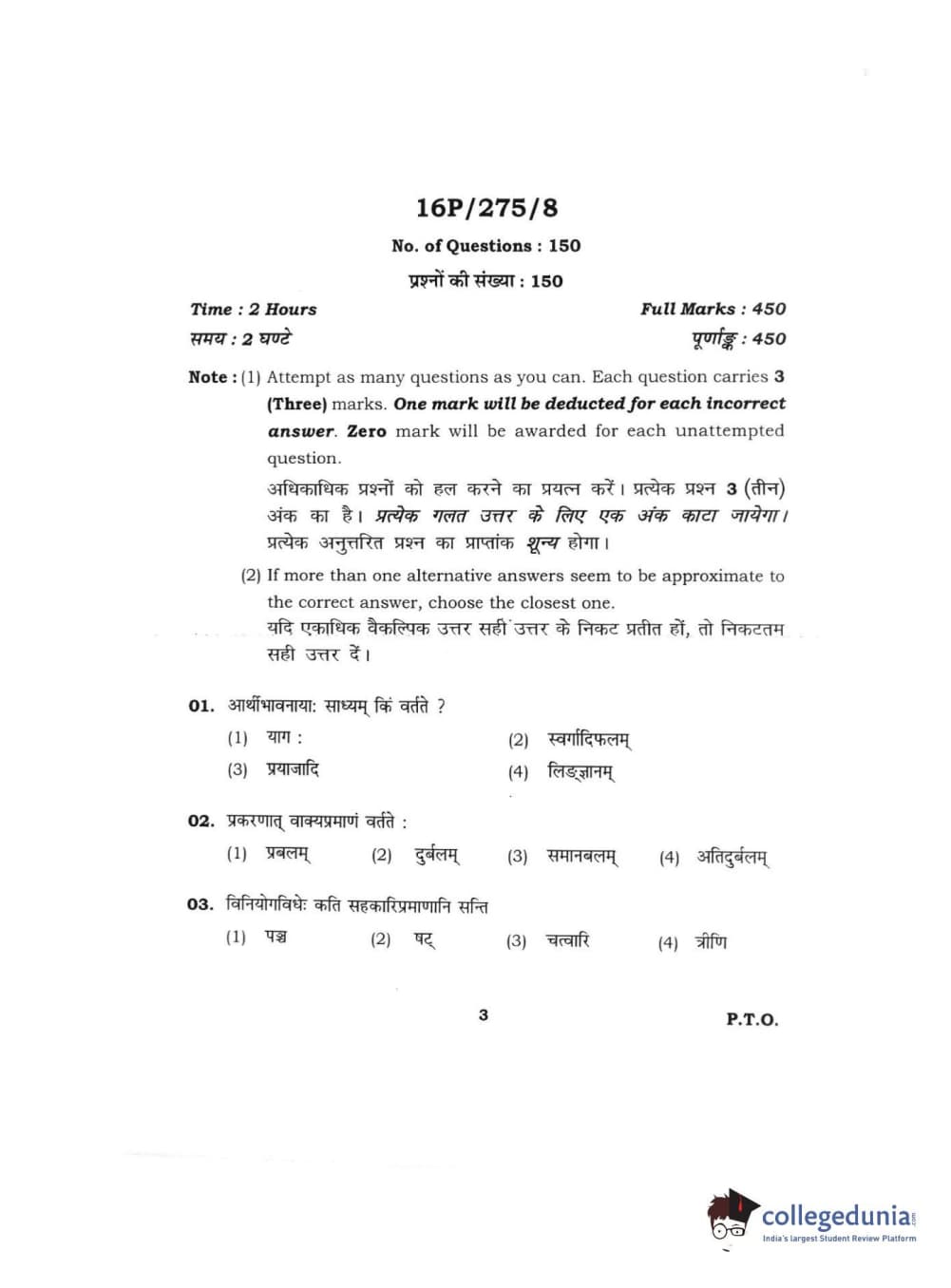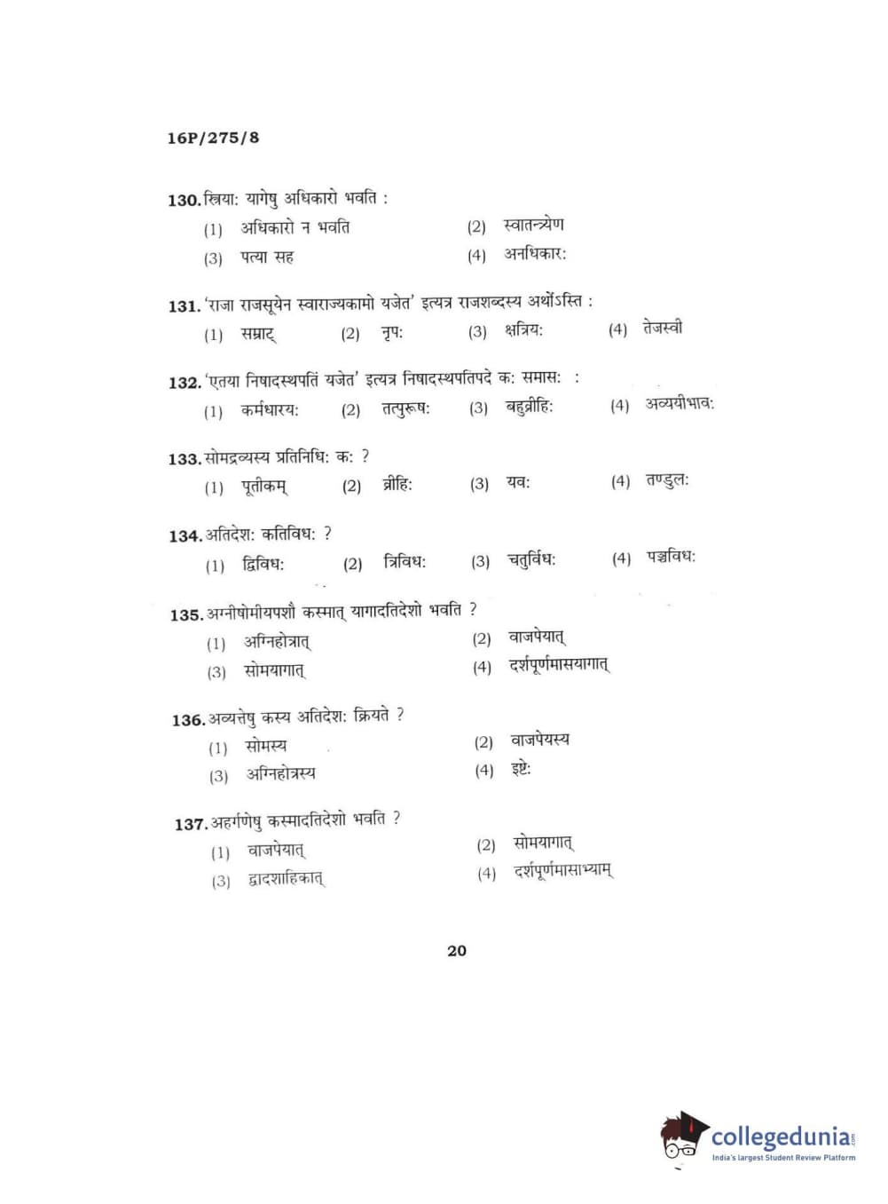 BHU PET 2016 ACHARYA IN MIMANSA Question Paper with Answer Key PDFs