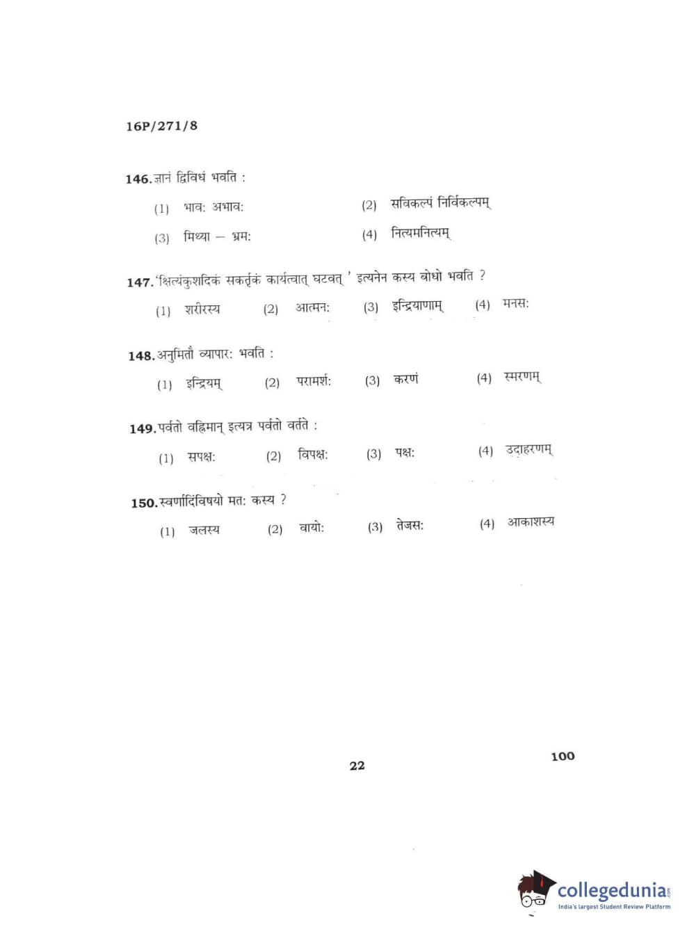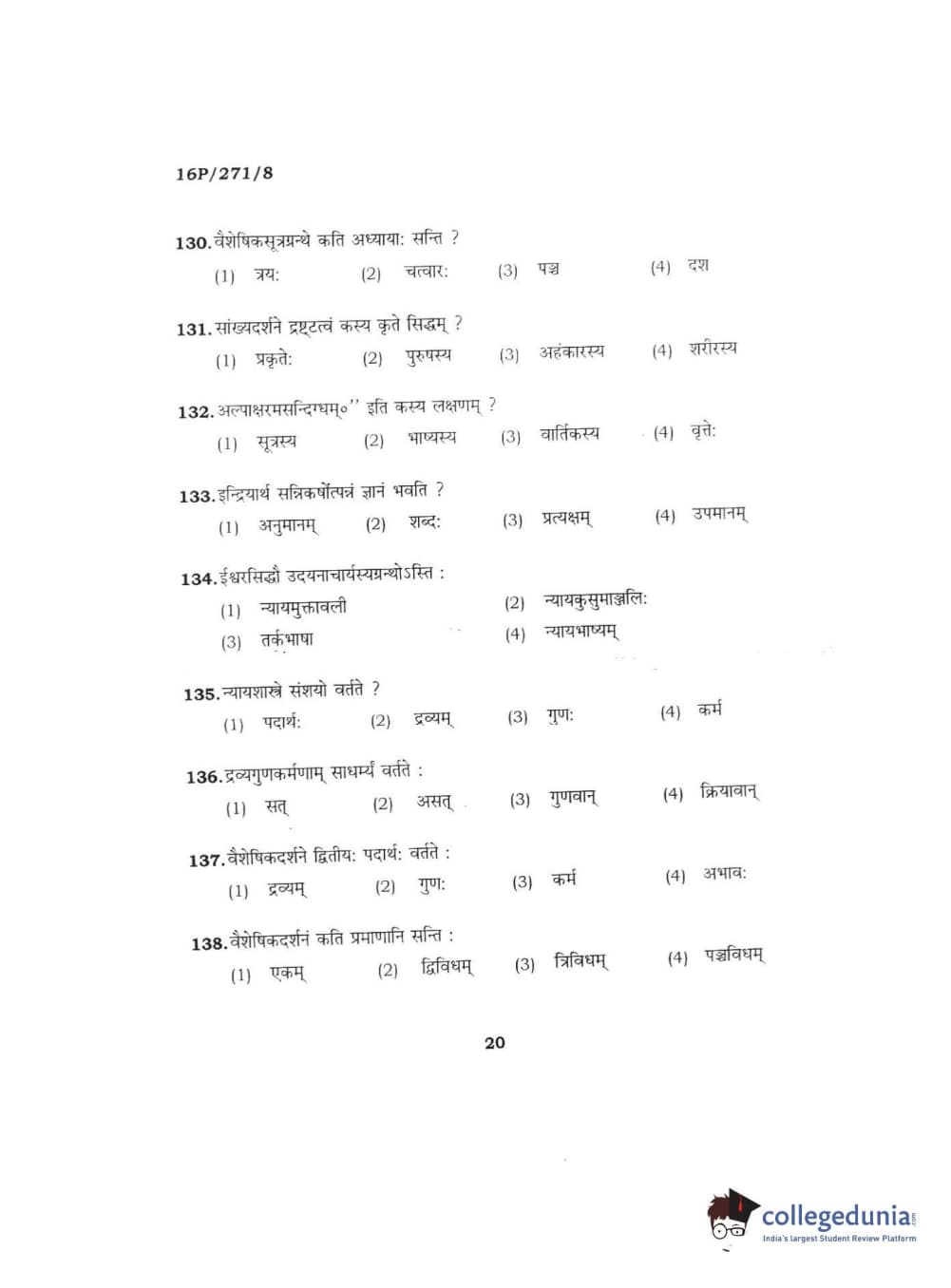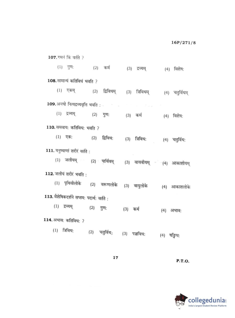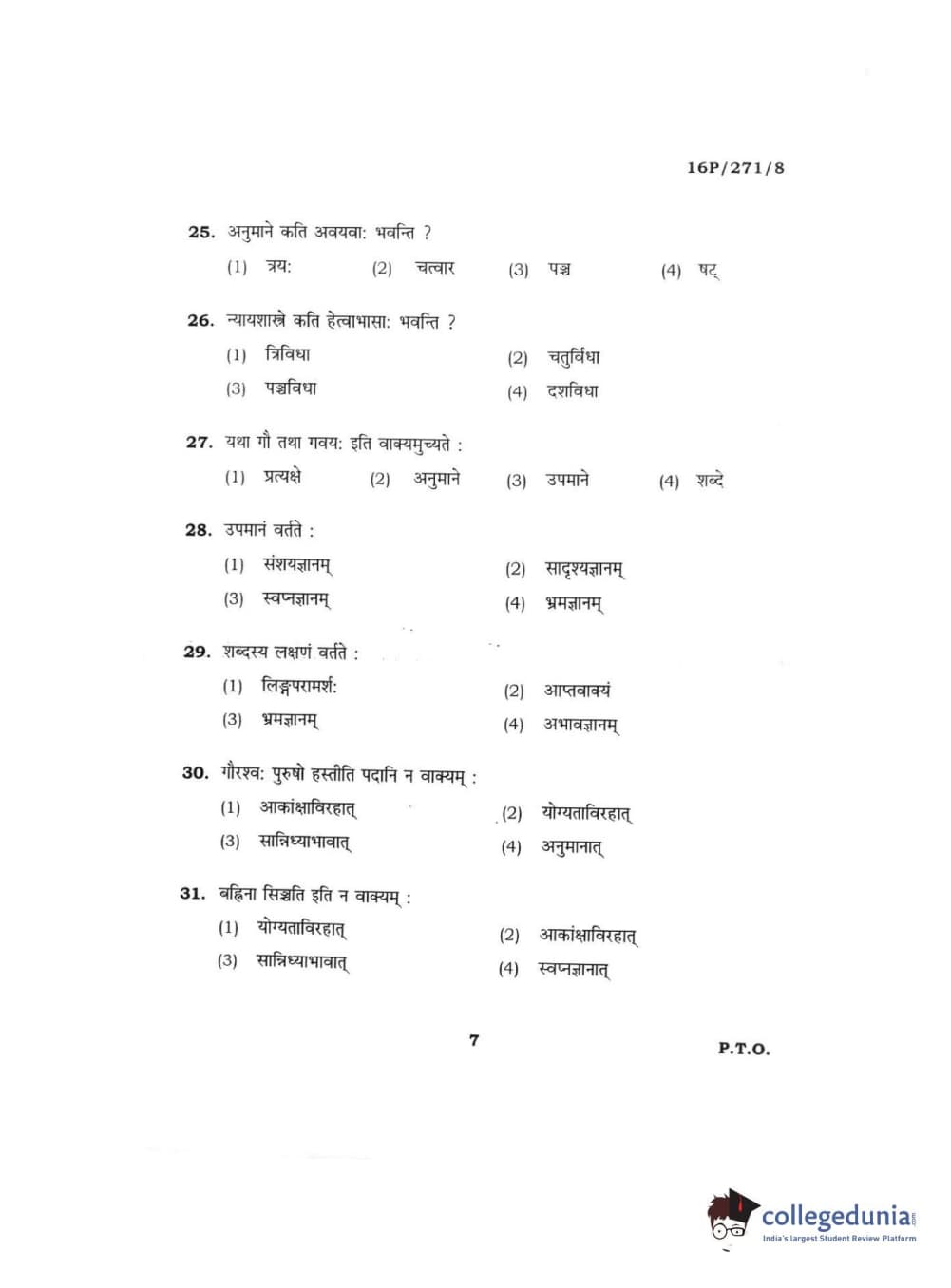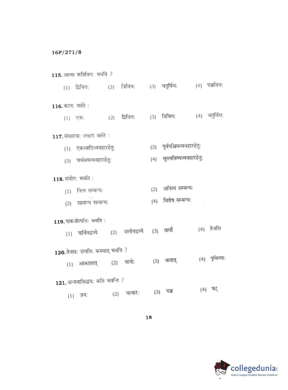 BHU PET 2016 ACHARYA IN PRACHIN NYAYA Question Paper with Answer Key PDFs