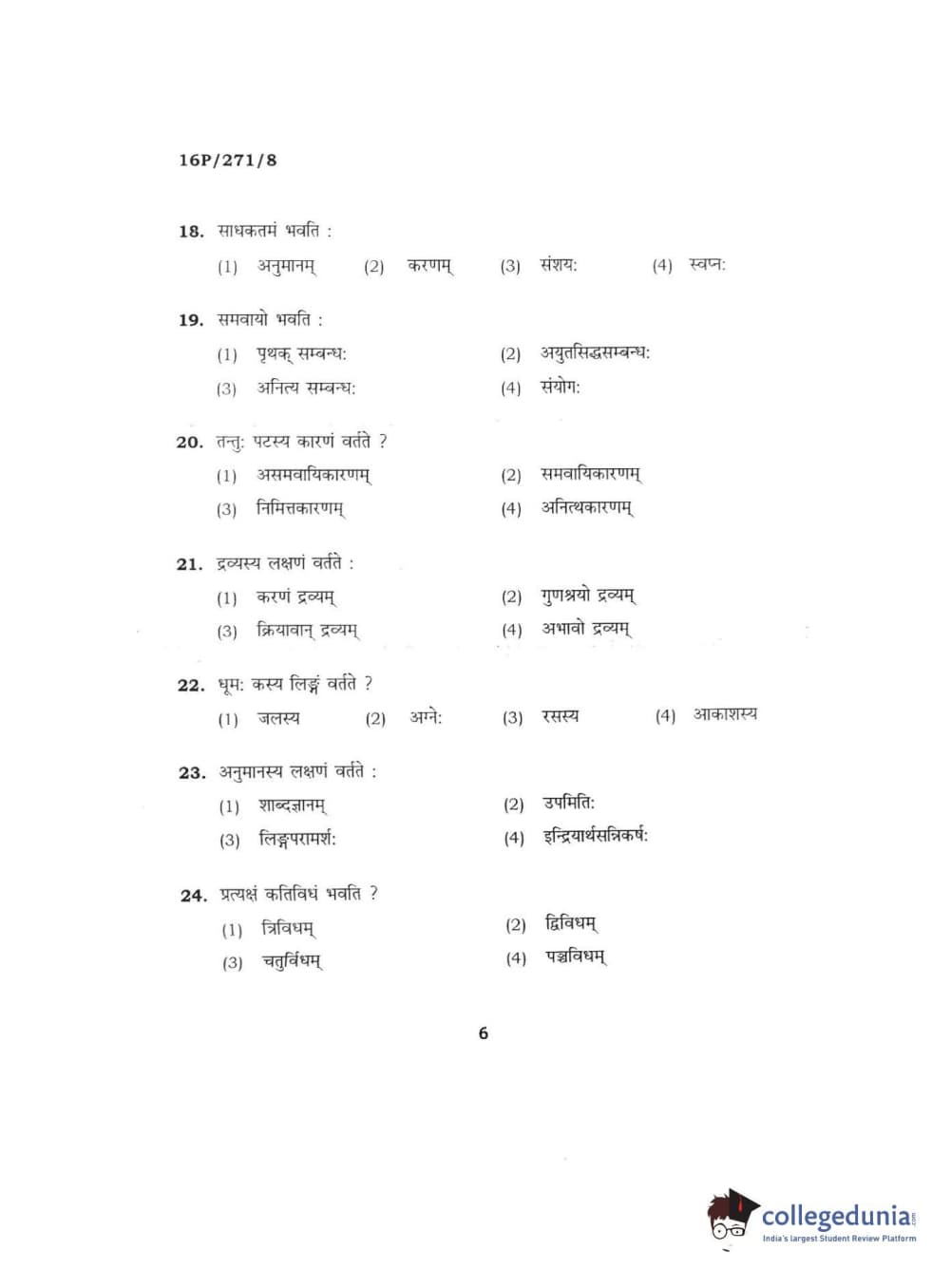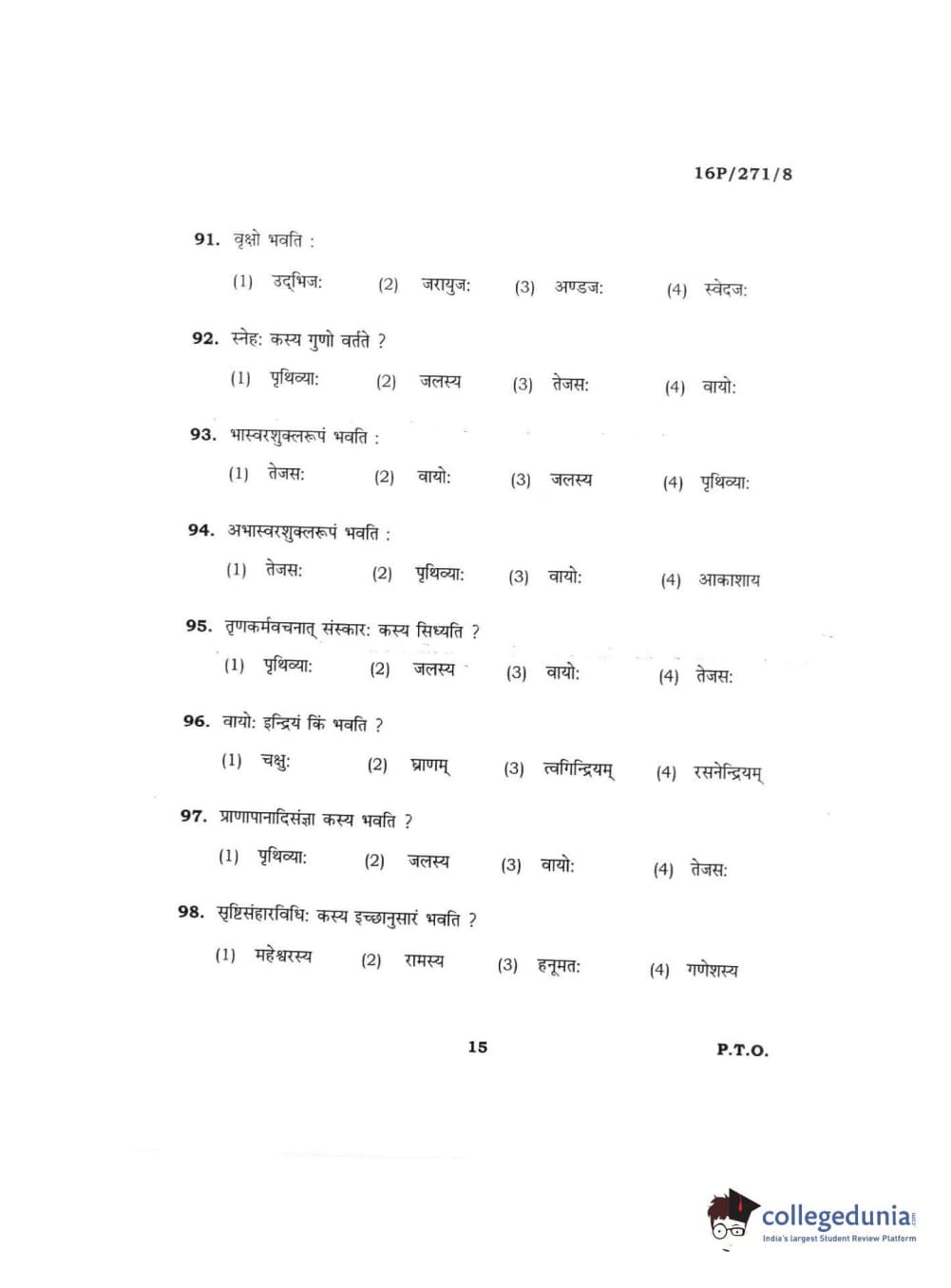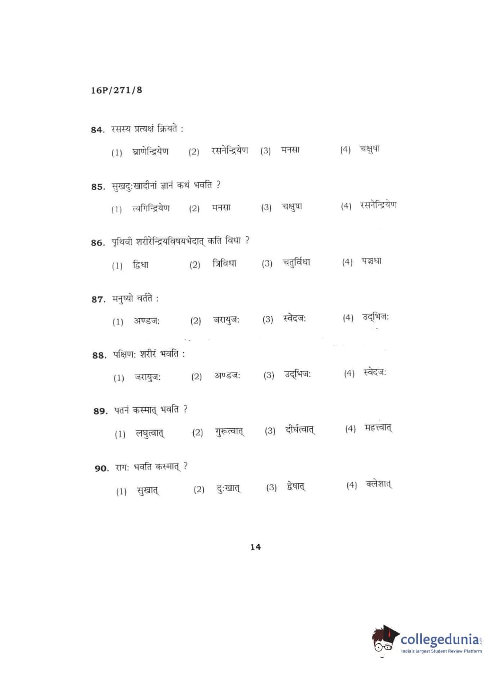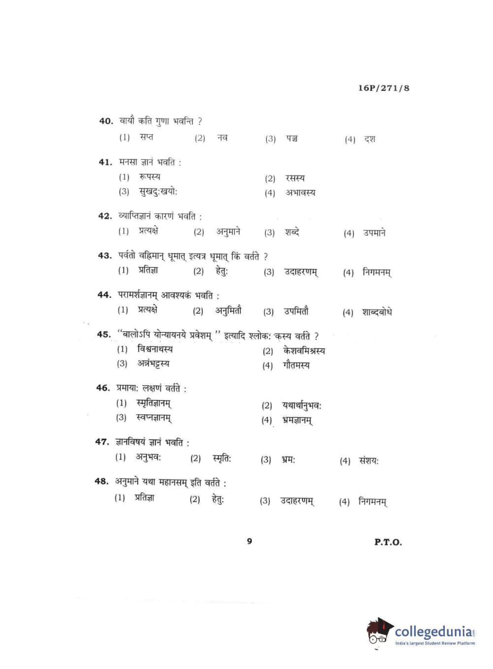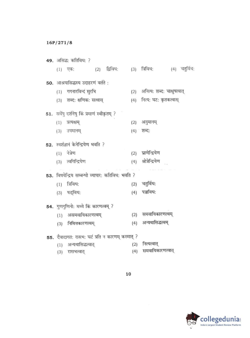 BHU PET 2016 ACHARYA IN PRACHIN NYAYA Question Paper with Answer Key PDFs