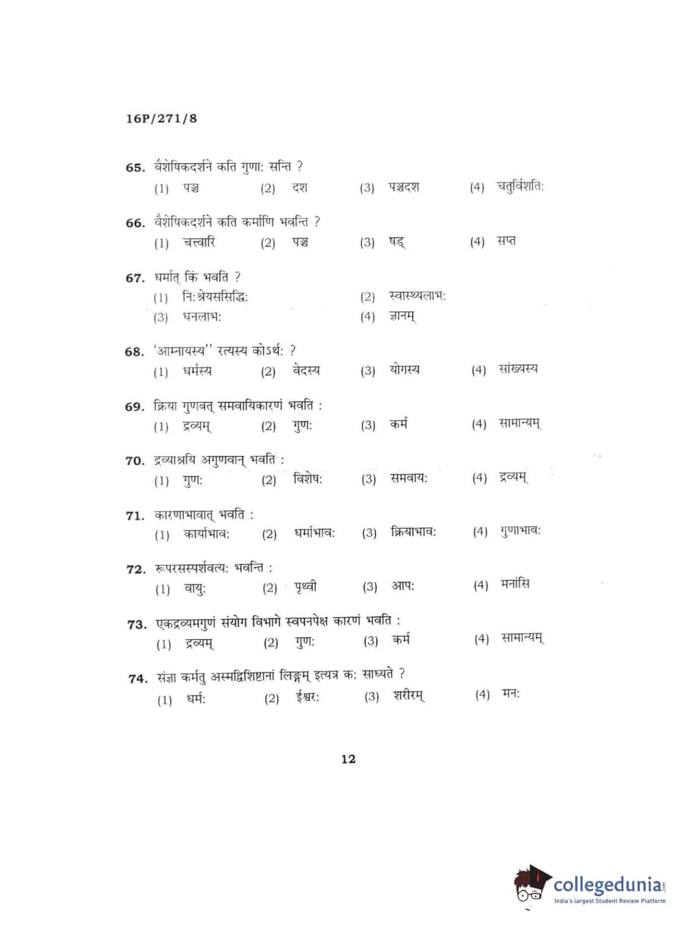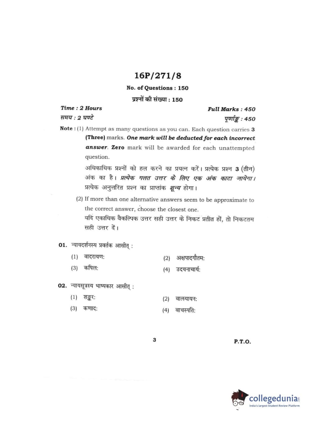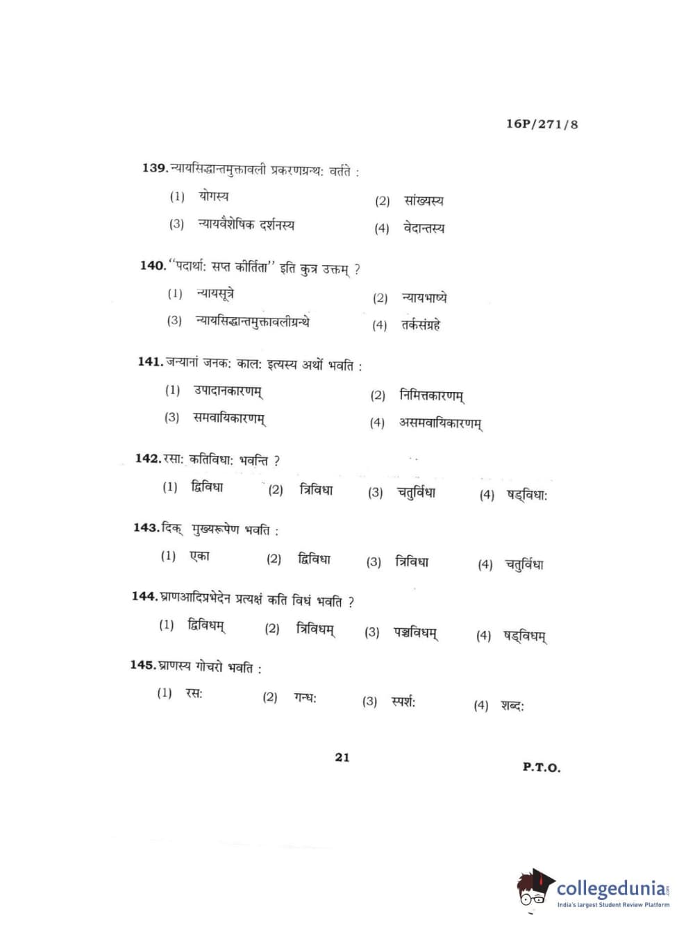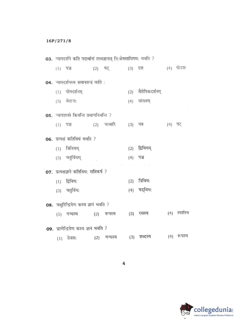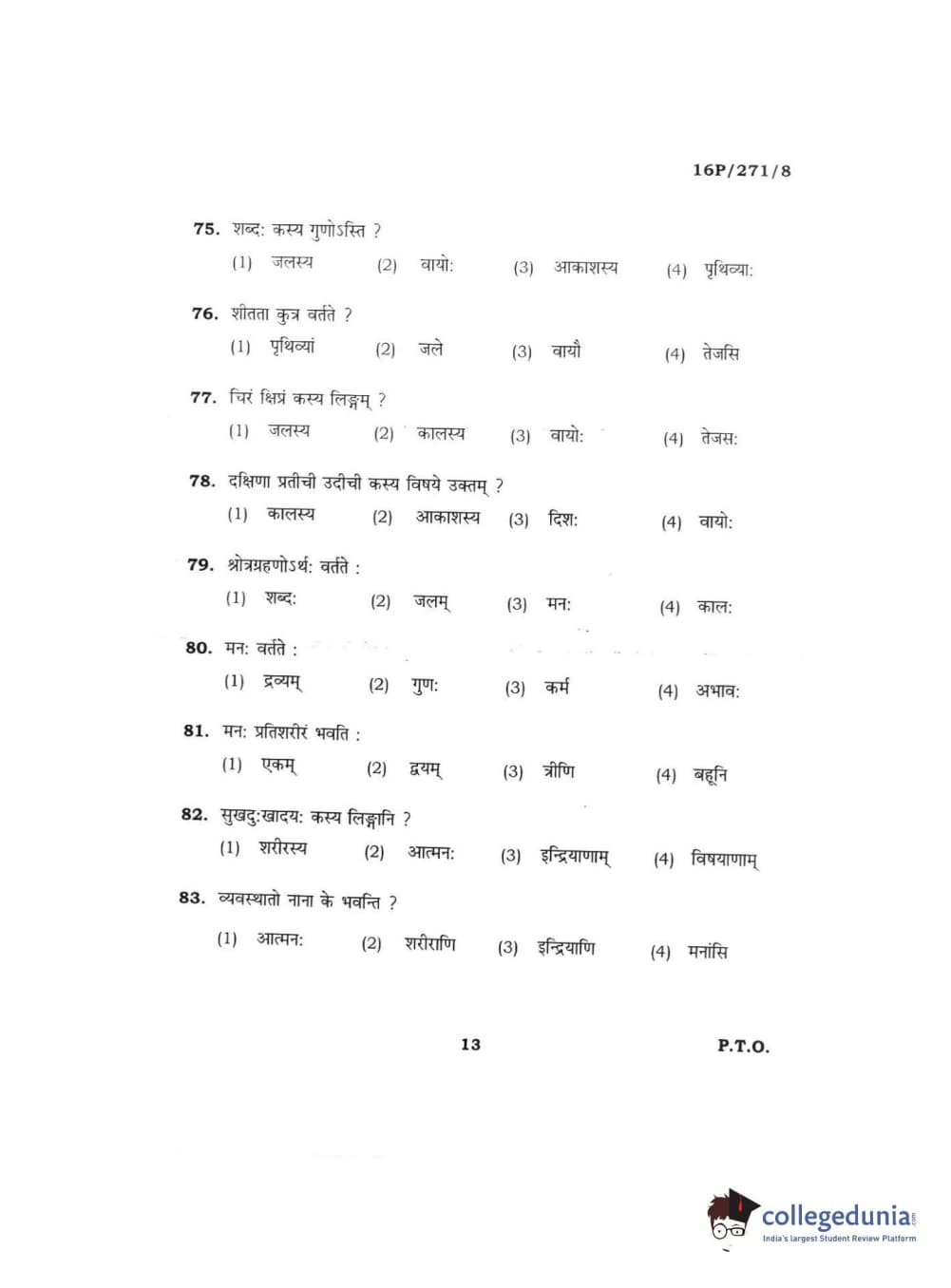 BHU PET 2016 ACHARYA IN PRACHIN NYAYA Question Paper with Answer Key PDFs