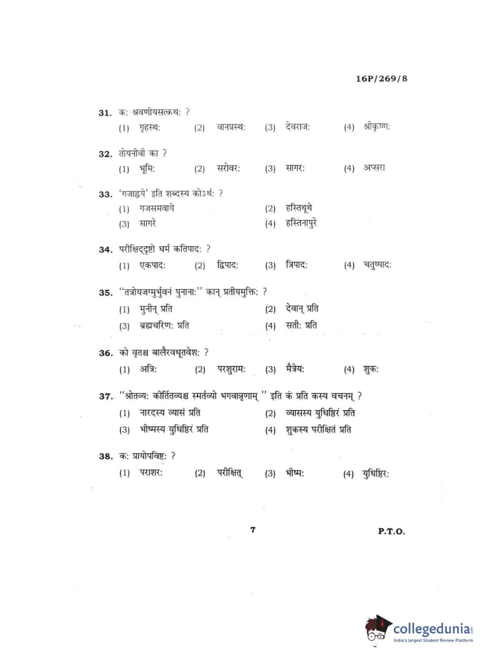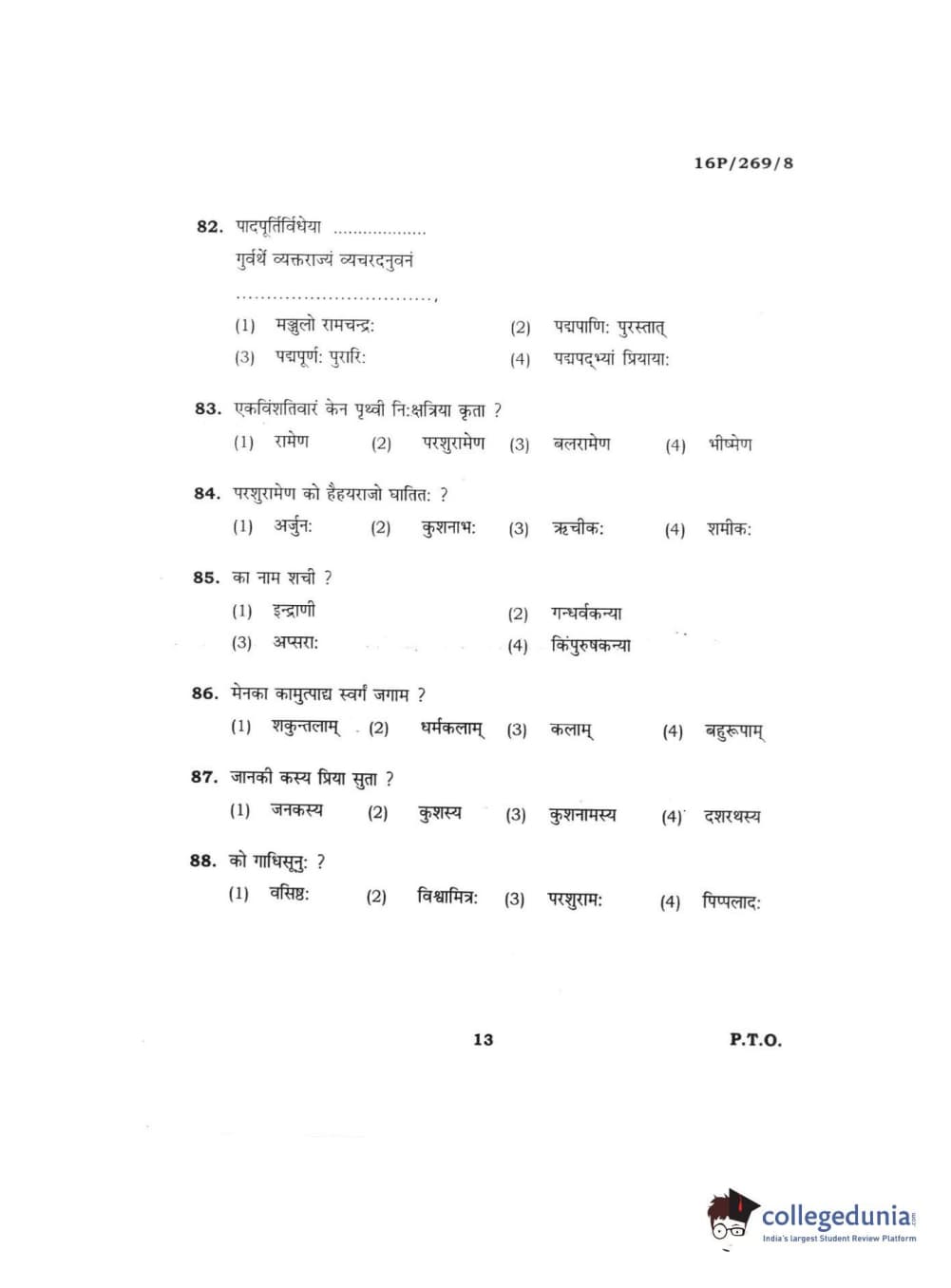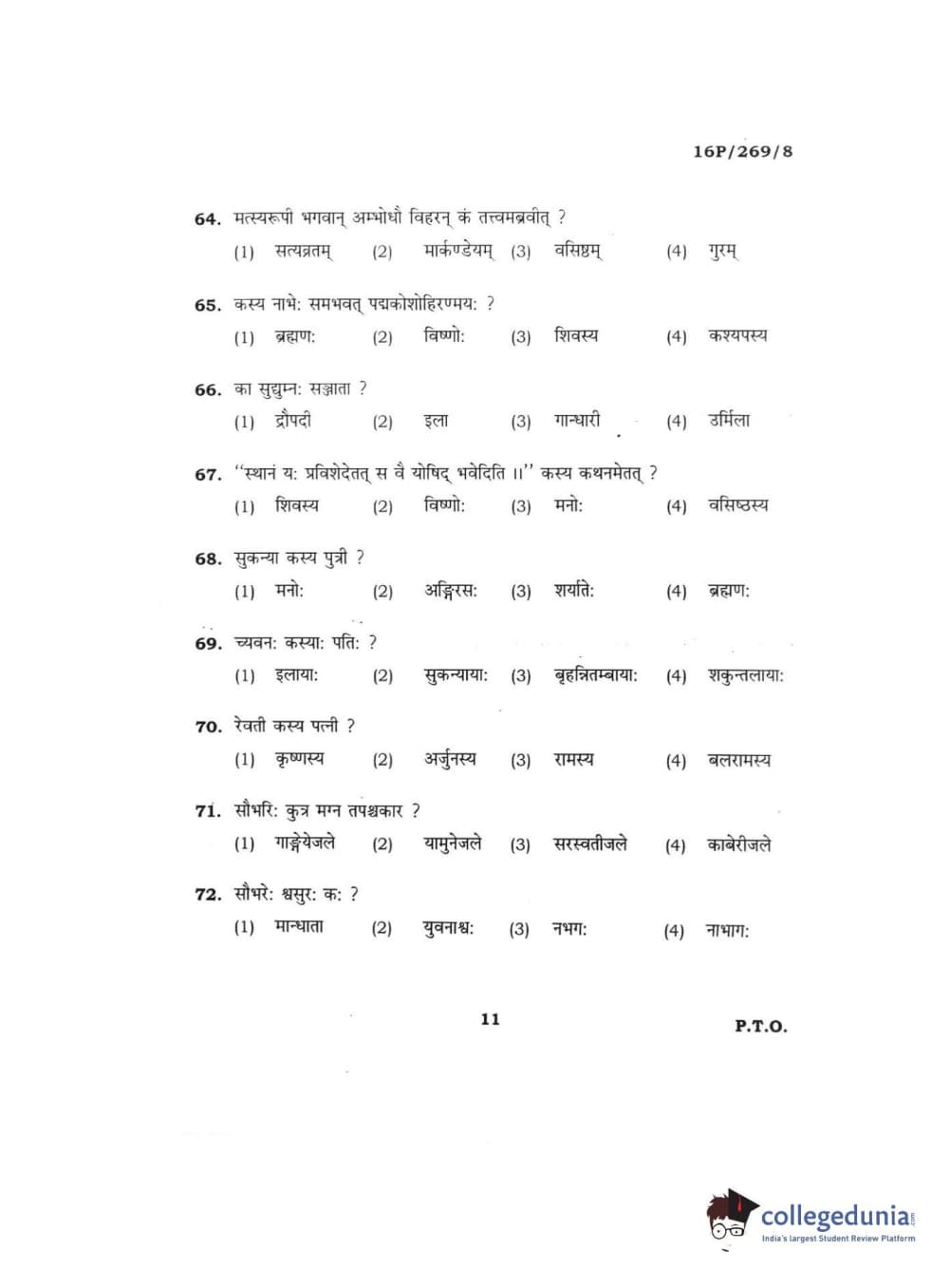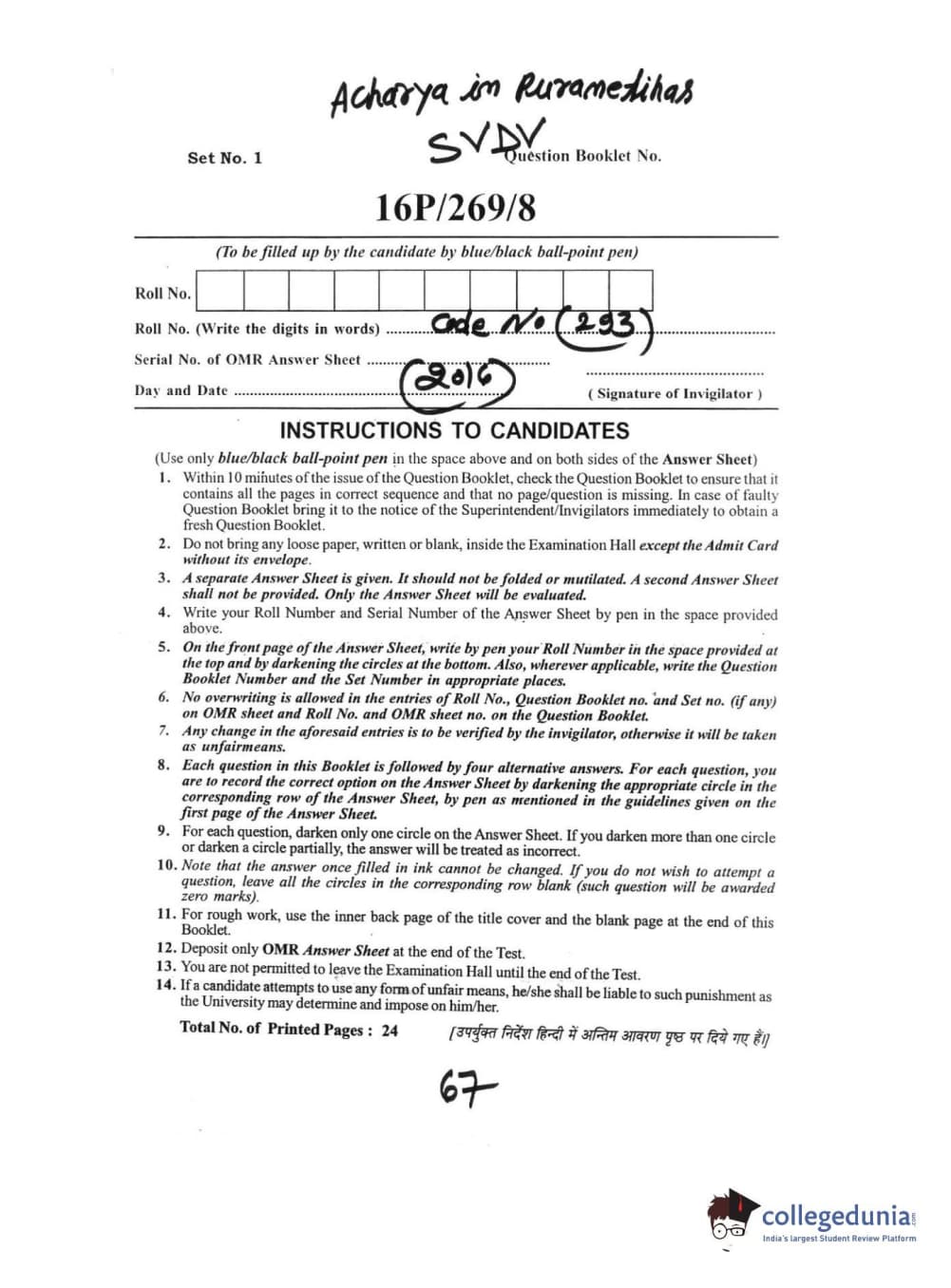 BHU PET 2016 ACHARYA IN PURANETIHAS Question Paper with Answer Key PDFs