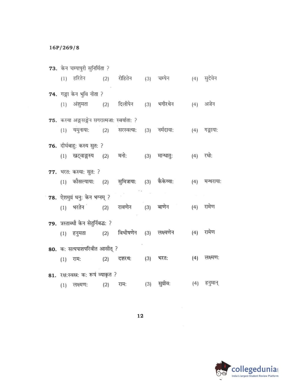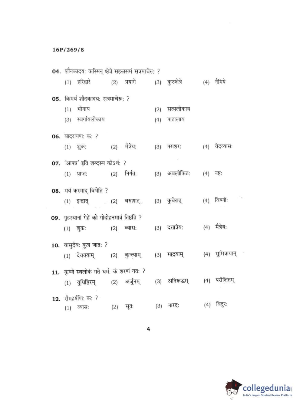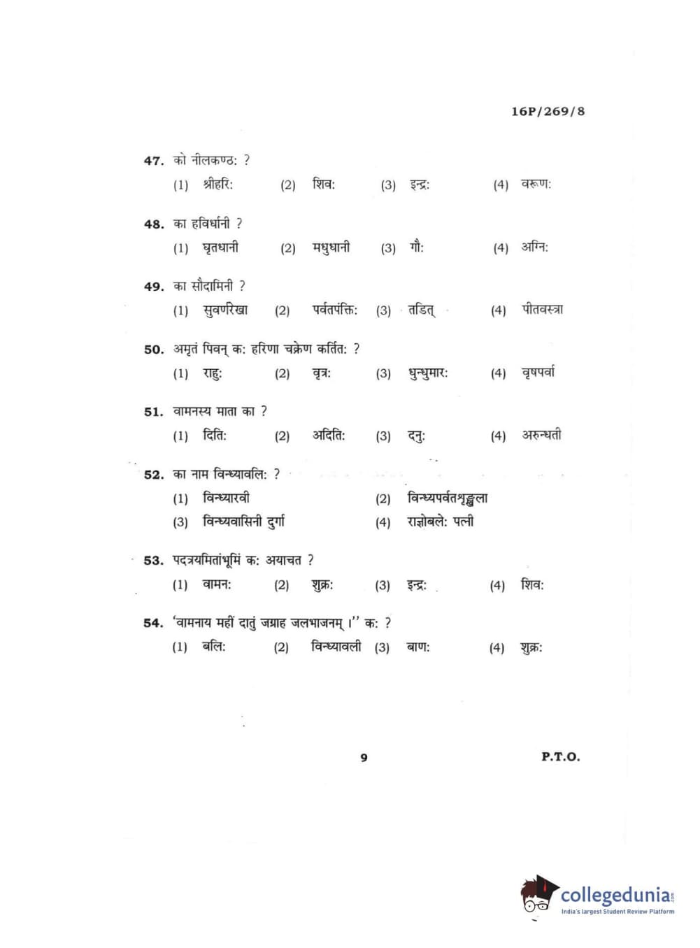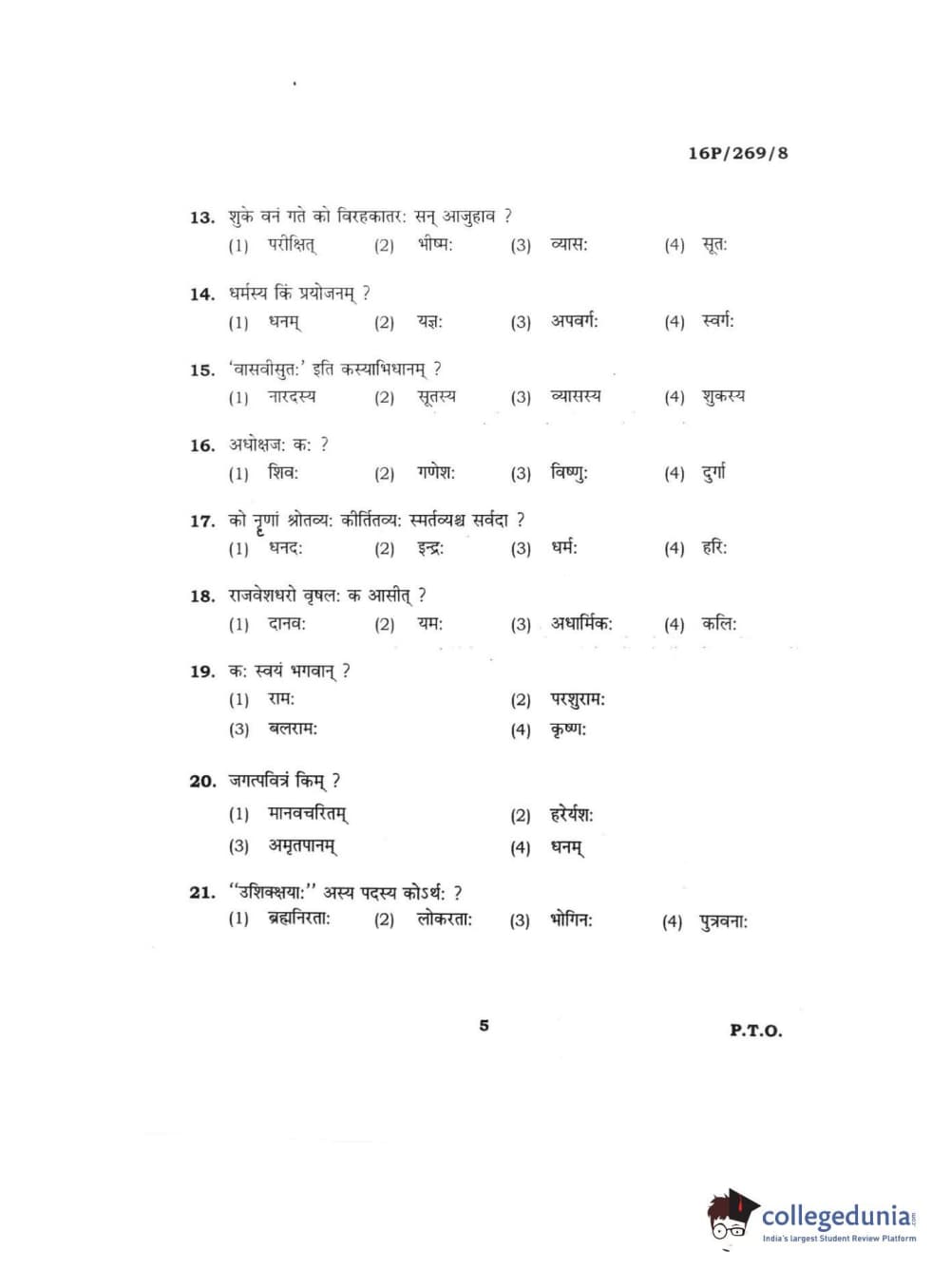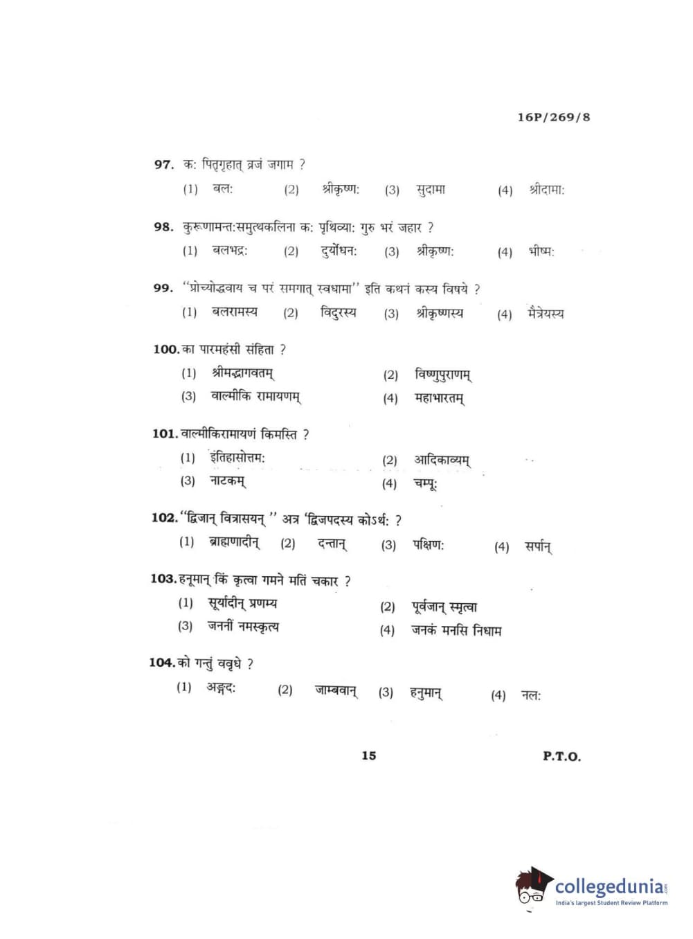 BHU PET 2016 ACHARYA IN PURANETIHAS Question Paper with Answer Key PDFs
