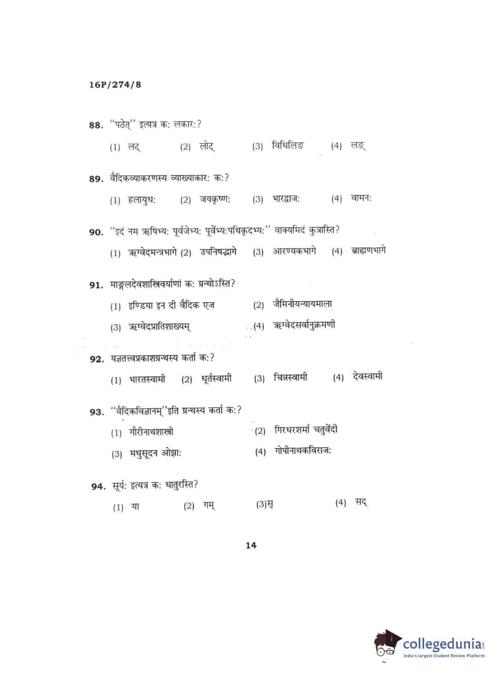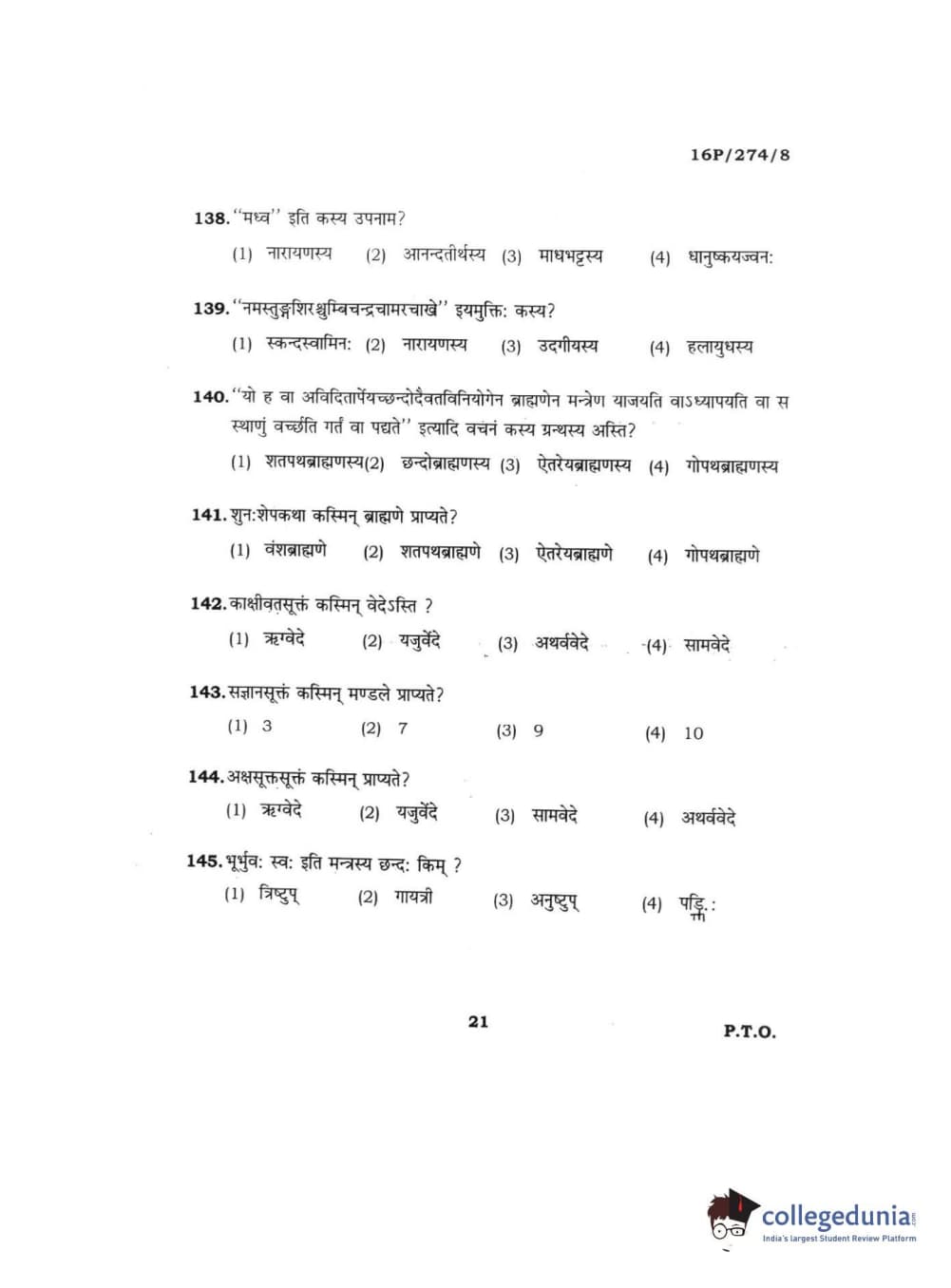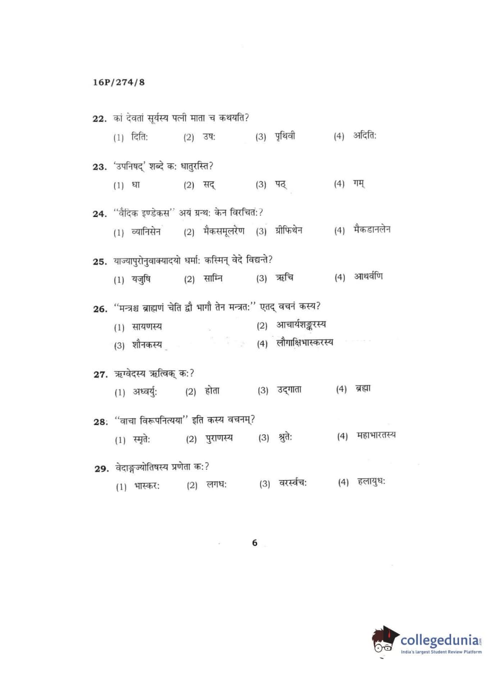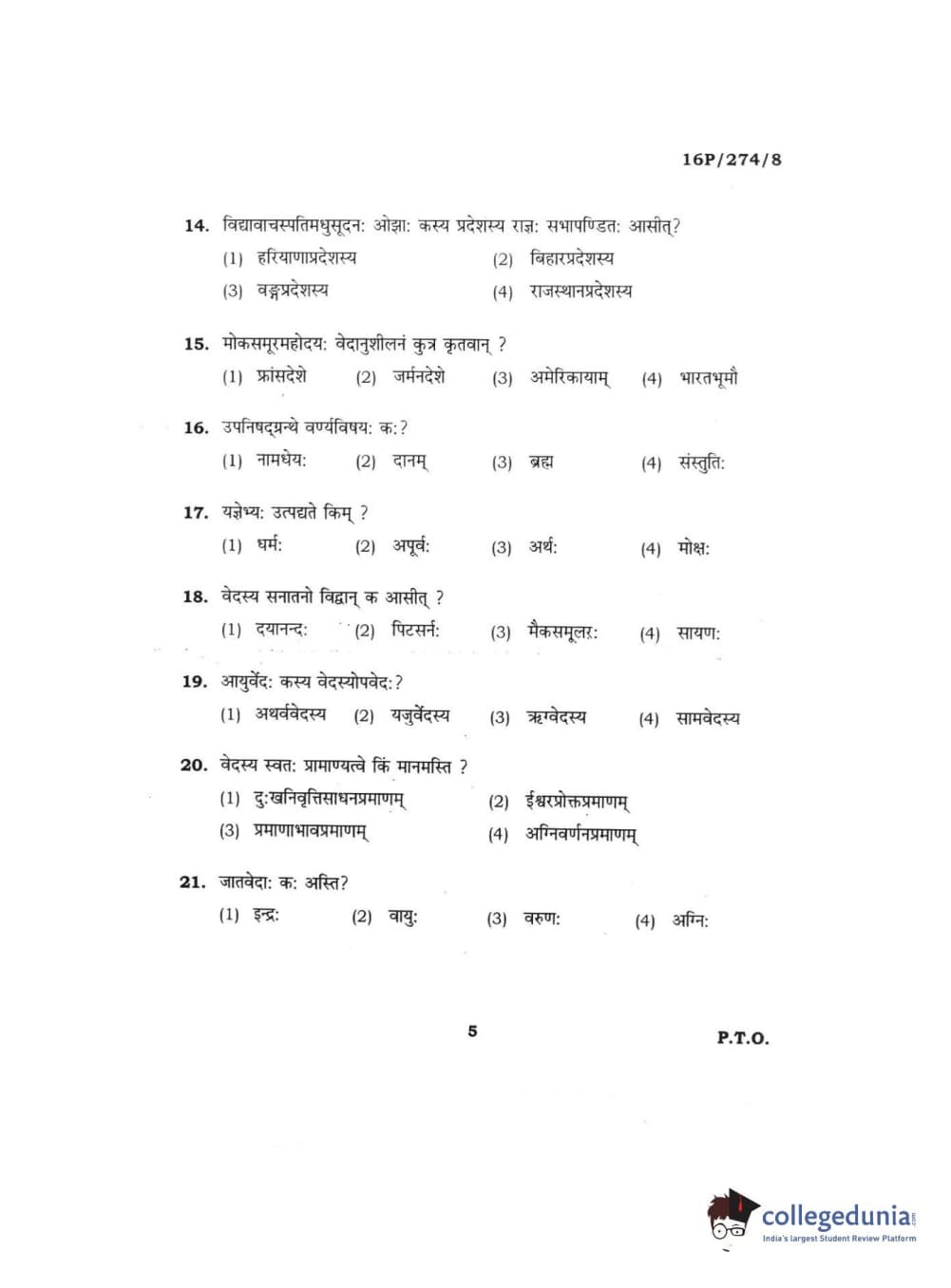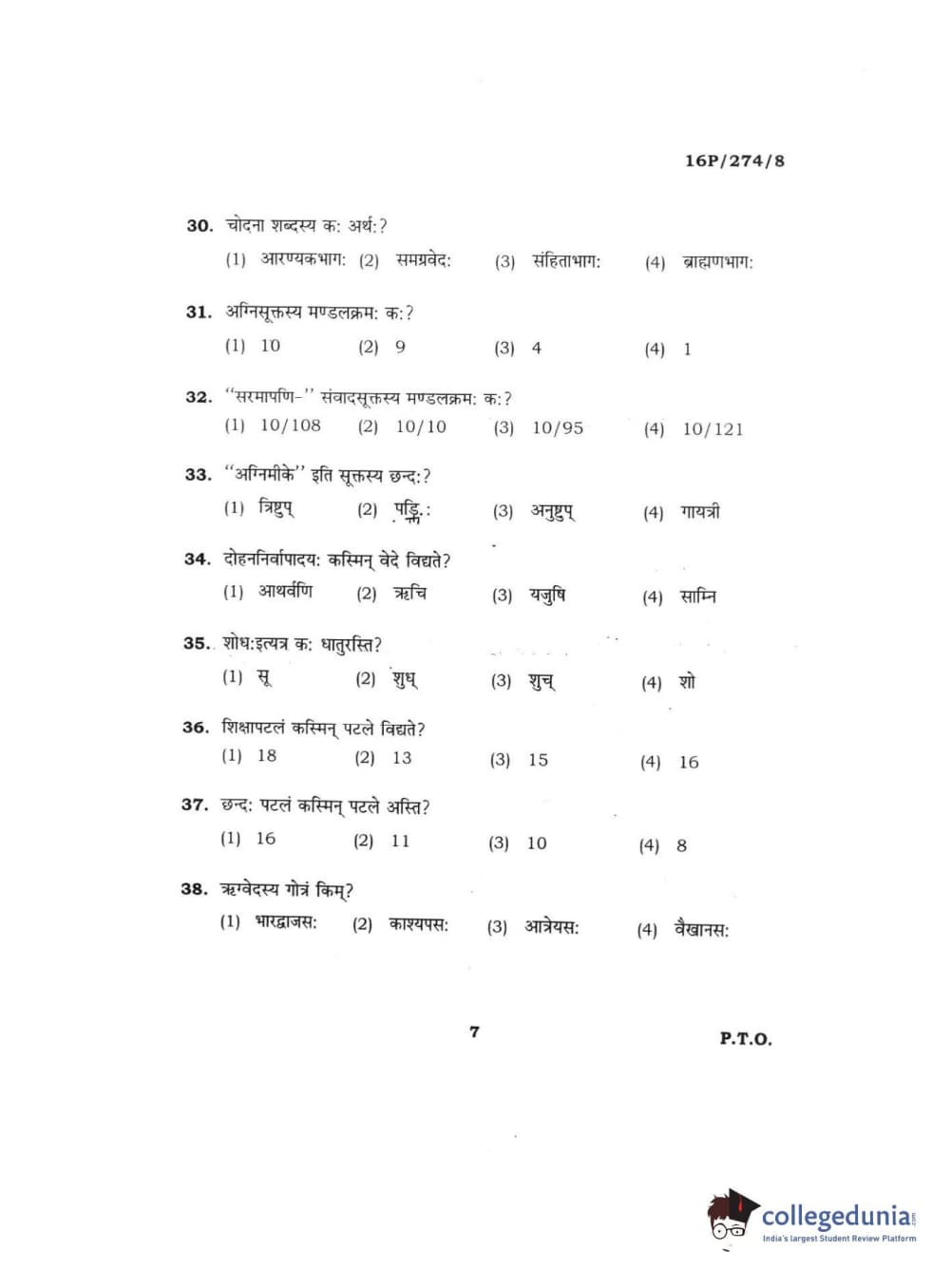 BHU PET 2016 ACHARYA IN RIGVEDA Question Paper with Answer Key PDFs