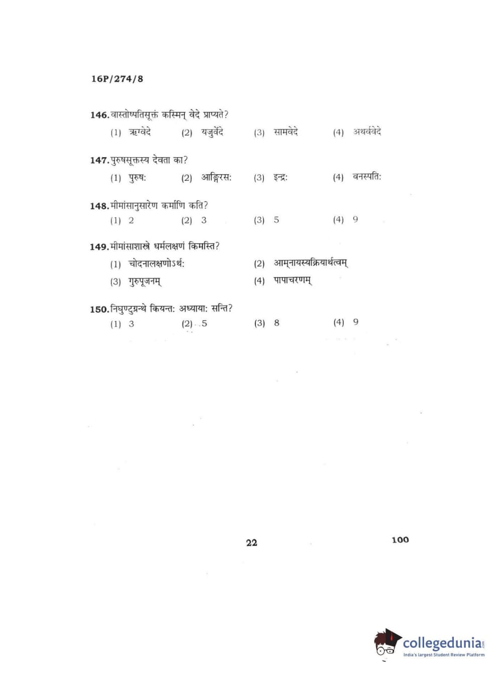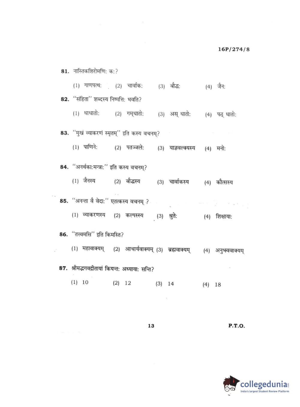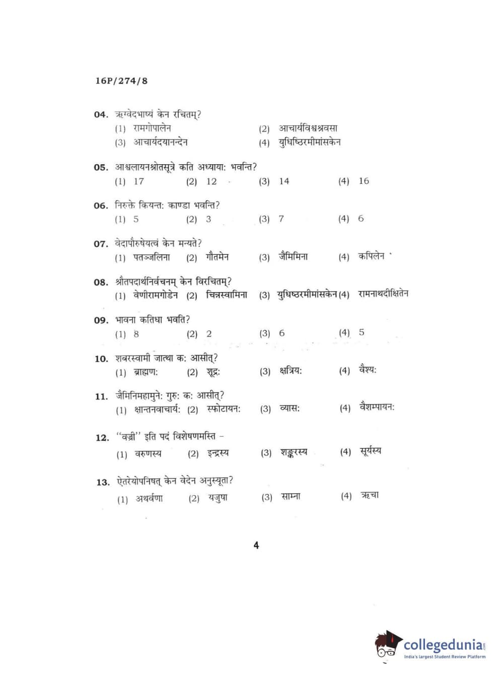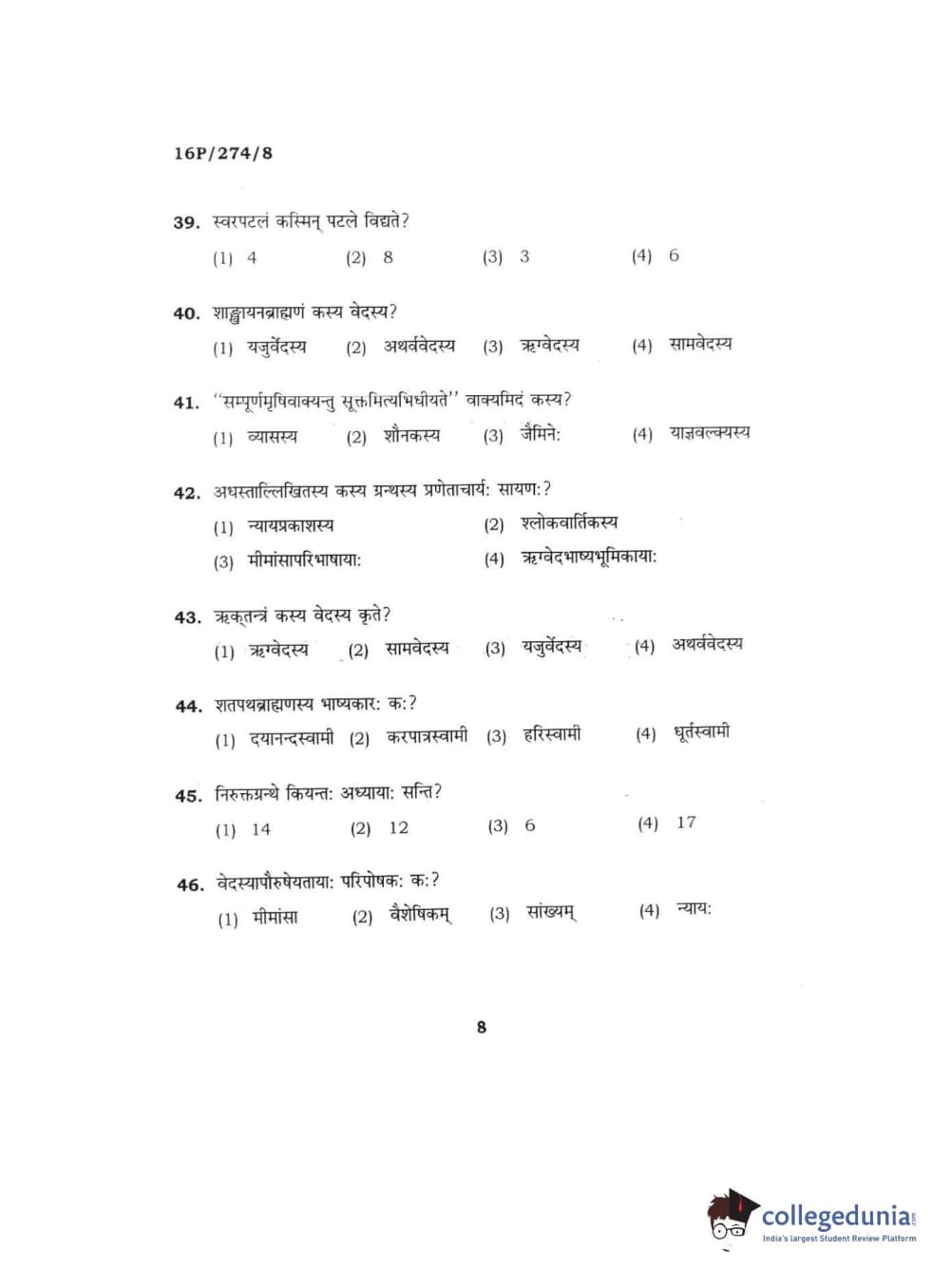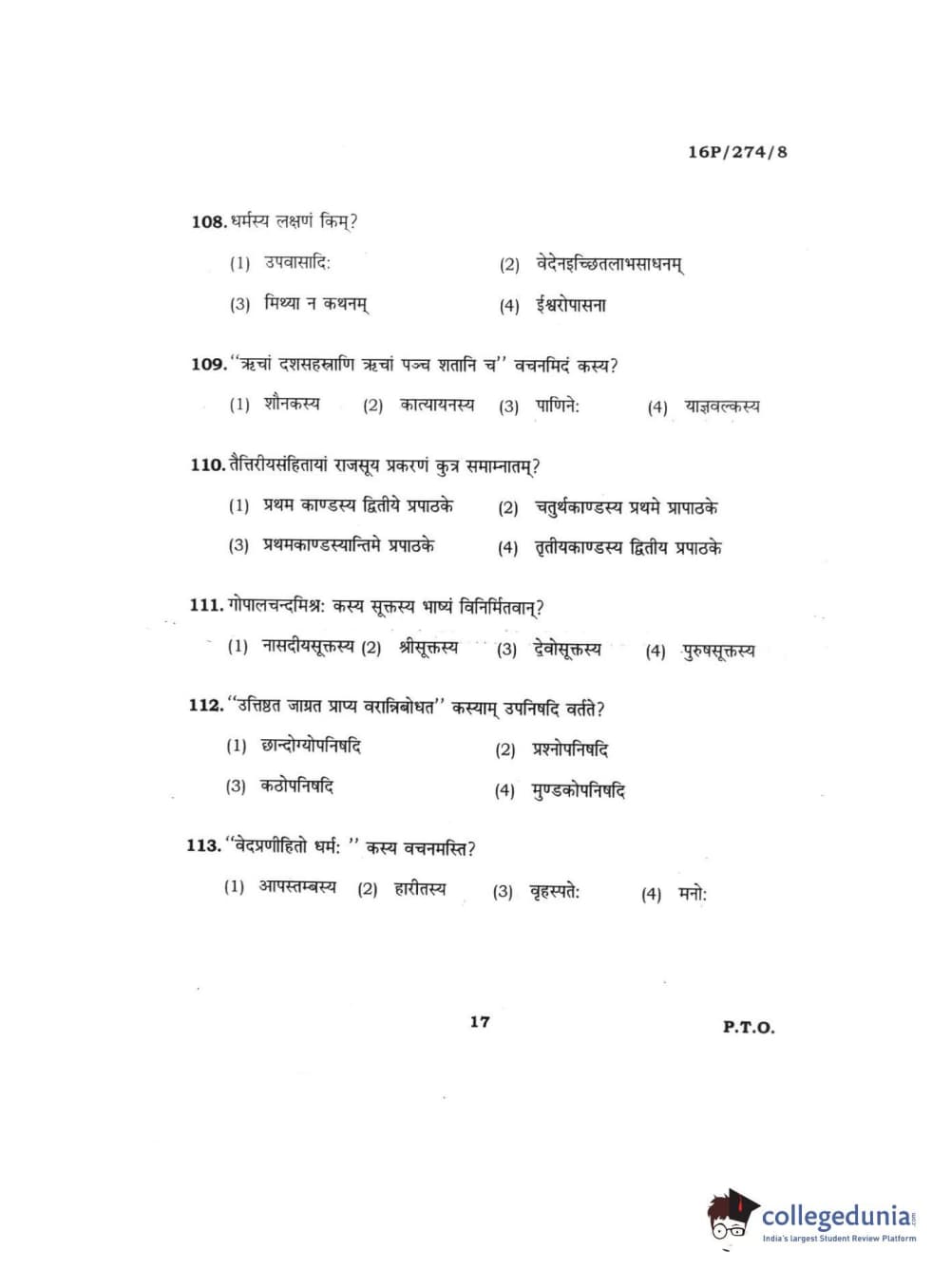 BHU PET 2016 ACHARYA IN RIGVEDA Question Paper with Answer Key PDFs