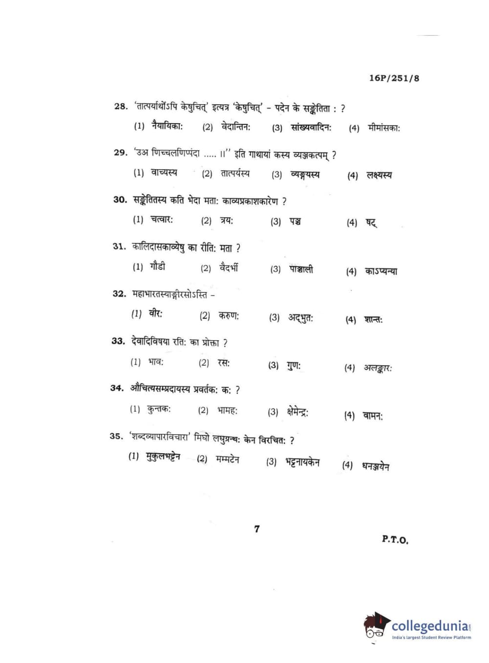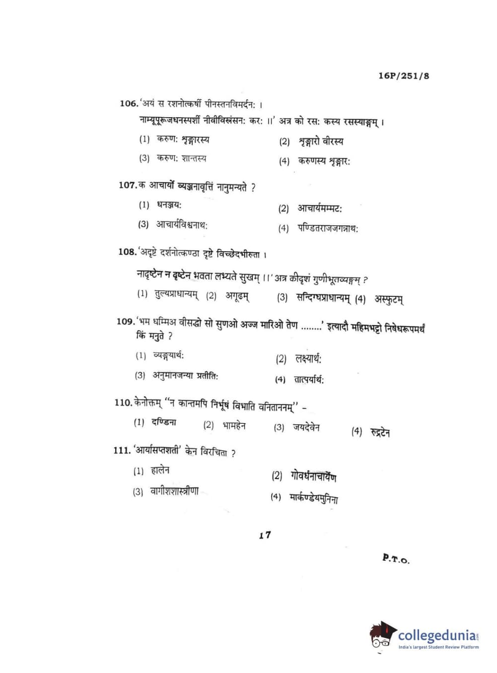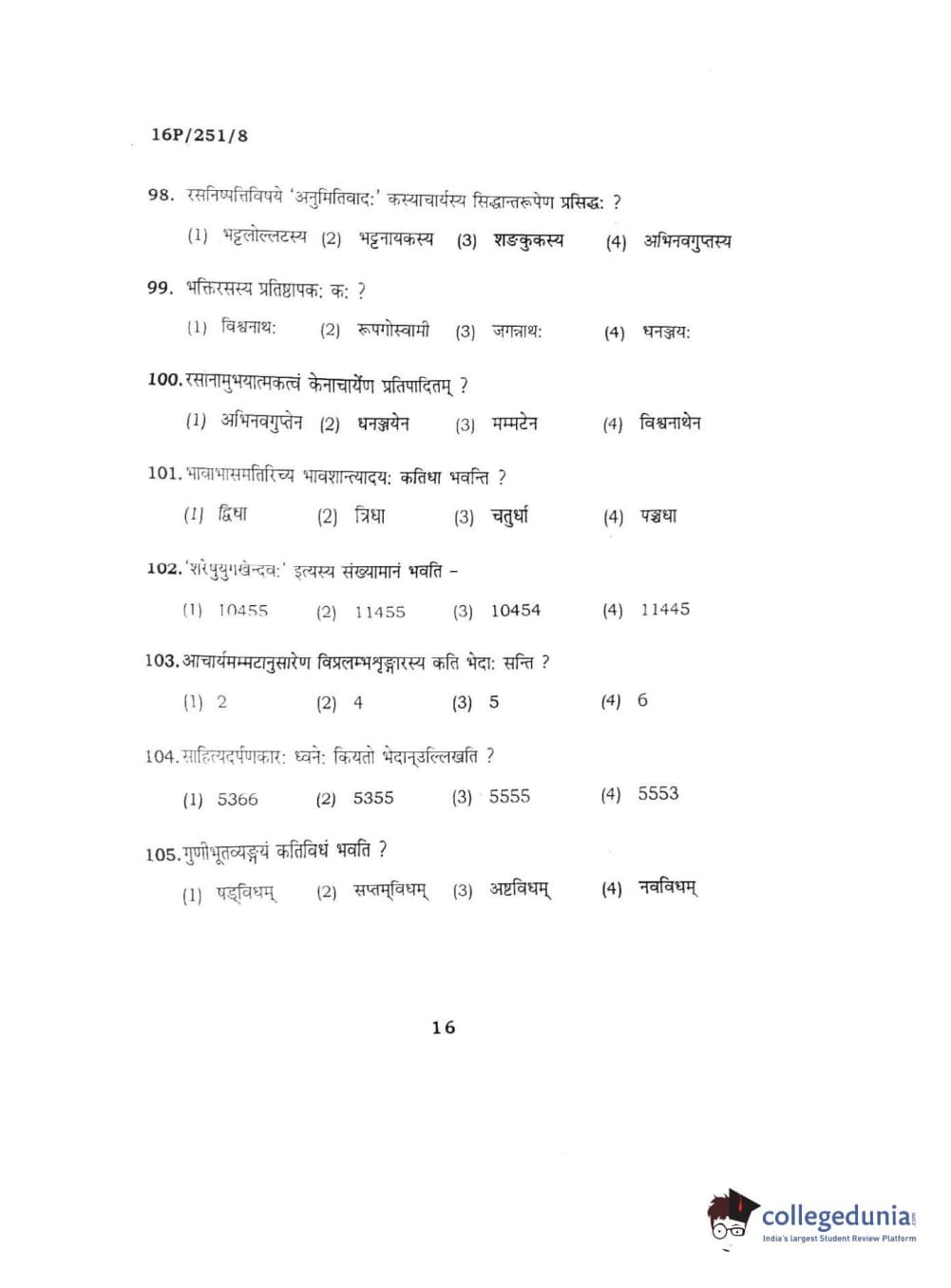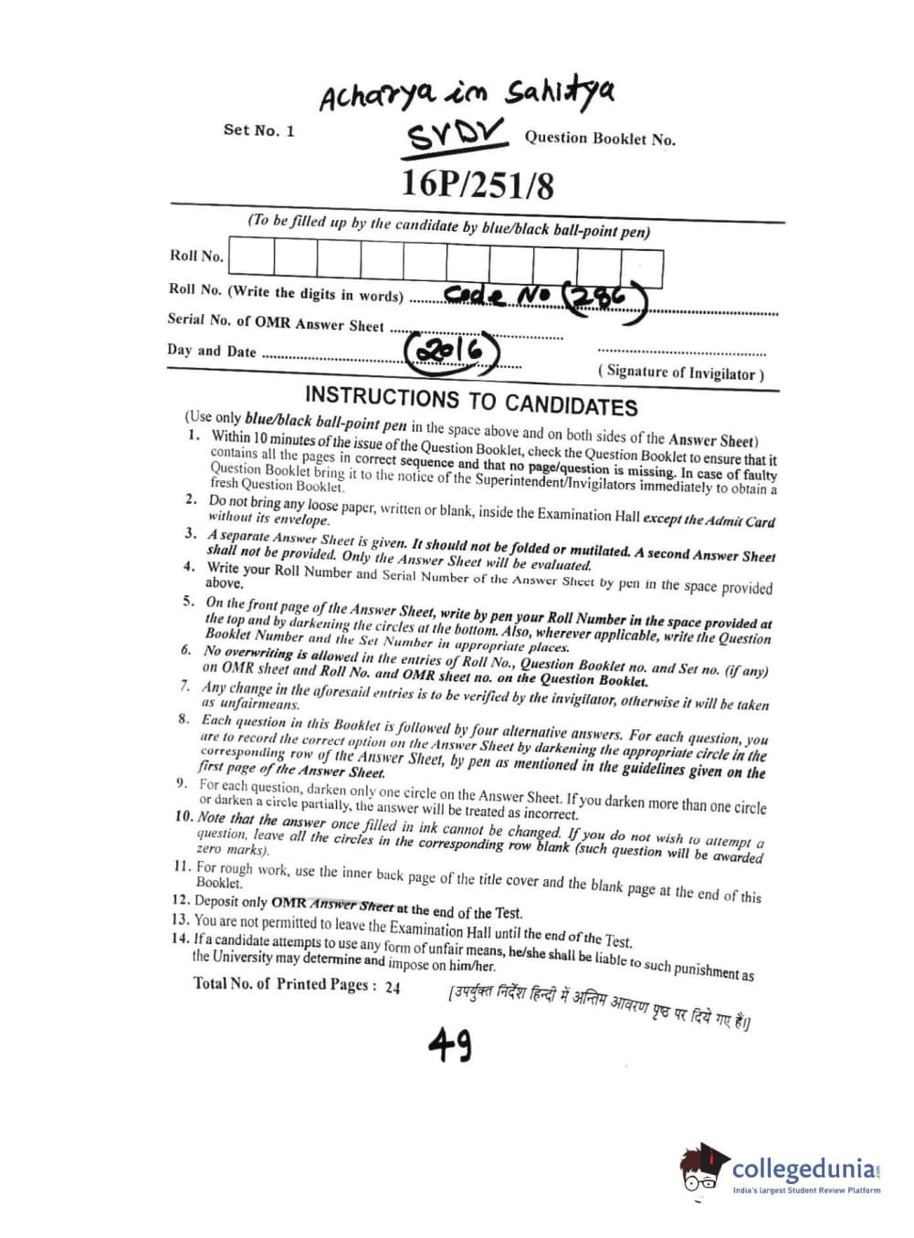 BHU PET 2016 ACHARYA IN SAHITYA Question Paper with Answer Key PDFs