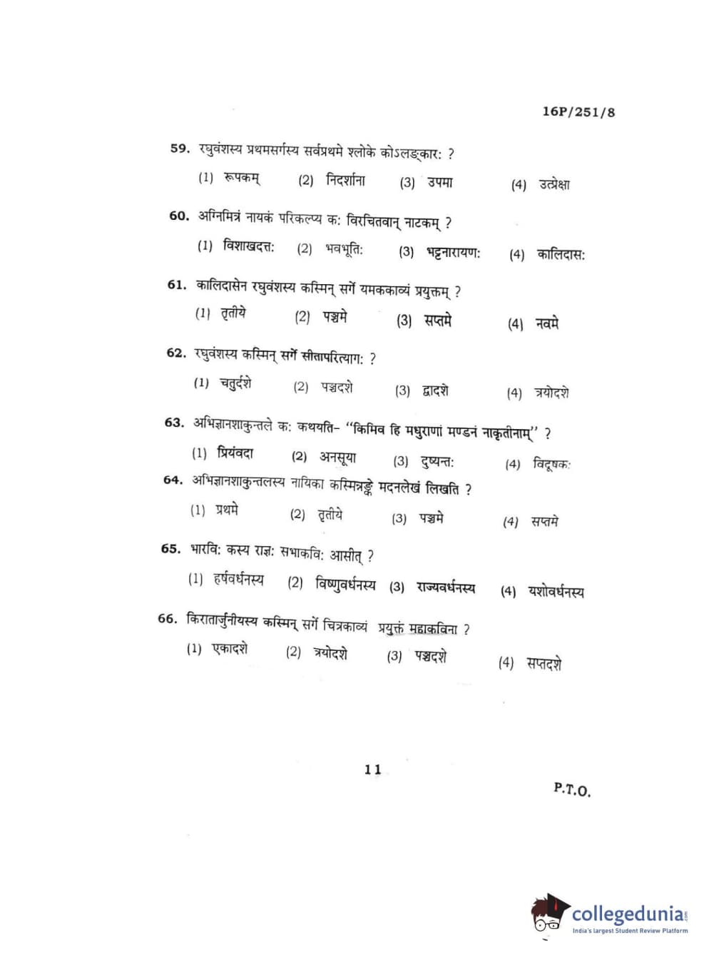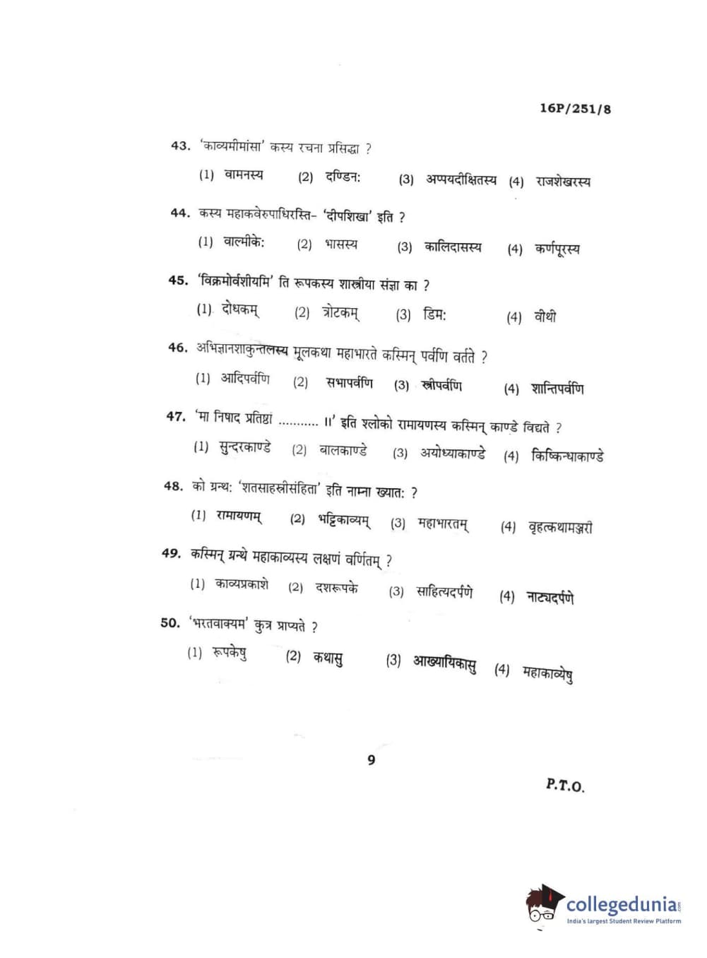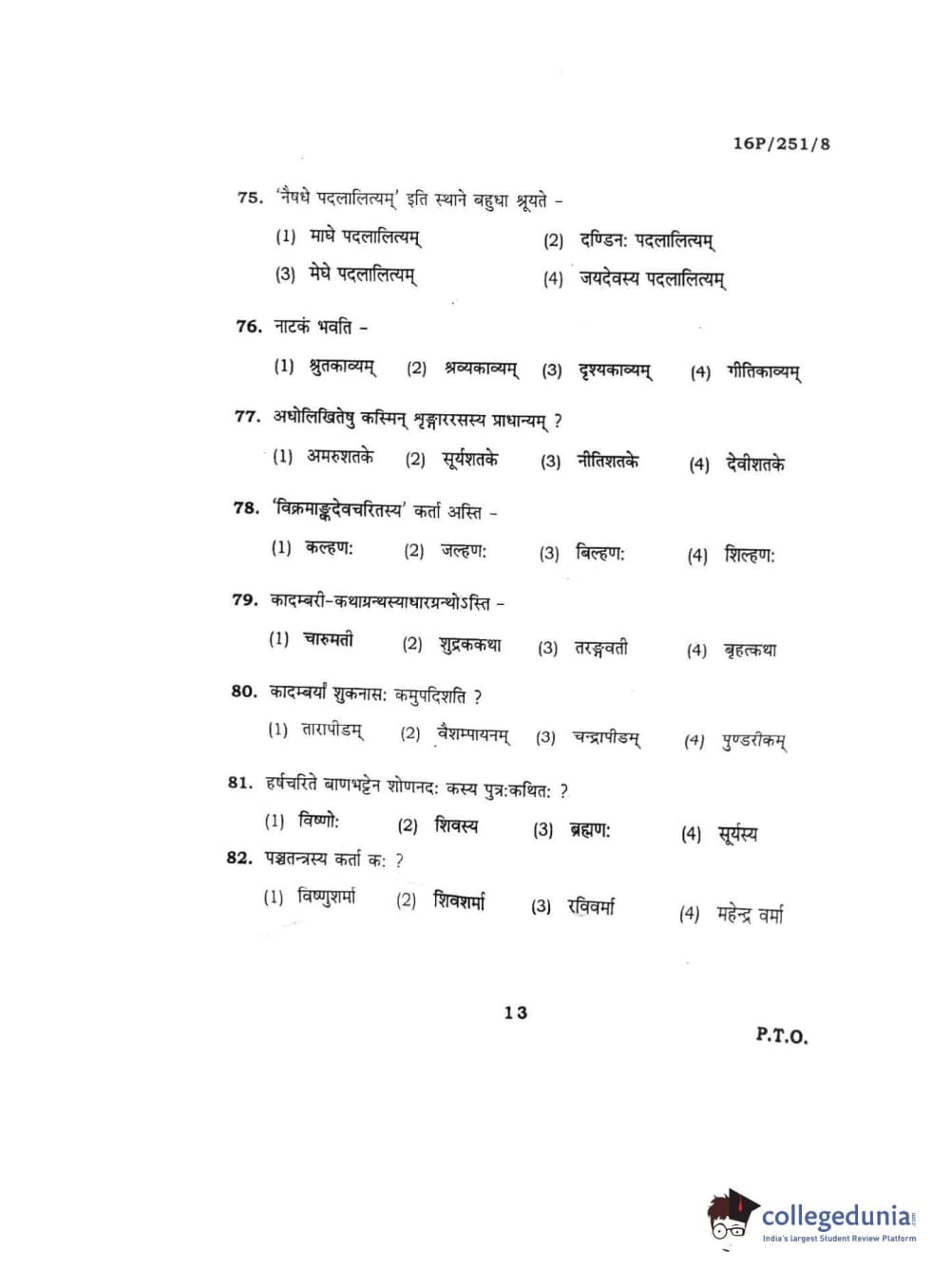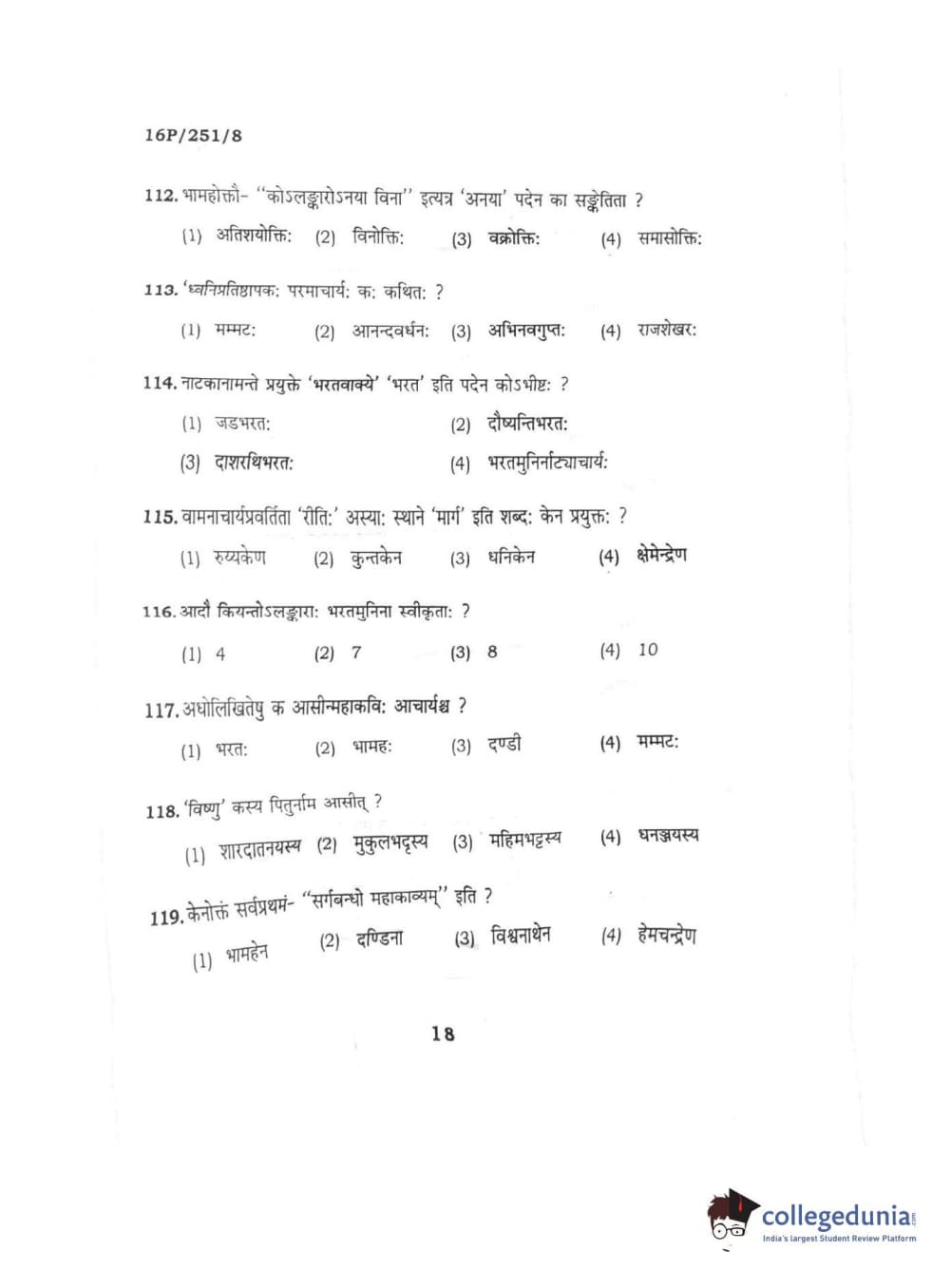 BHU PET 2016 ACHARYA IN SAHITYA Question Paper with Answer Key PDFs