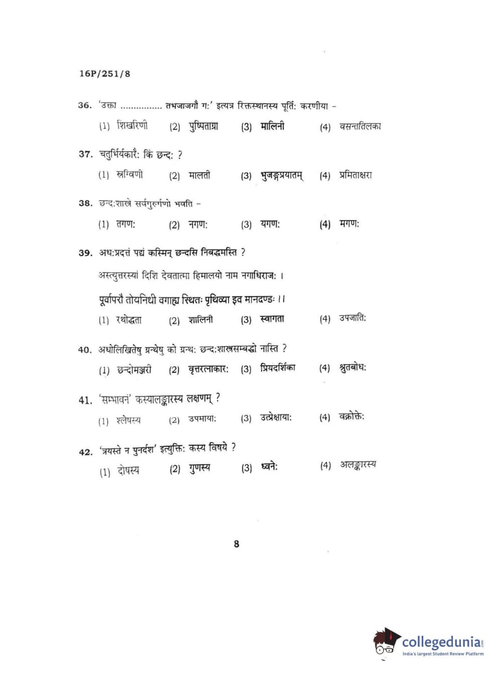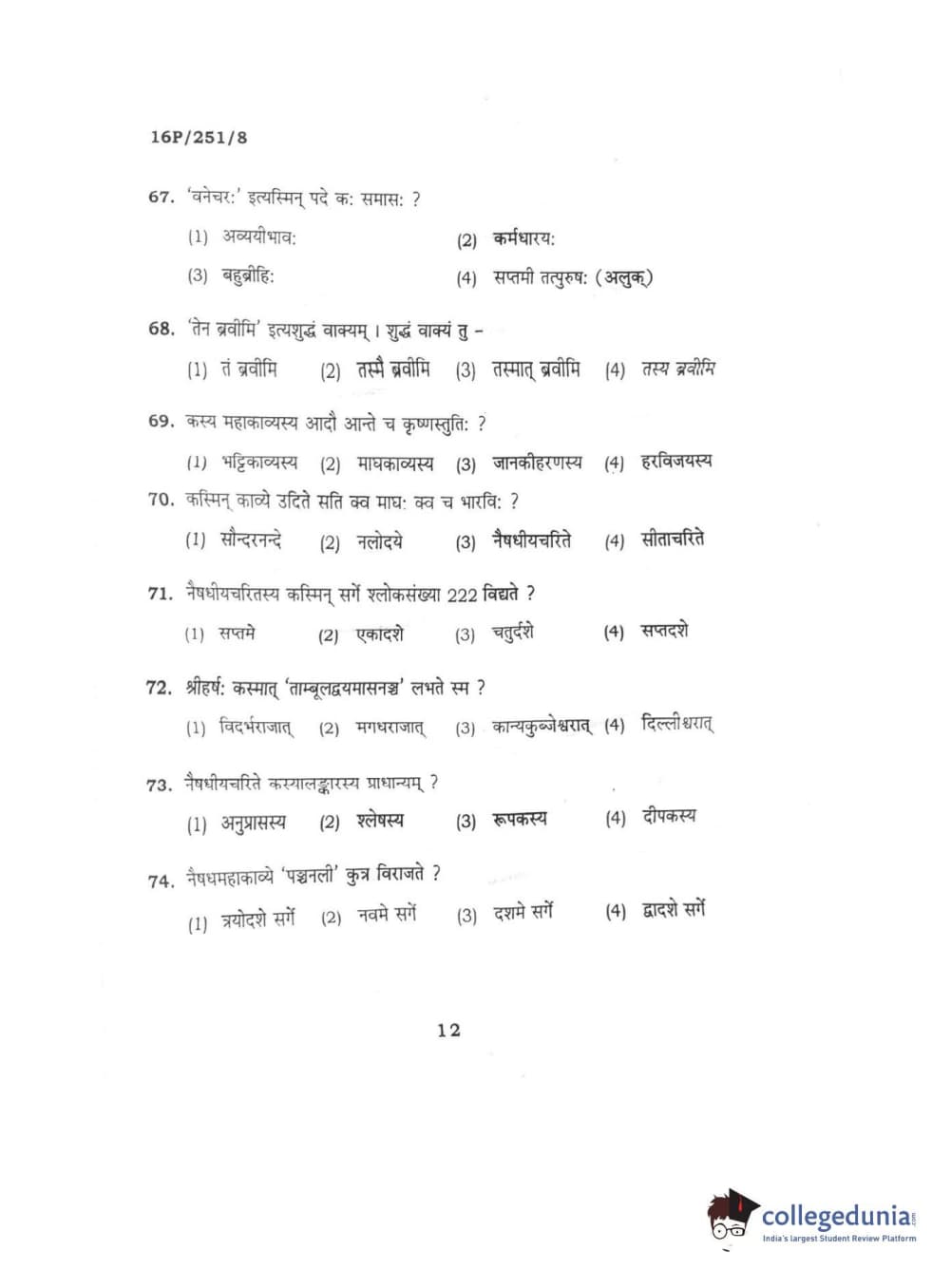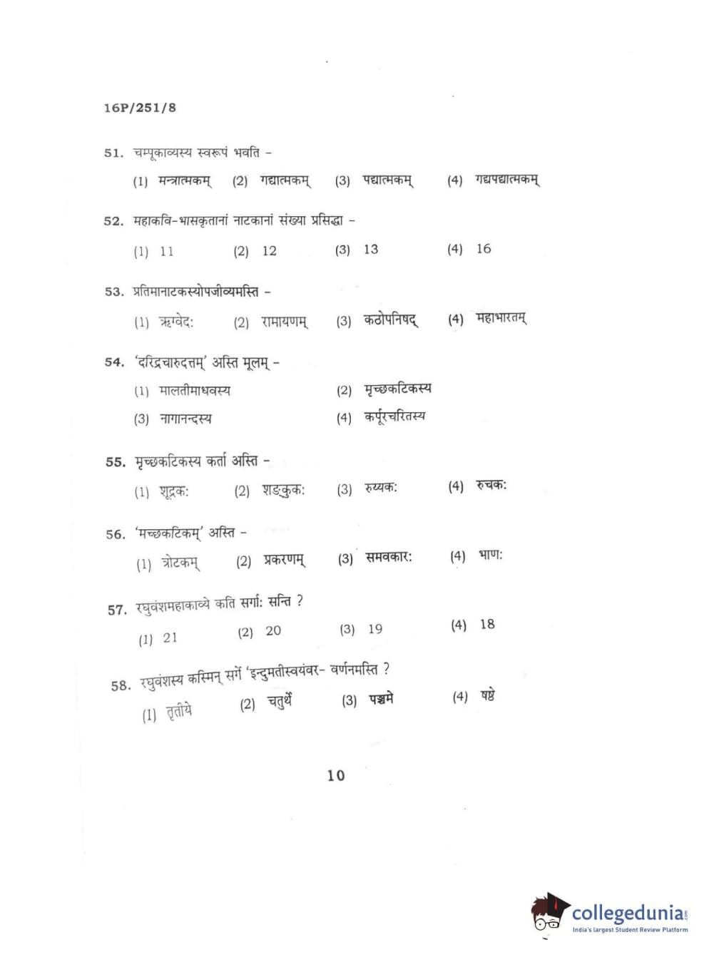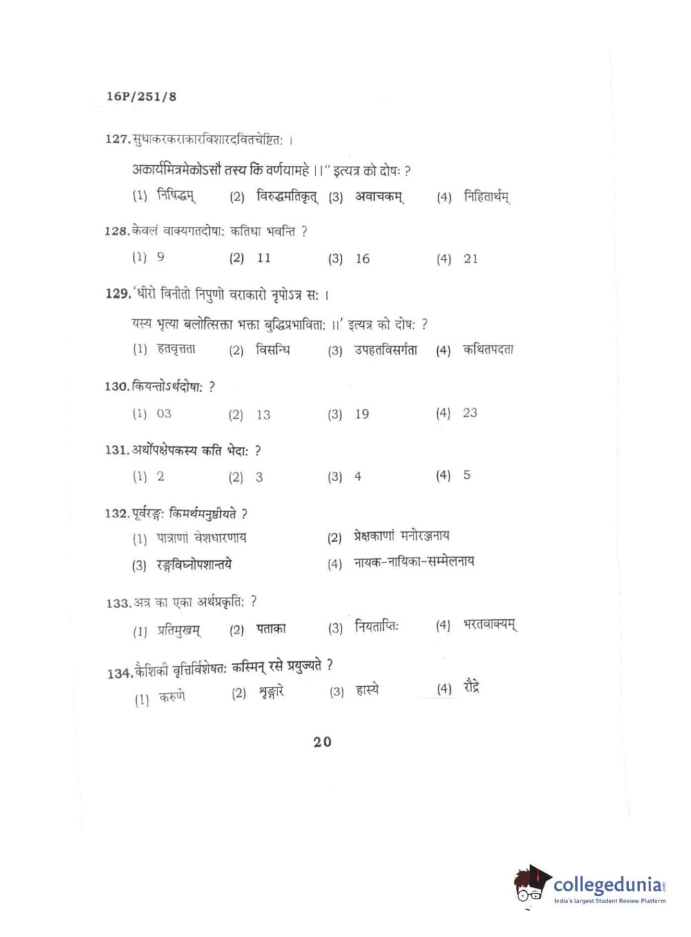 BHU PET 2016 ACHARYA IN SAHITYA Question Paper with Answer Key PDFs