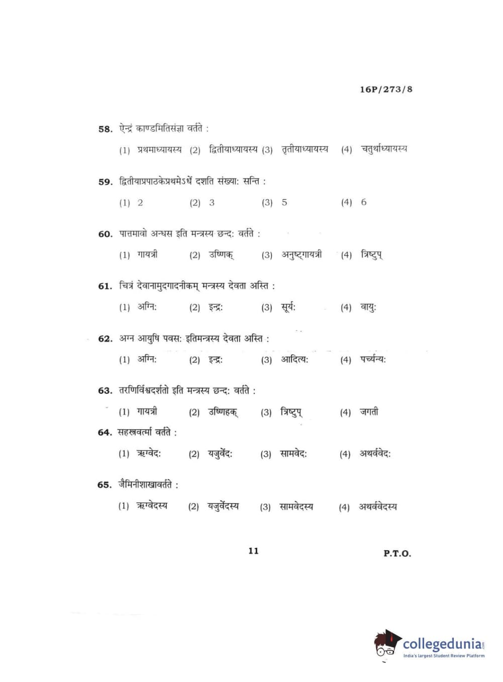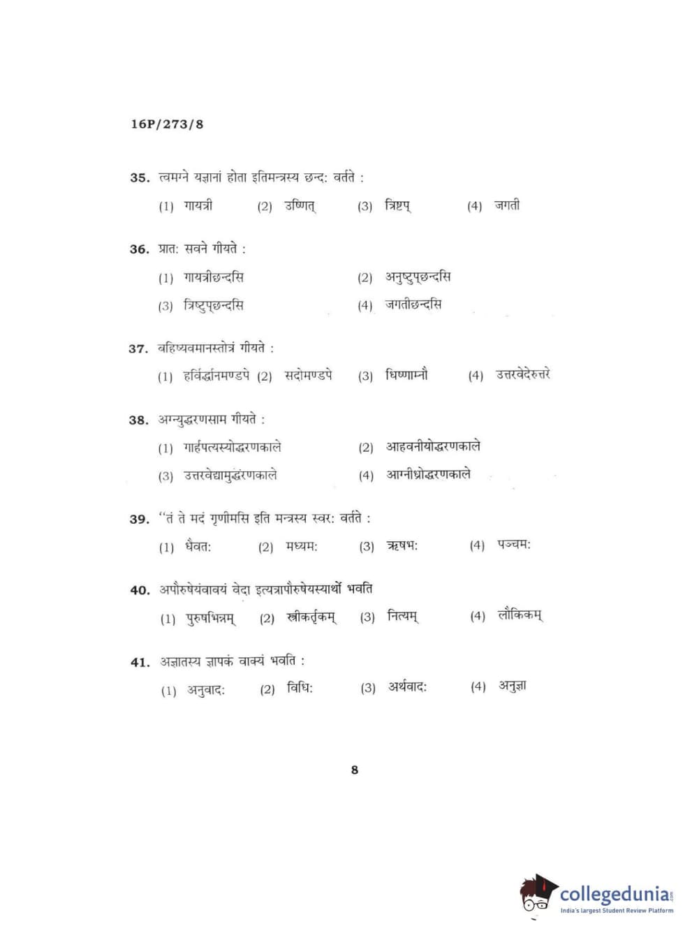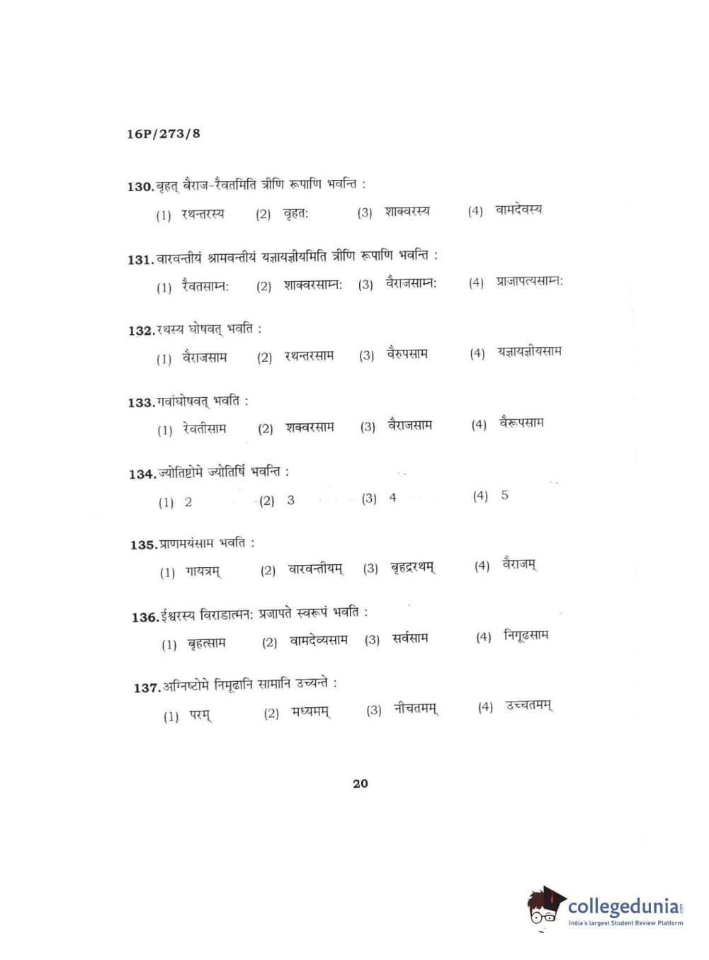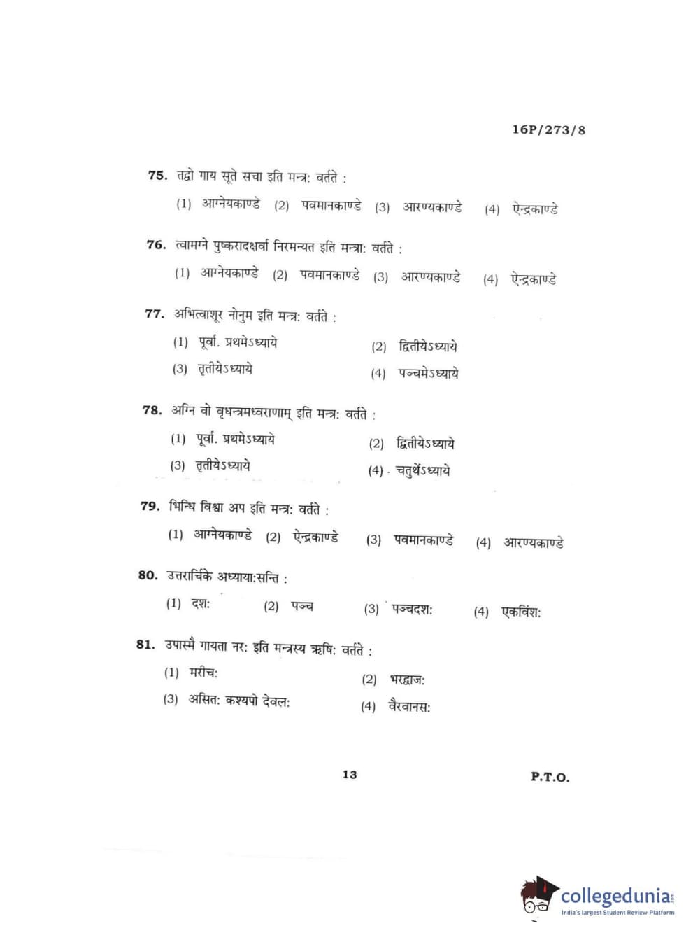 BHU PET 2016 ACHARYA IN SAMVEDA Question Paper with Answer Key PDFs