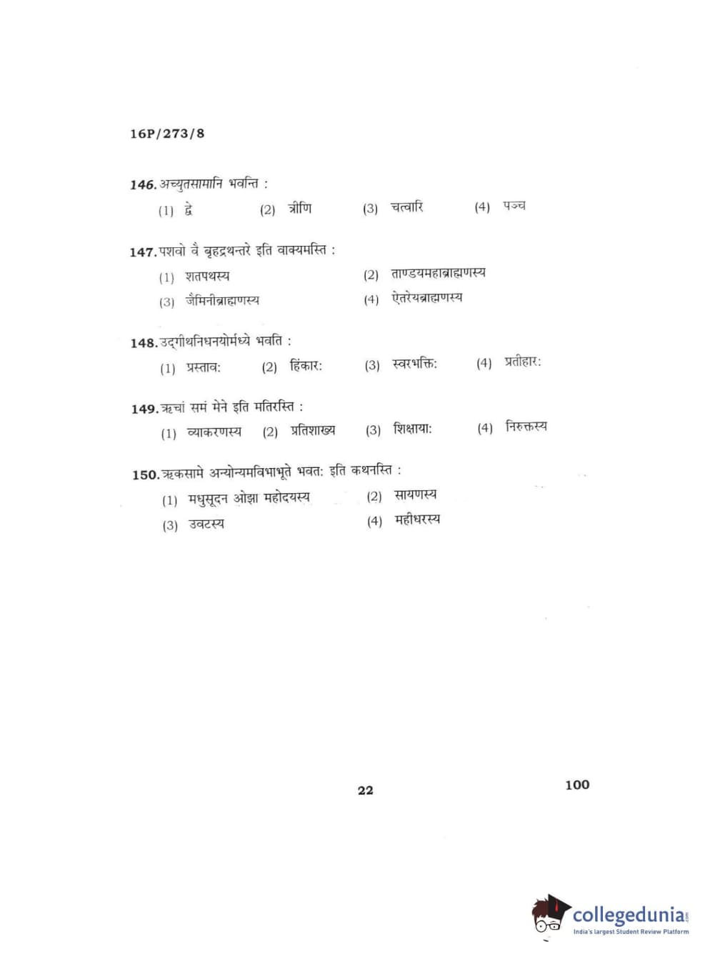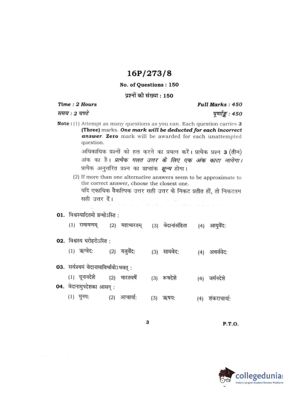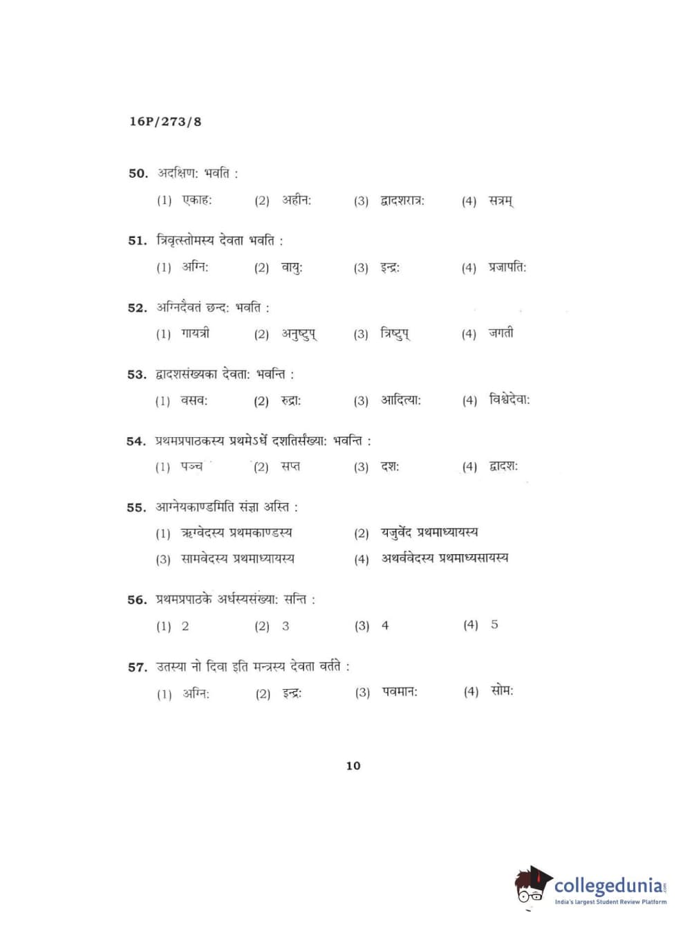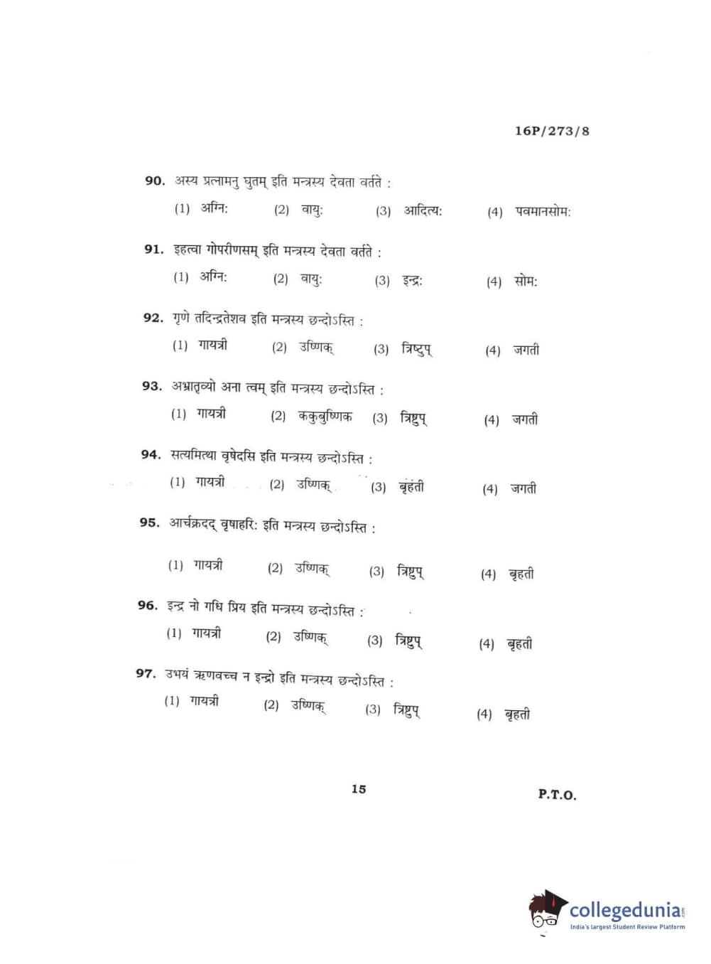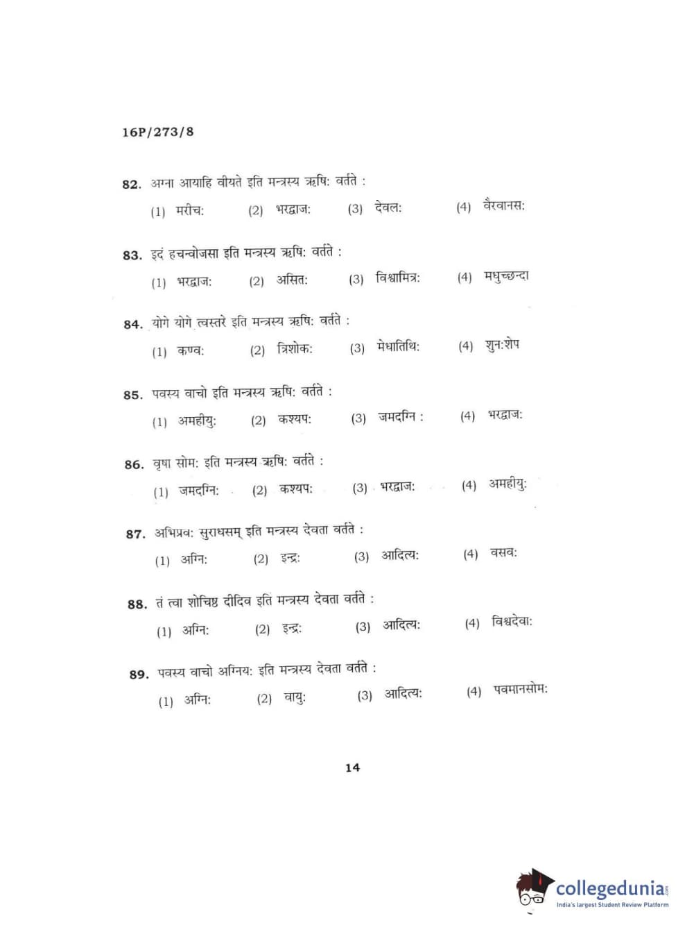 BHU PET 2016 ACHARYA IN SAMVEDA Question Paper with Answer Key PDFs
