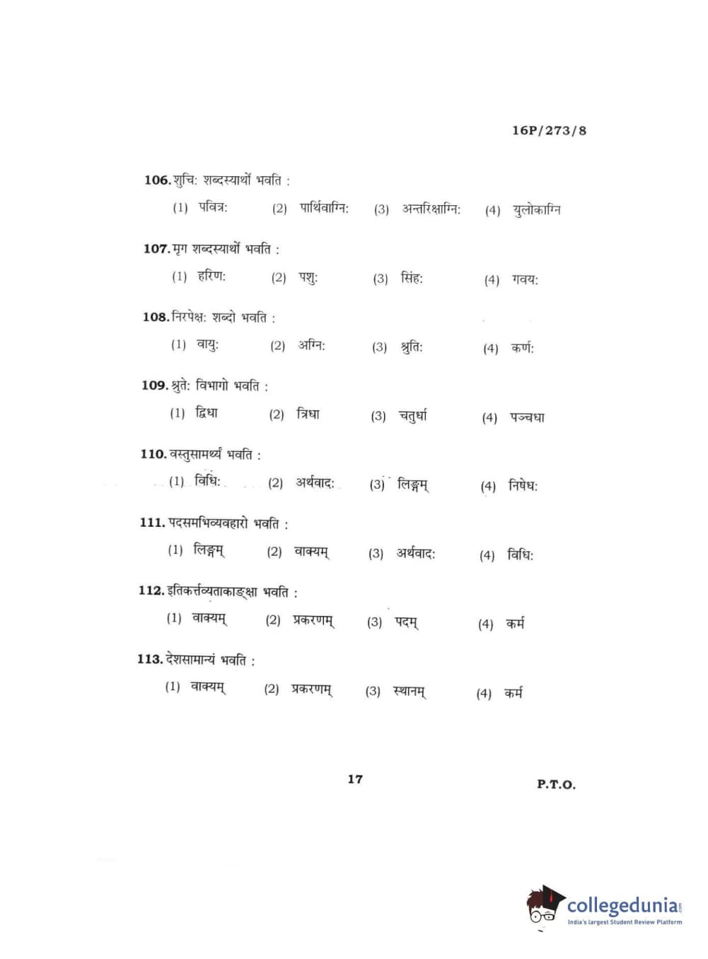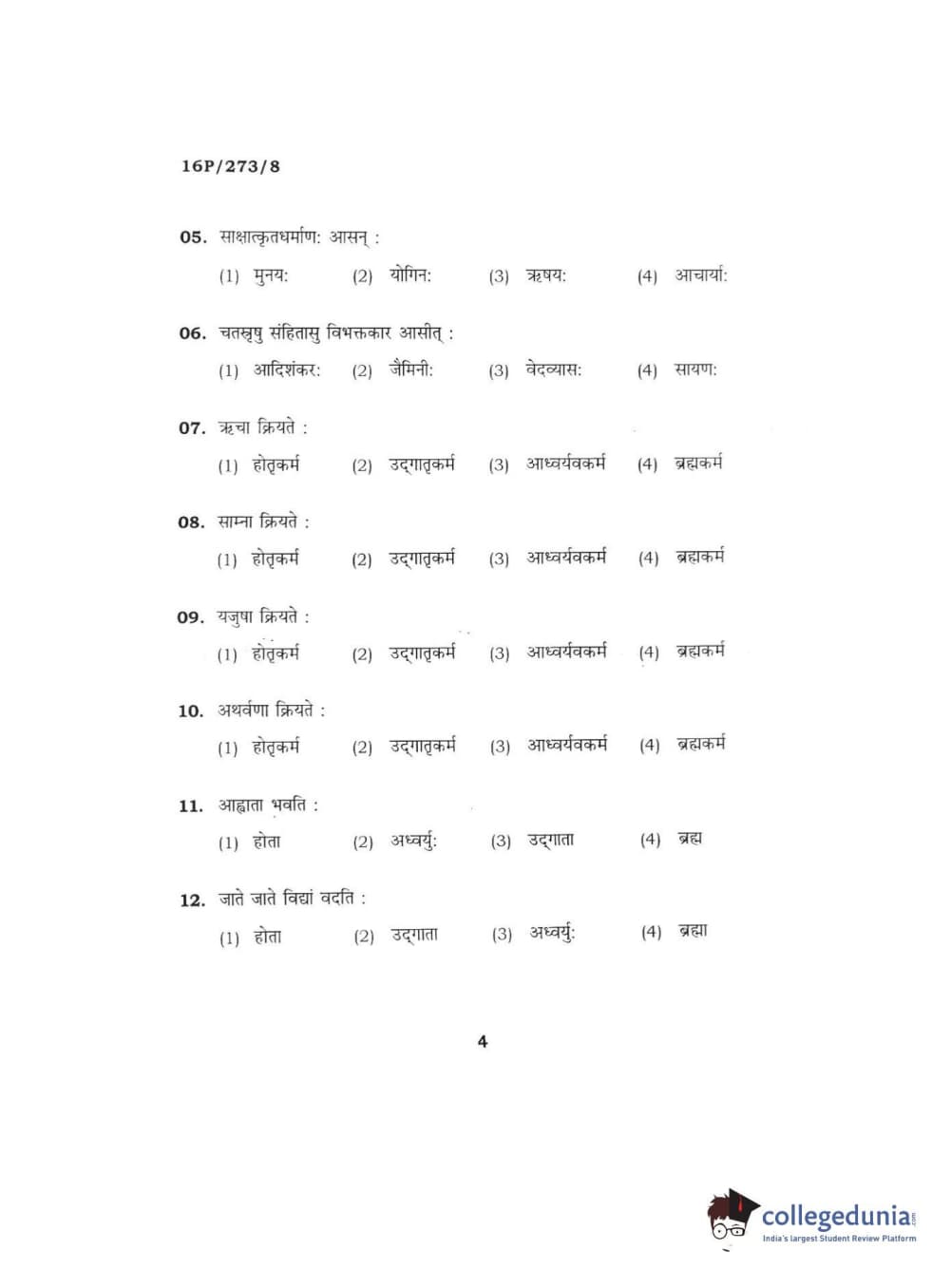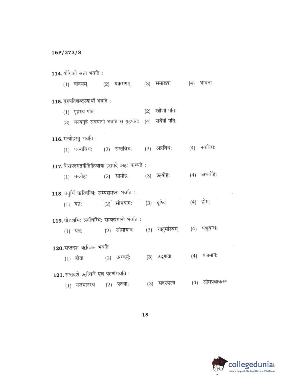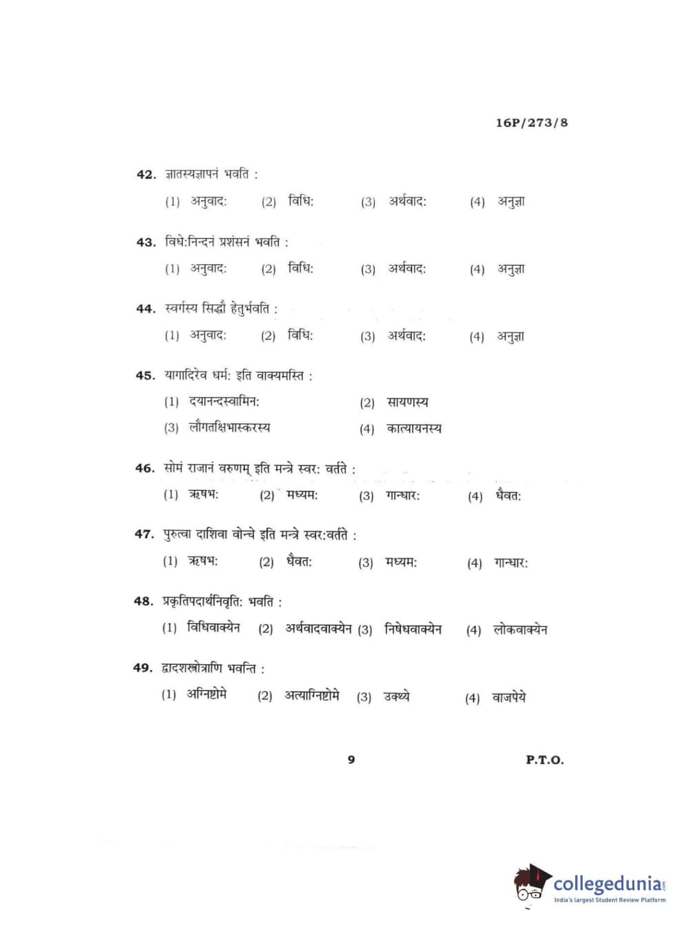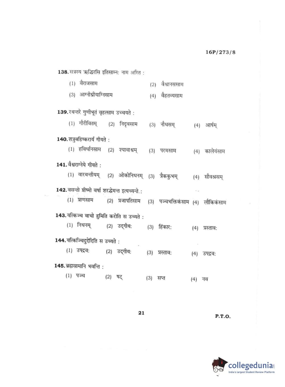 BHU PET 2016 ACHARYA IN SAMVEDA Question Paper with Answer Key PDFs