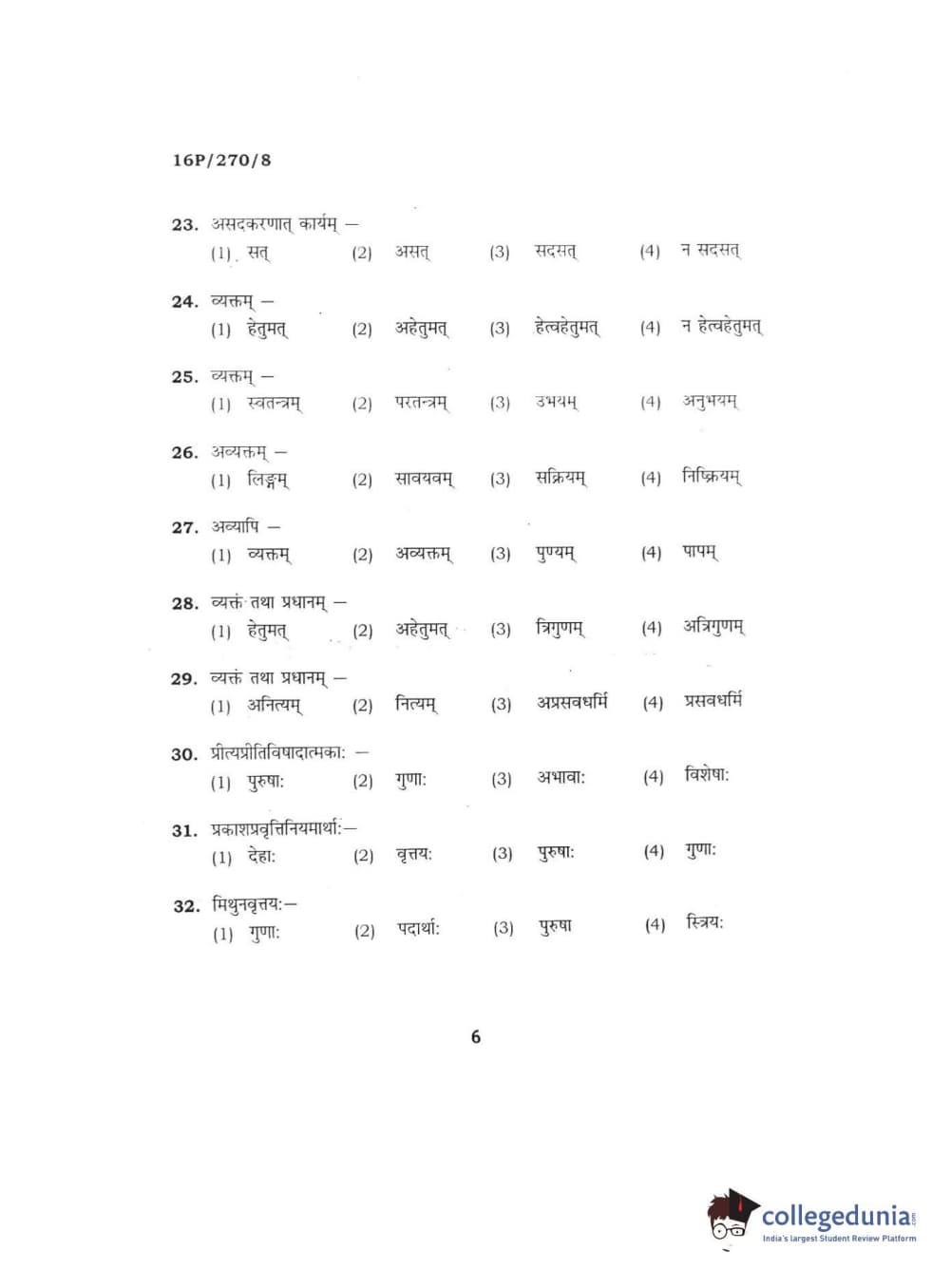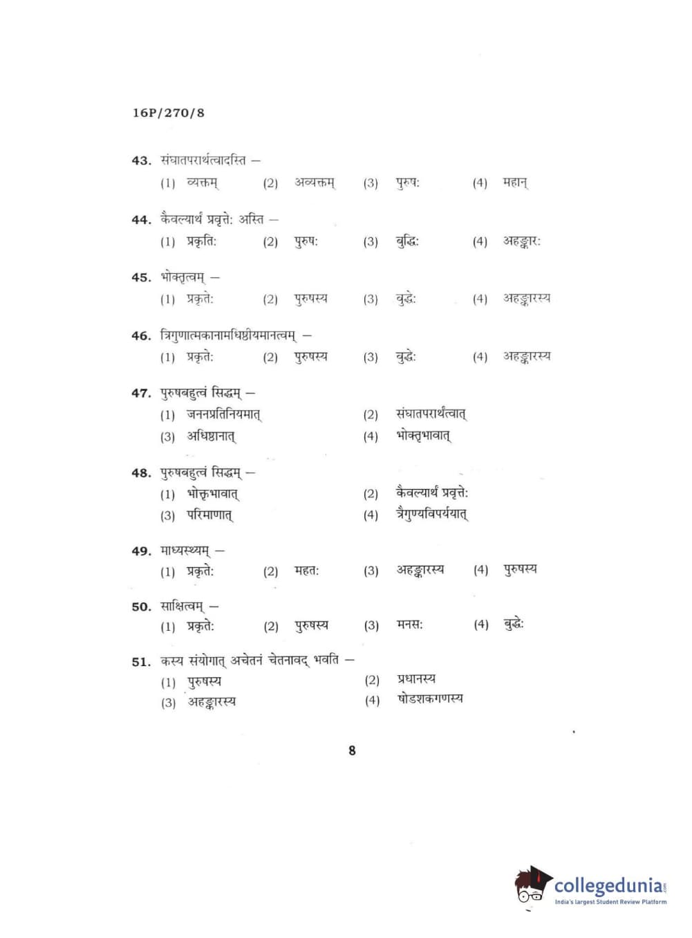 BHU PET 2016 ACHARYA IN SANKHYA Question Paper with Answer Key PDFs