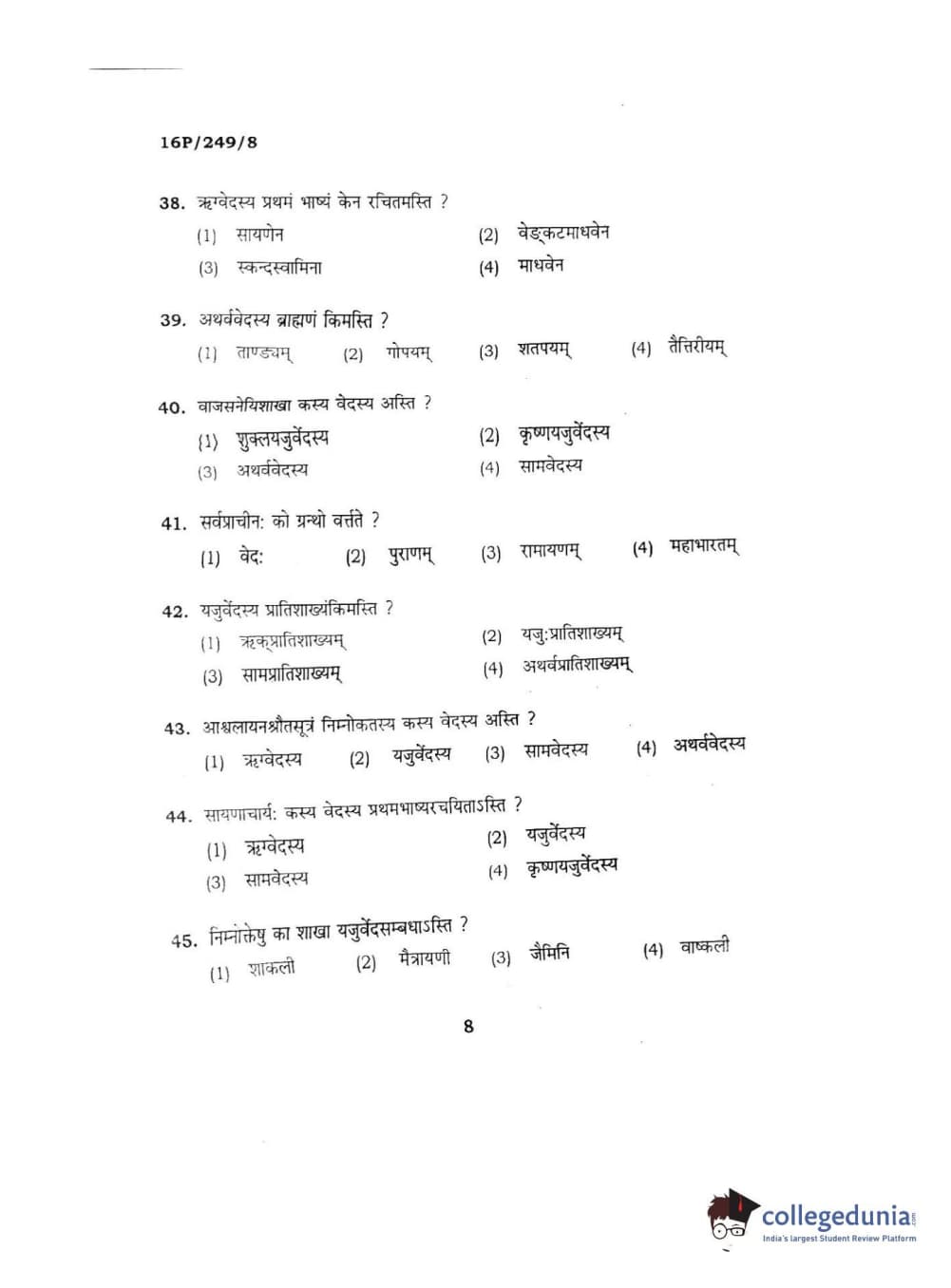 BHU PET 2016 ACHARYA IN SHUKLAYA Question Paper with Answer Key PDFs