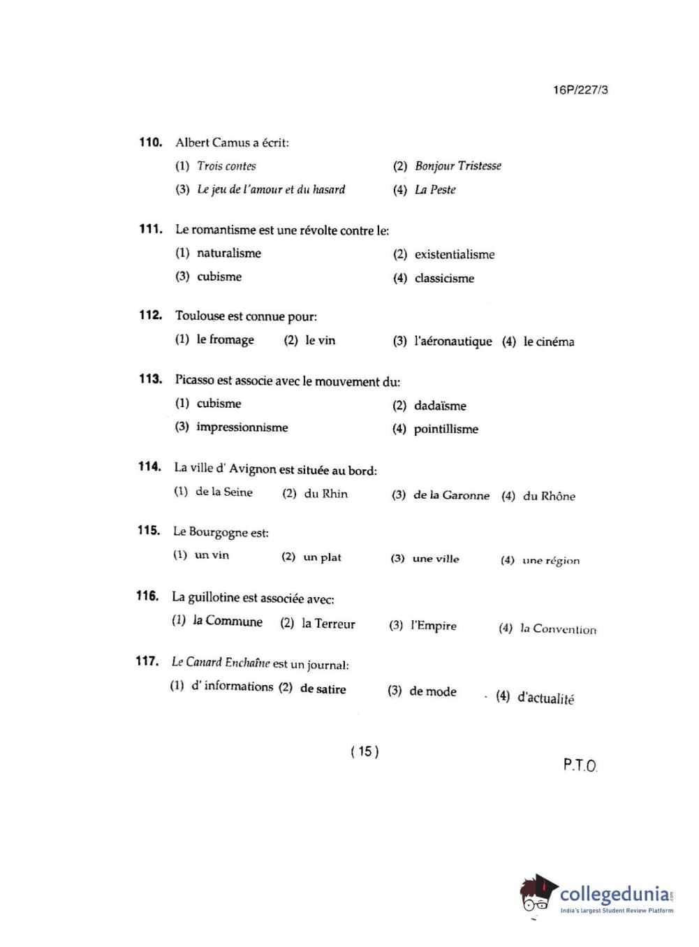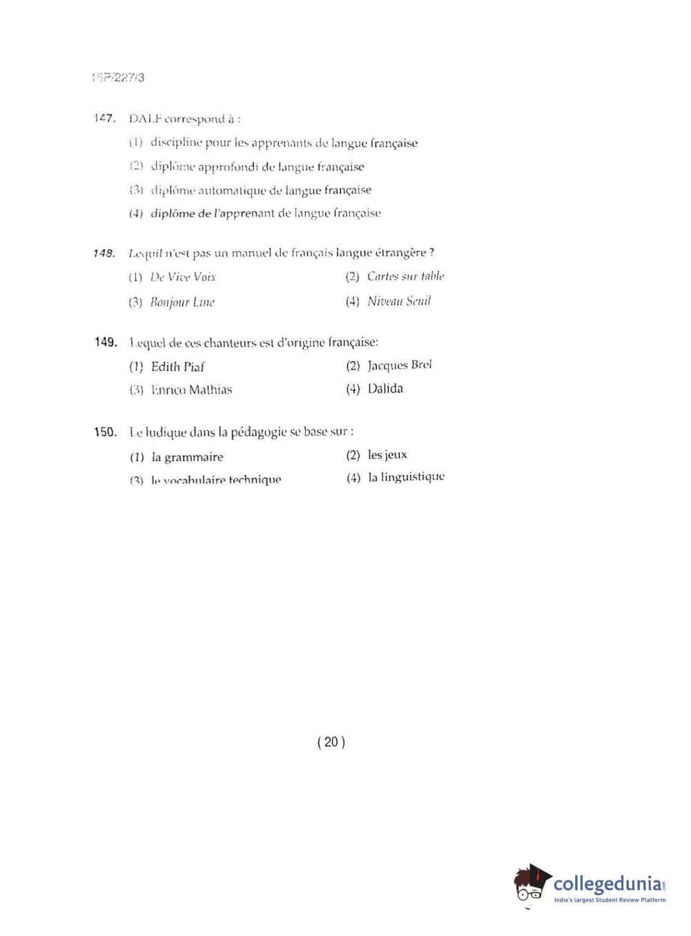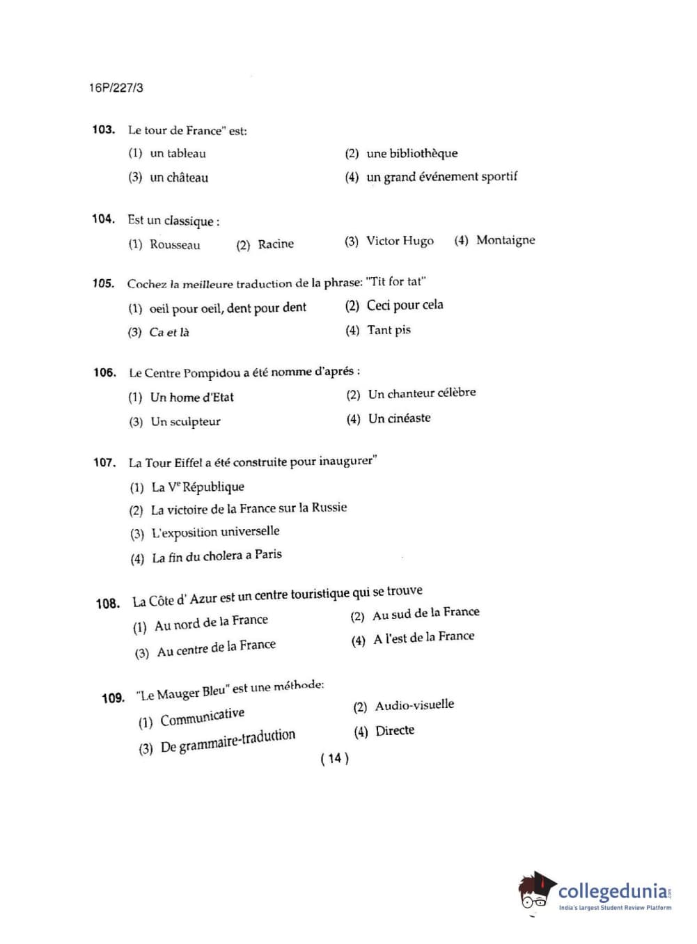 BHU PET 2016 M.A. FRENCH Question paper with answer key pdf is available for download. The exam was successfully organized by Banaras Hindu University (BHU). The question paper comprised a total of 150 questions.