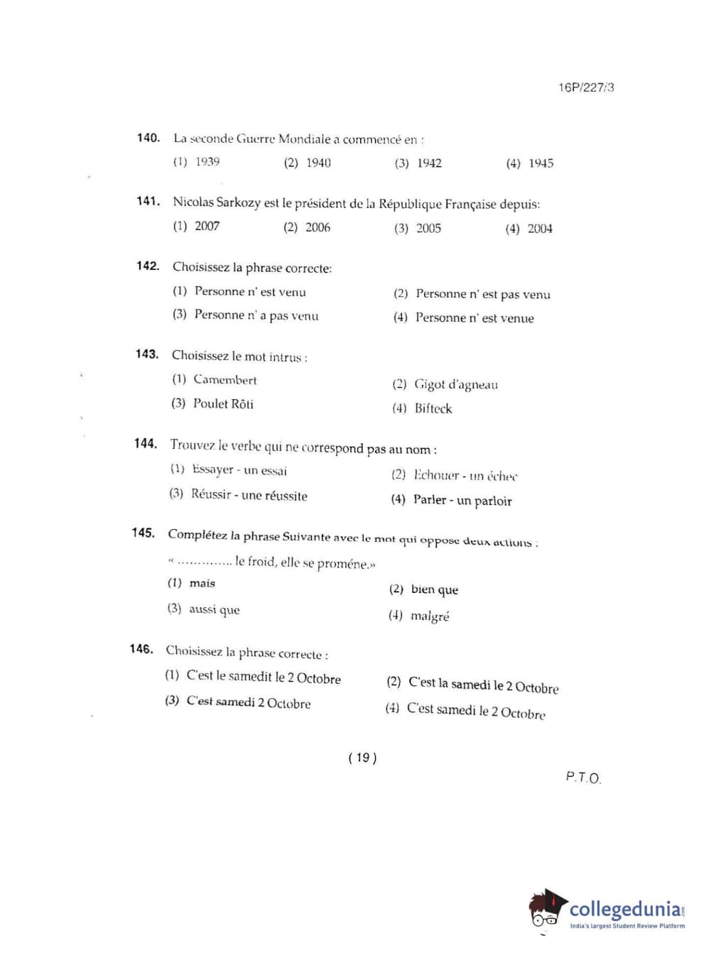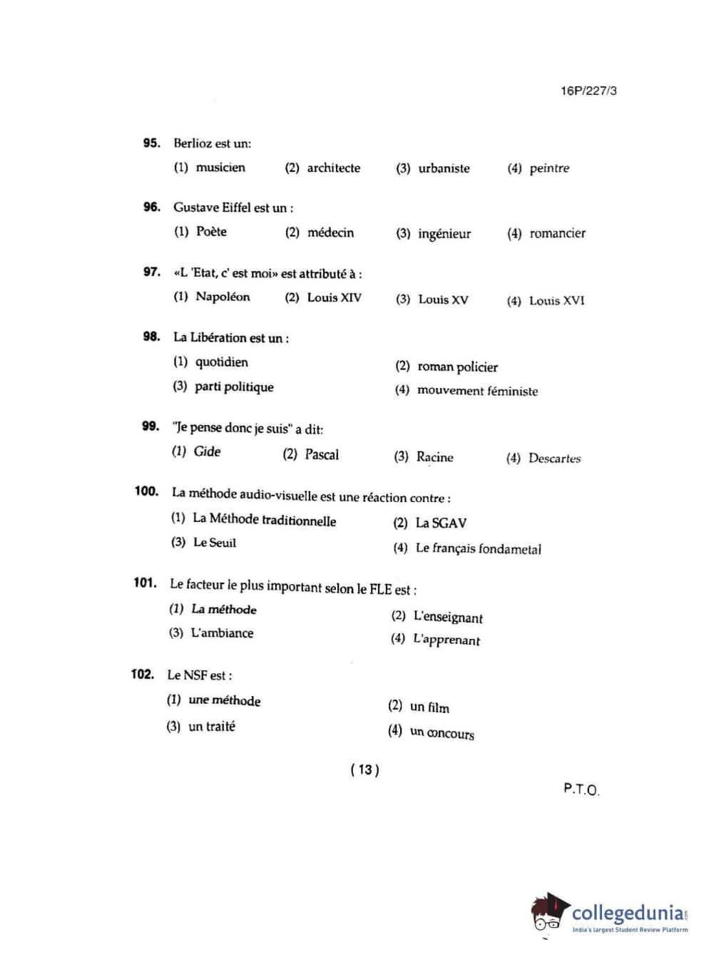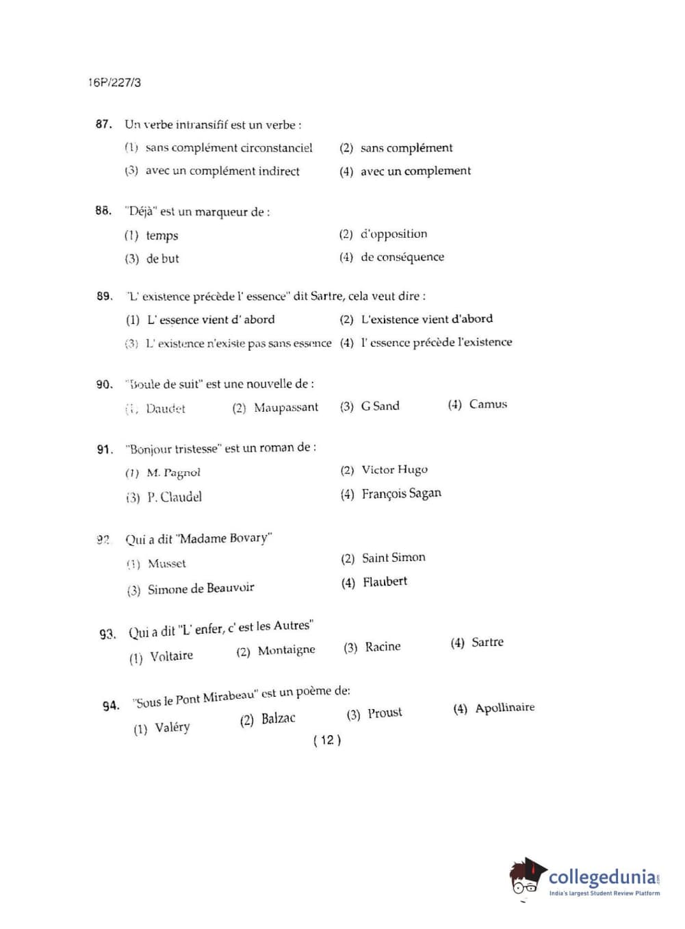 BHU PET 2016 M.A. FRENCH Question paper with answer key pdf is available for download. The exam was successfully organized by Banaras Hindu University (BHU). The question paper comprised a total of 150 questions.