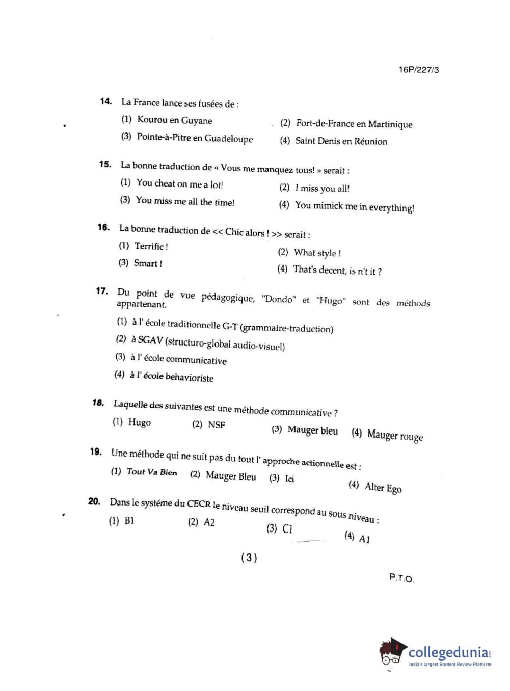 | BHU PET 2016 M.A. FRENCH Question Paper PDF | BHU PET 2016 M.A. FRENCH Answer Key PDF |