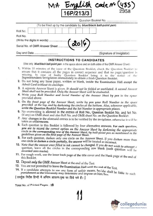 BHU PET 2016 M.A. ENGLISH Question paper with answer key pdf is available for download. The exam was successfully organized by Banaras Hindu University (BHU). The question paper comprised a total of 150 questions.