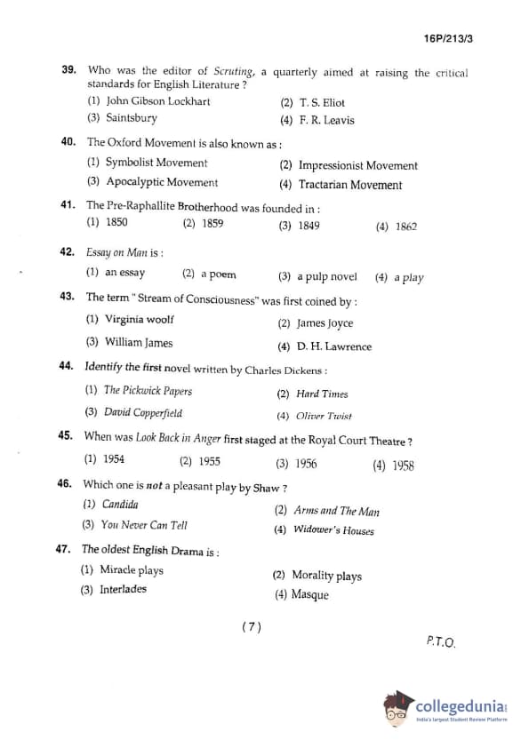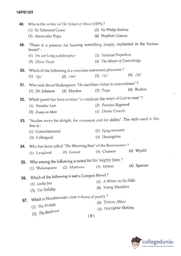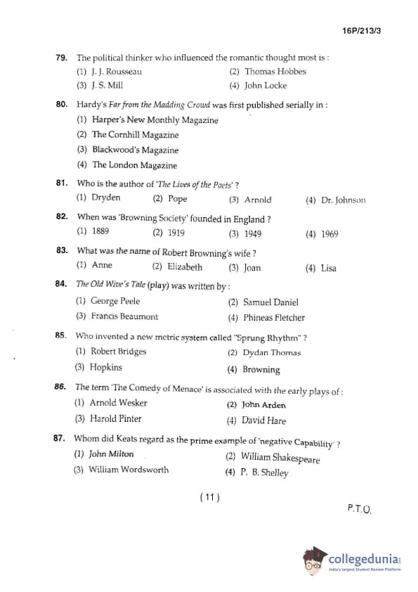 BHU PET 2016 M.A. ENGLISH Question Paper with Answer Key PDFs