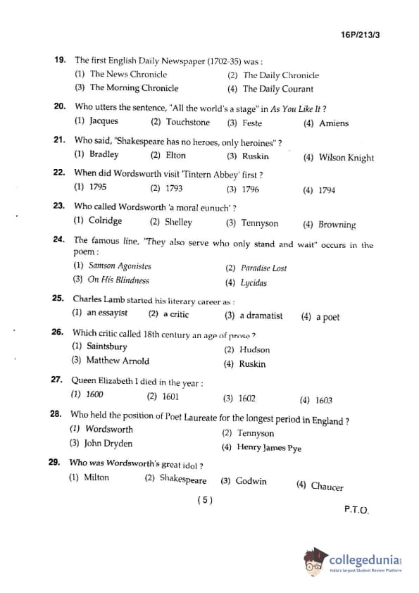 | BHU PET 2016 M.A. ENGLISH Question Paper PDF | BHU PET 2016 M.A. ENGLISH Answer Key PDF |
