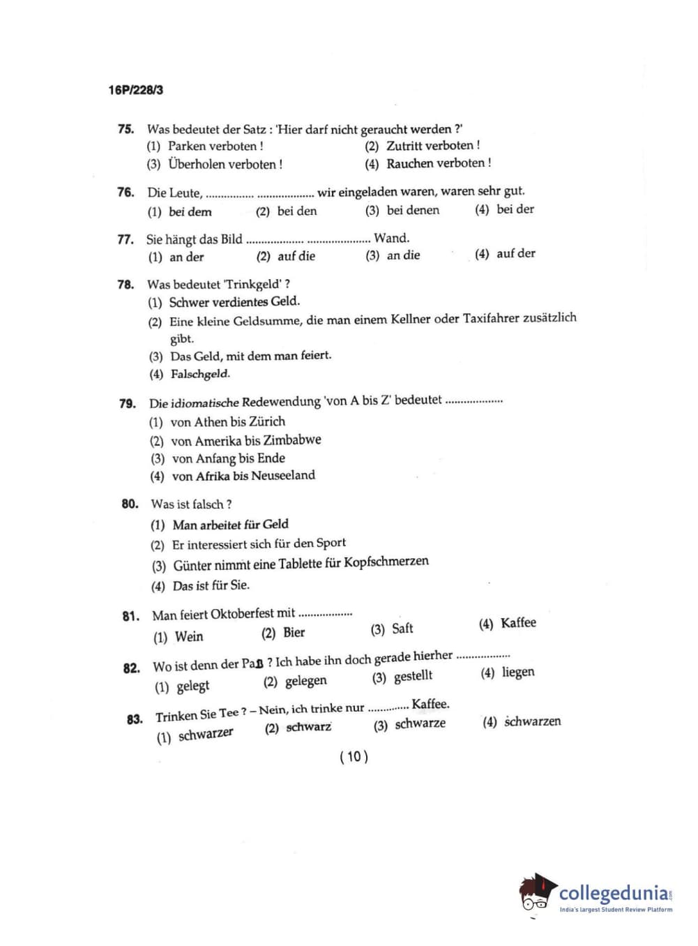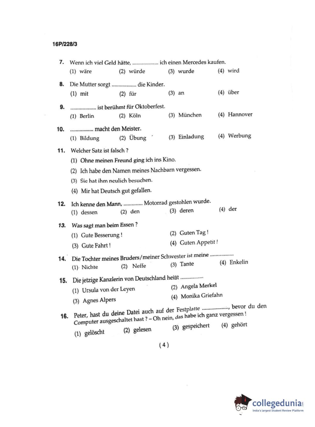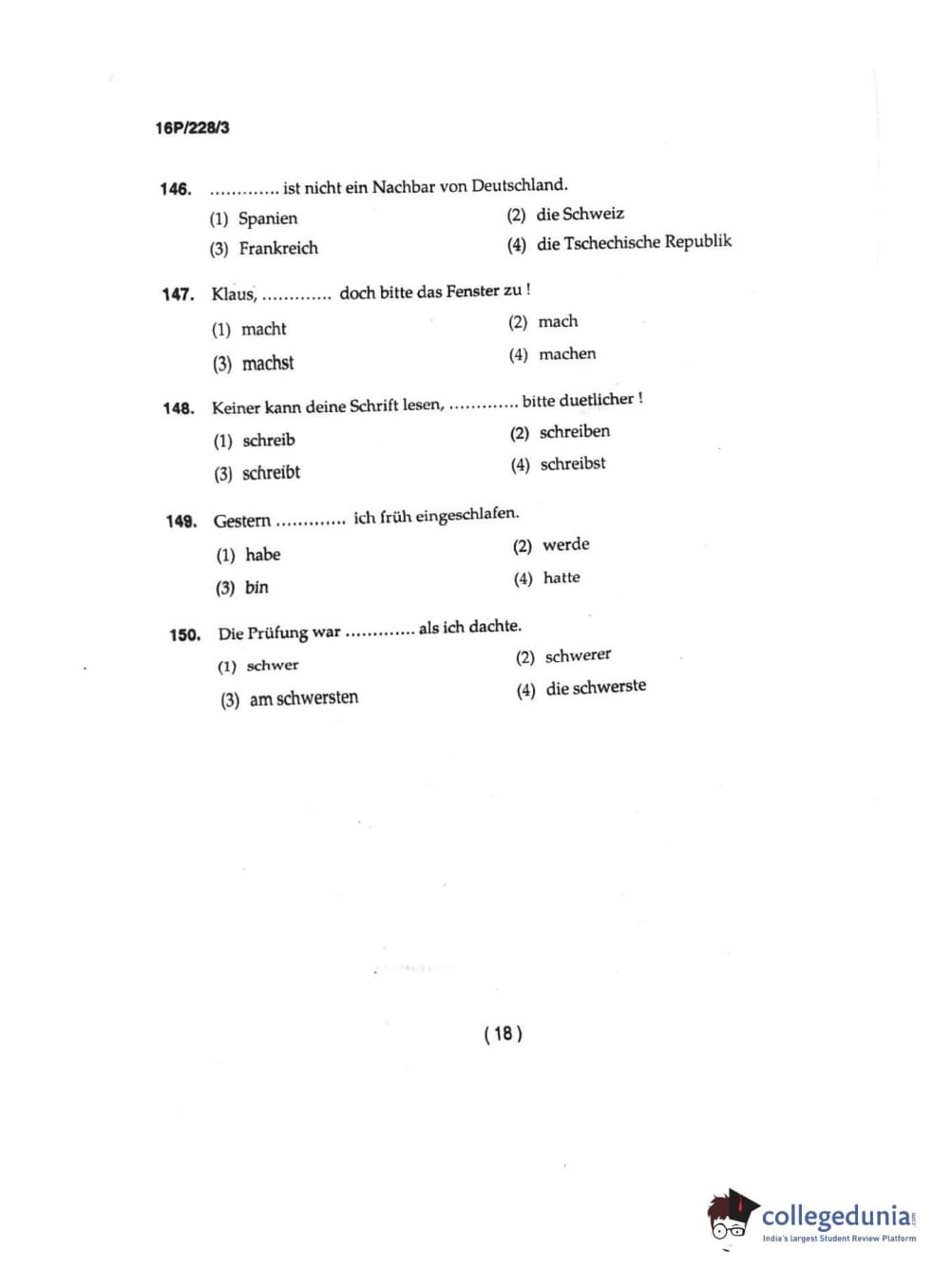 BHU PET 2016 M.A. GERMAN Question Paper with Answer Key PDFs