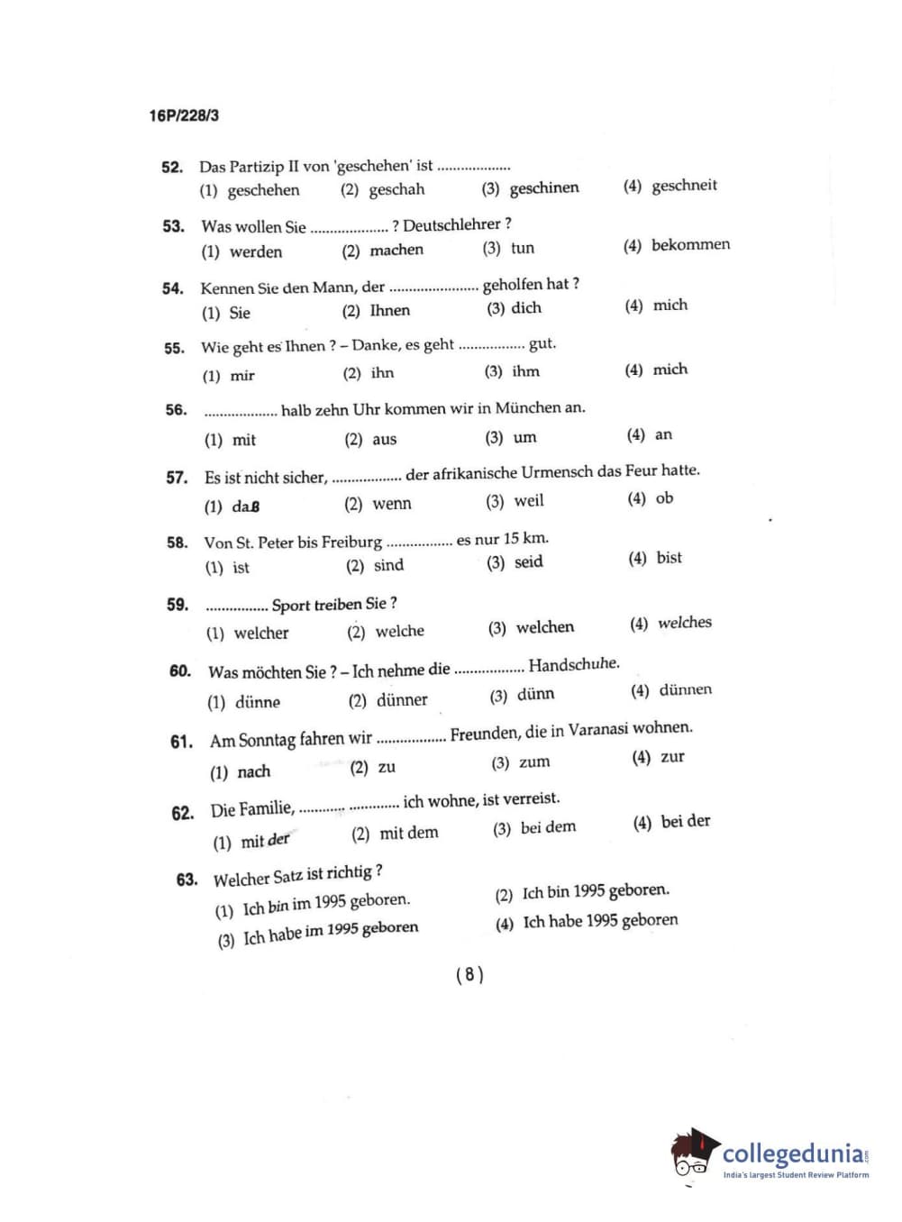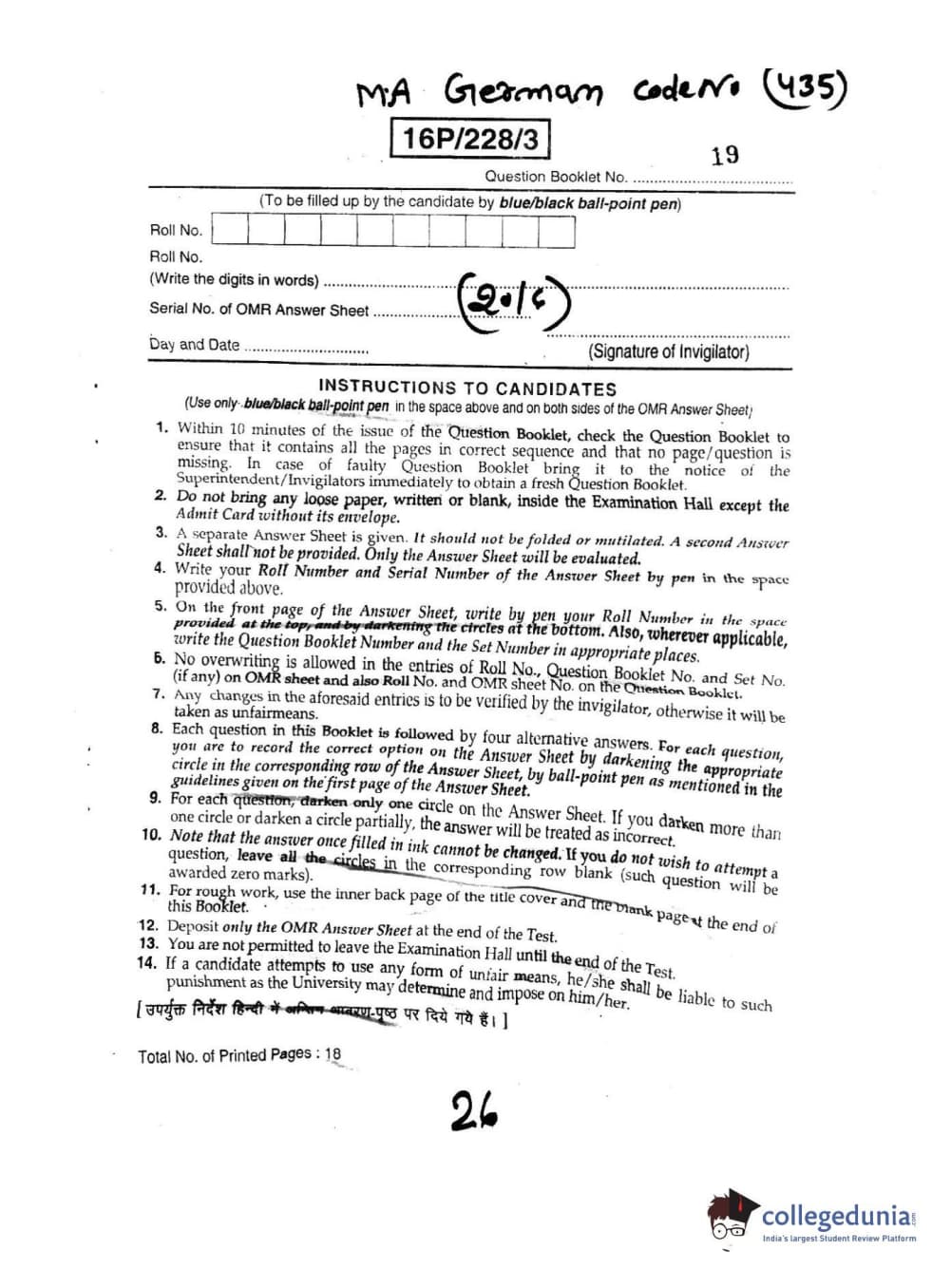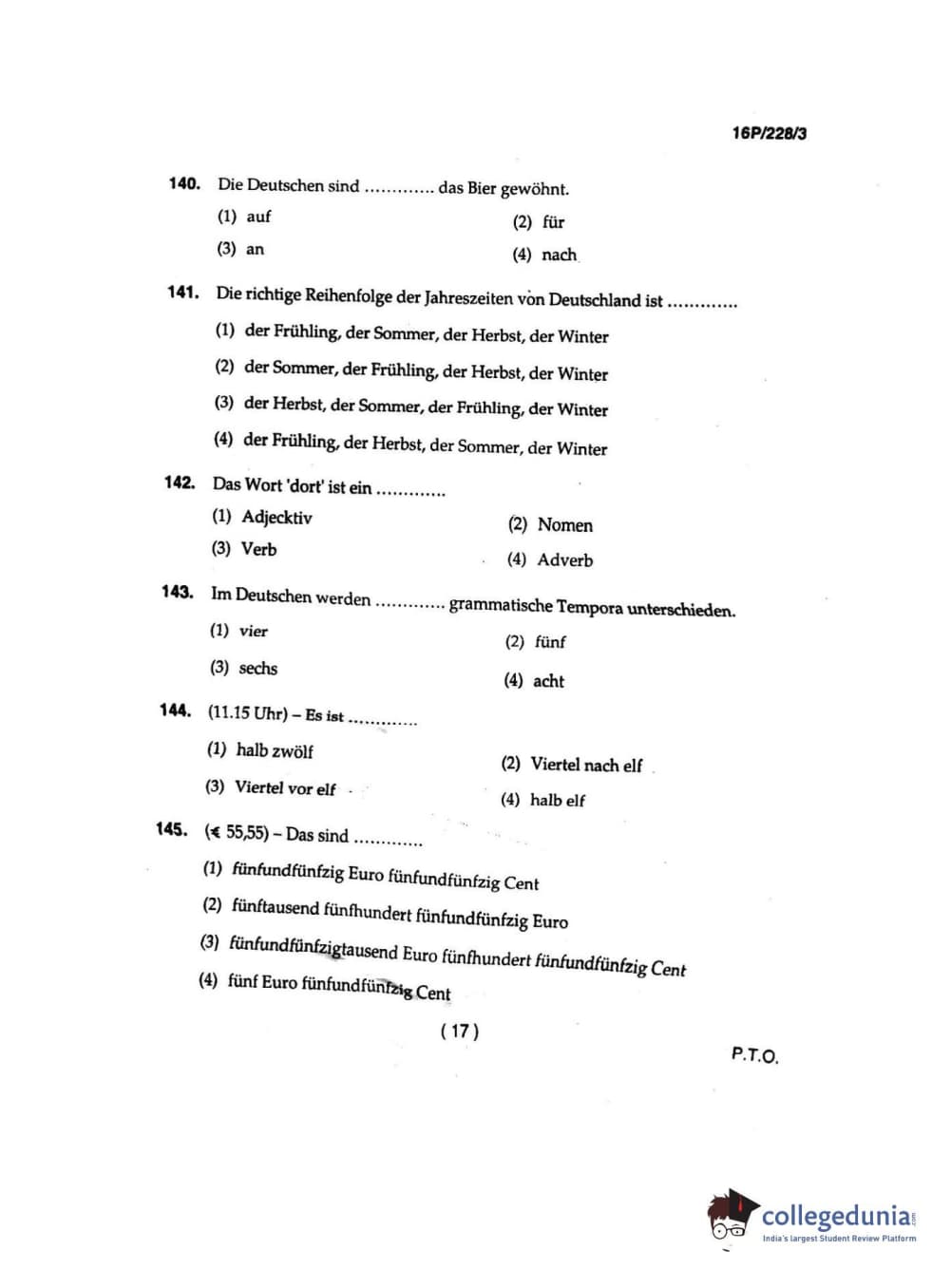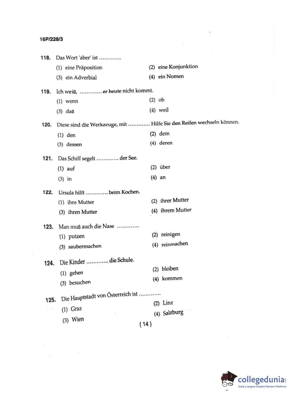 BHU PET 2016 M.A. GERMAN Question Paper with Answer Key PDFs