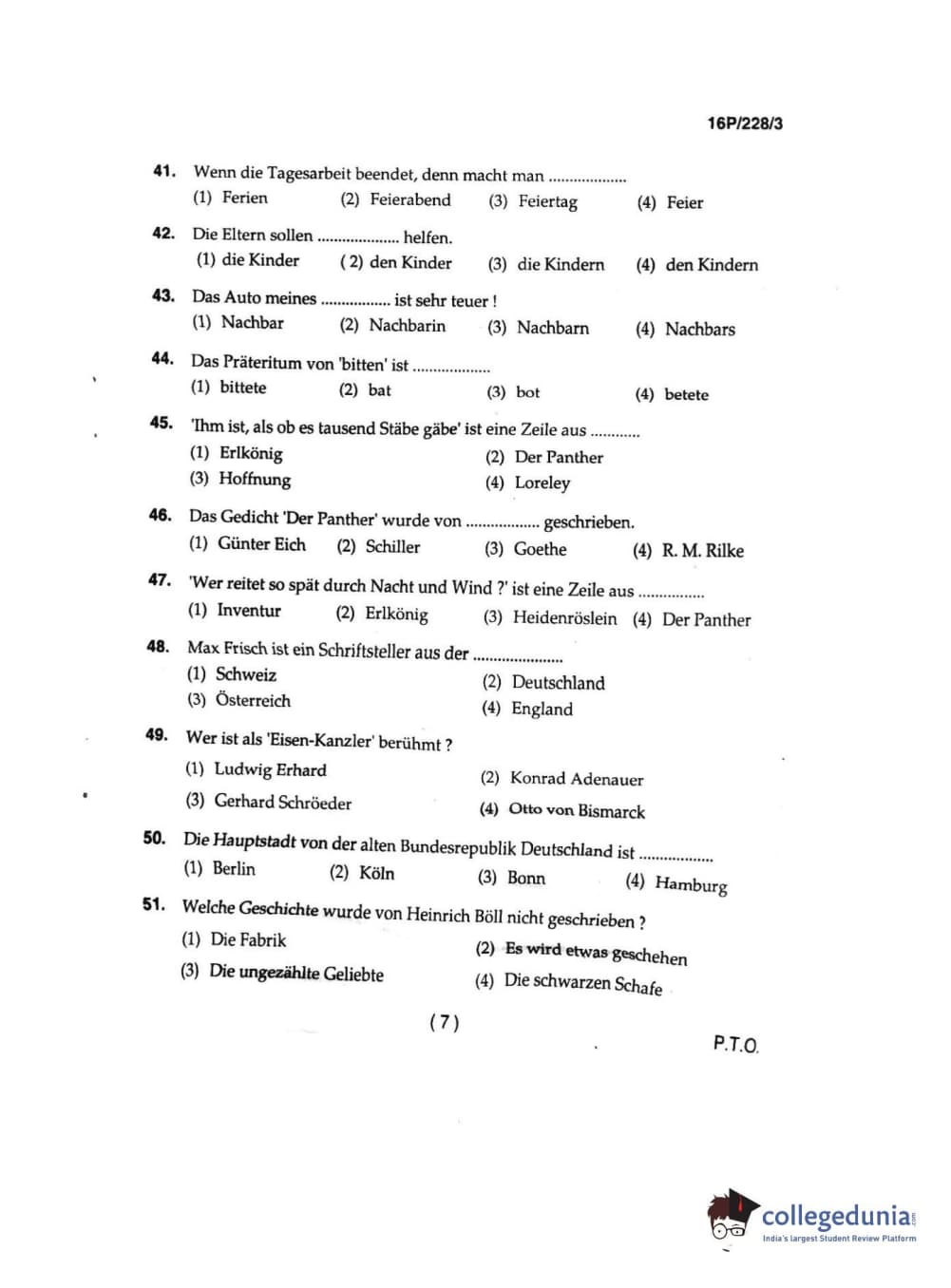 BHU PET 2016 M.A. GERMAN Question paper with answer key pdf is available for download. The exam was successfully organized by Banaras Hindu University (BHU). The question paper comprised a total of 150 questions.