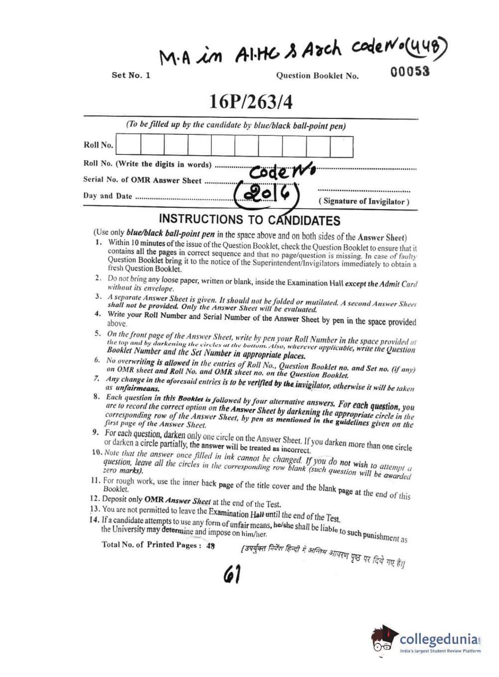 BHU PET 2016 M.A. IN AIHC & ARCH Question paper with answer key pdf is available for download. The exam was successfully organized by Banaras Hindu University (BHU). The question paper comprised a total of 150 questions.