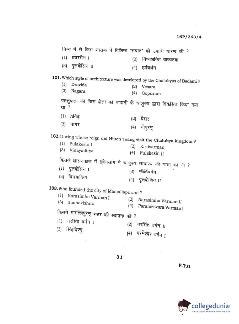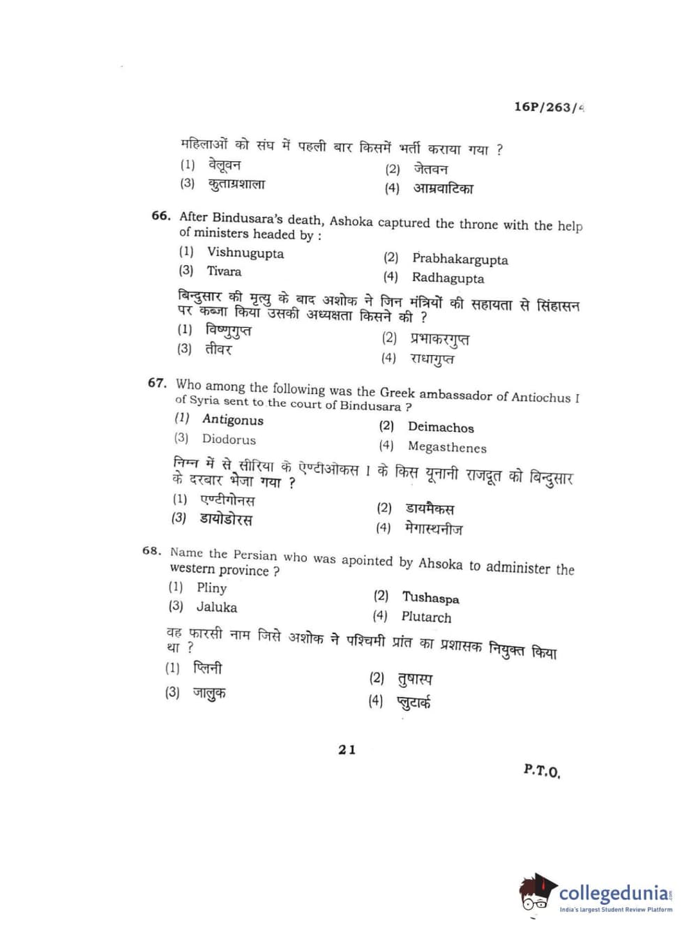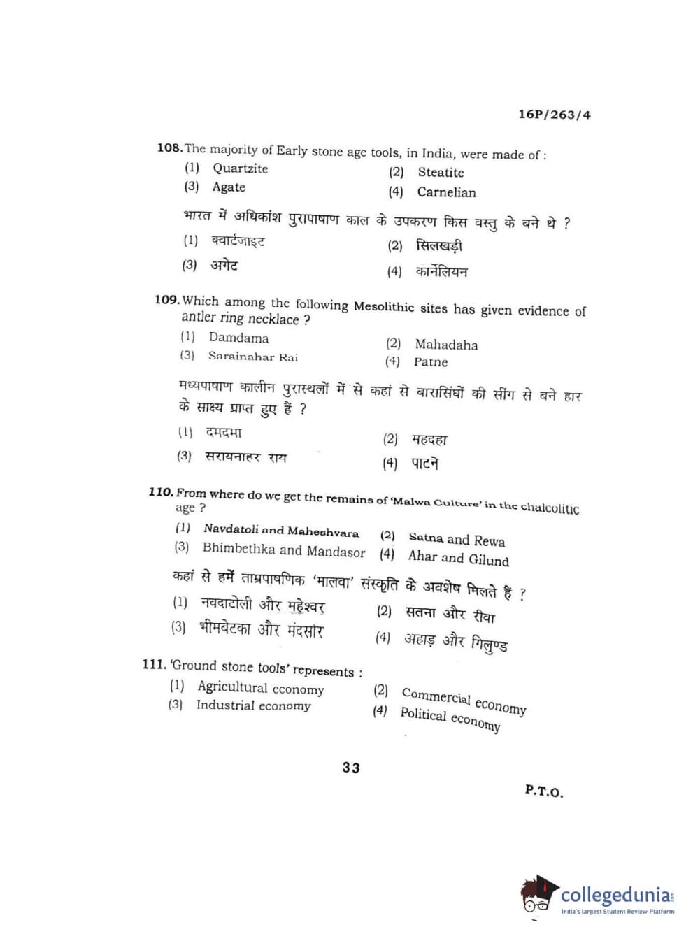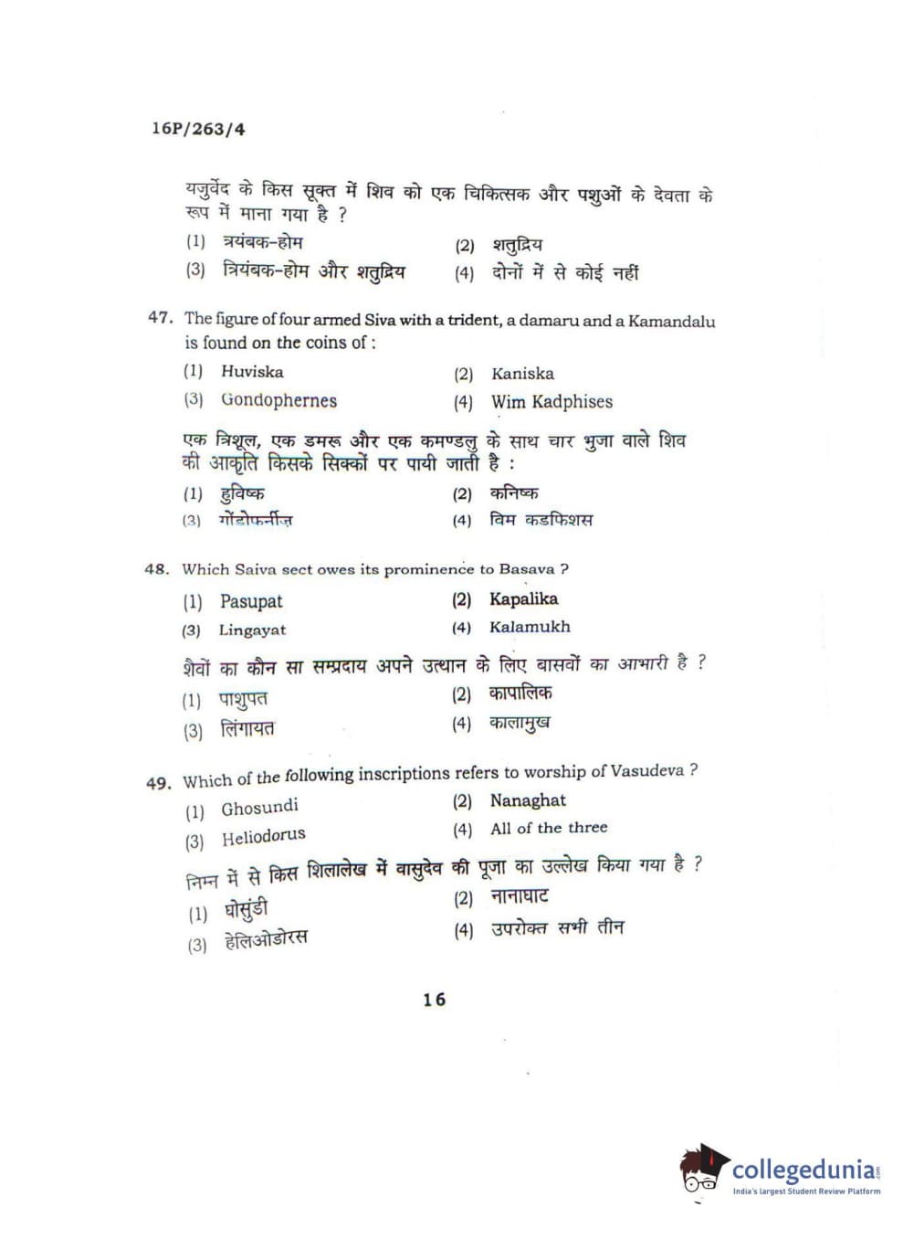 BHU PET 2016 M.A. IN AIHC & ARCH Question Paper with Answer Key PDFs