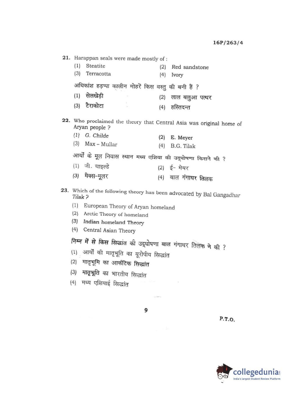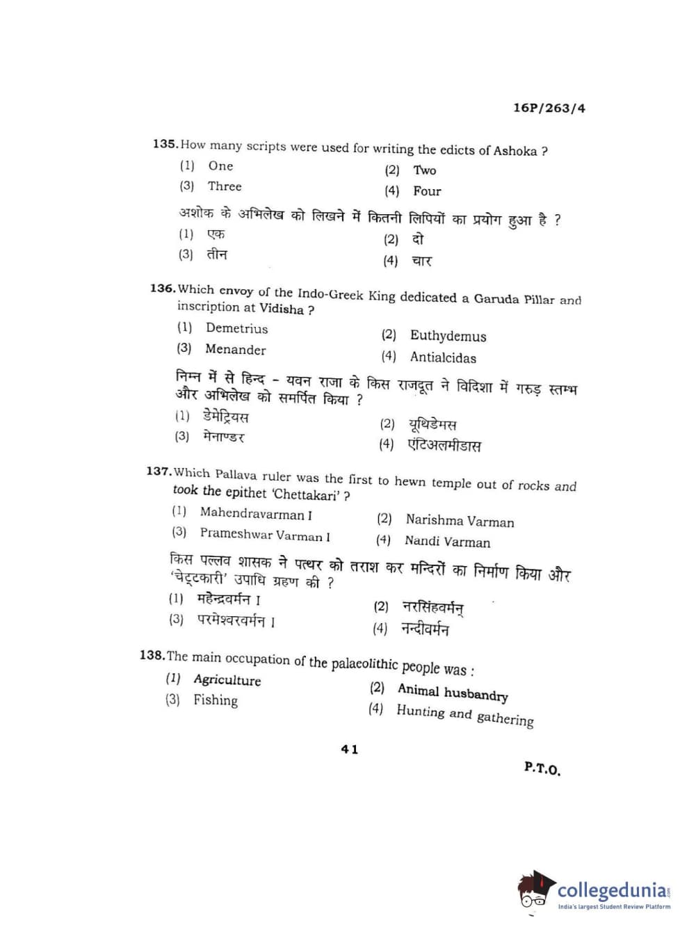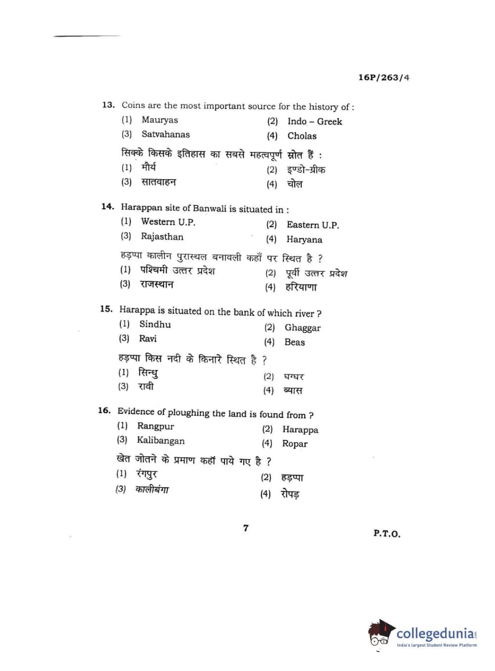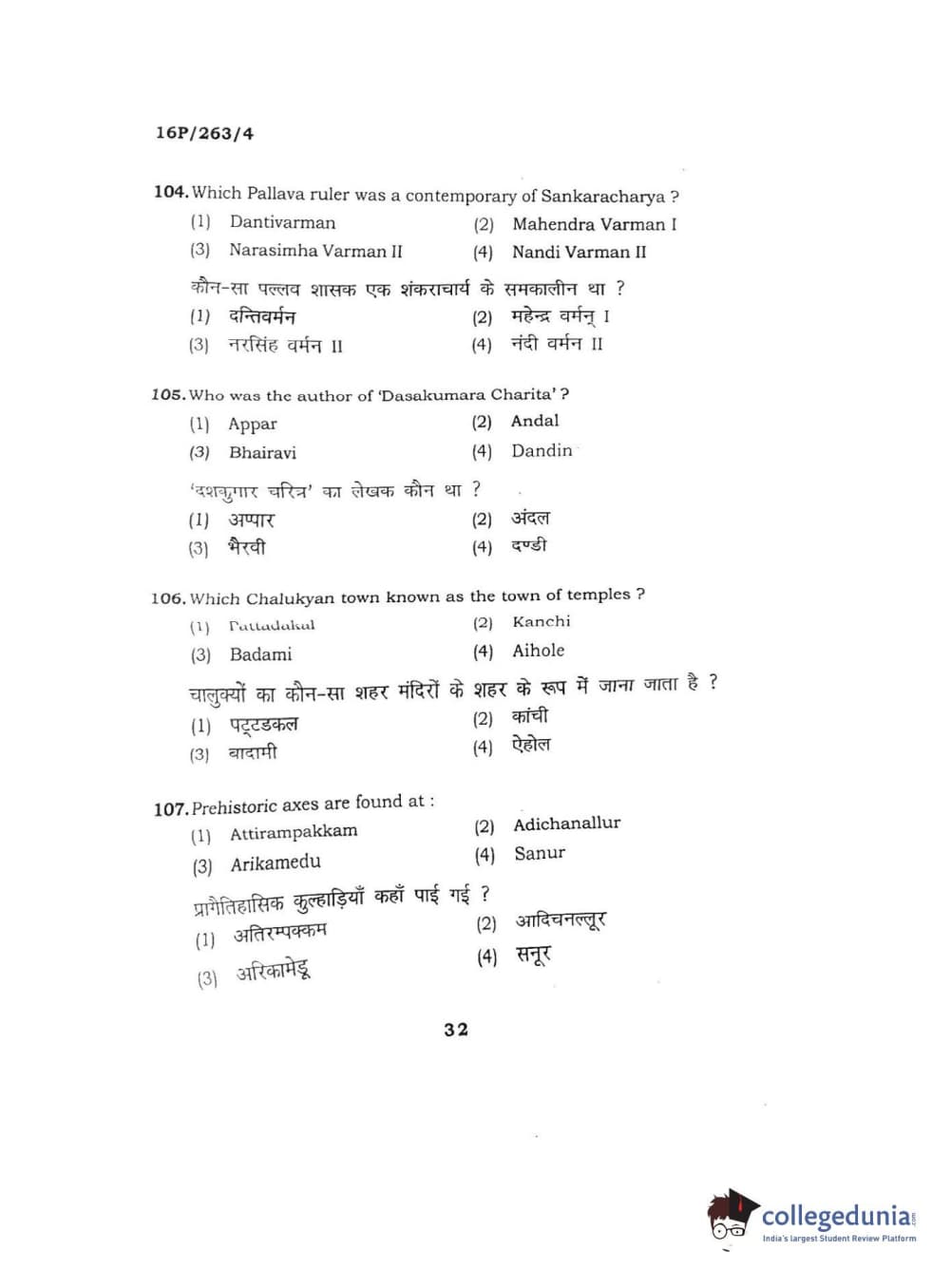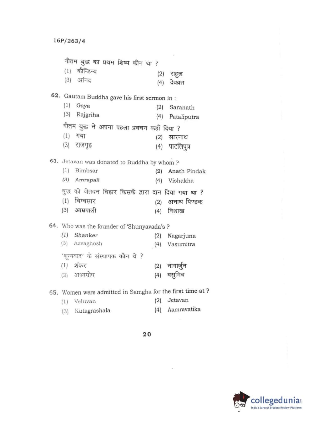 BHU PET 2016 M.A. IN AIHC & ARCH Question Paper with Answer Key PDFs