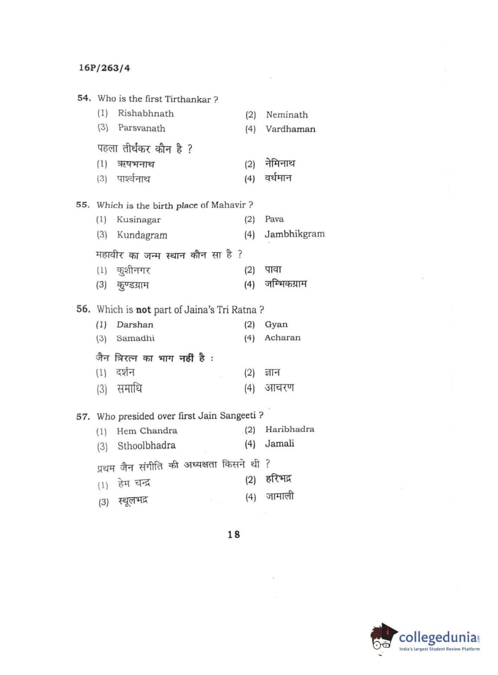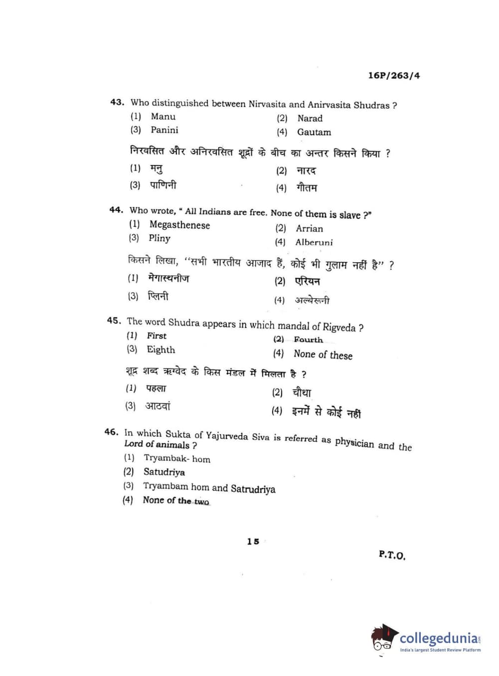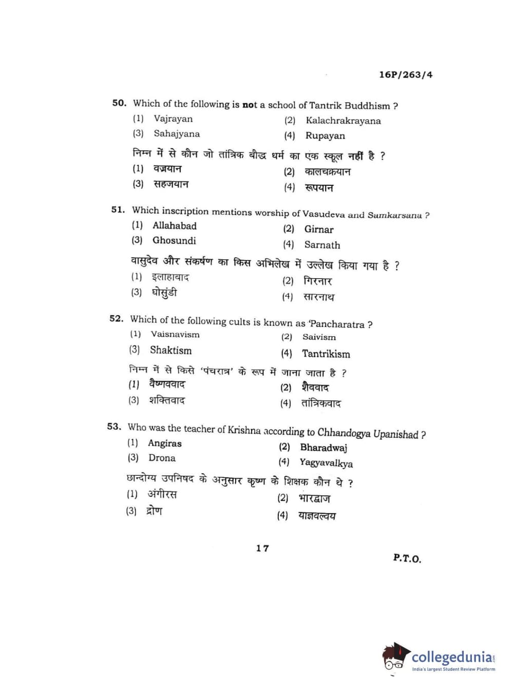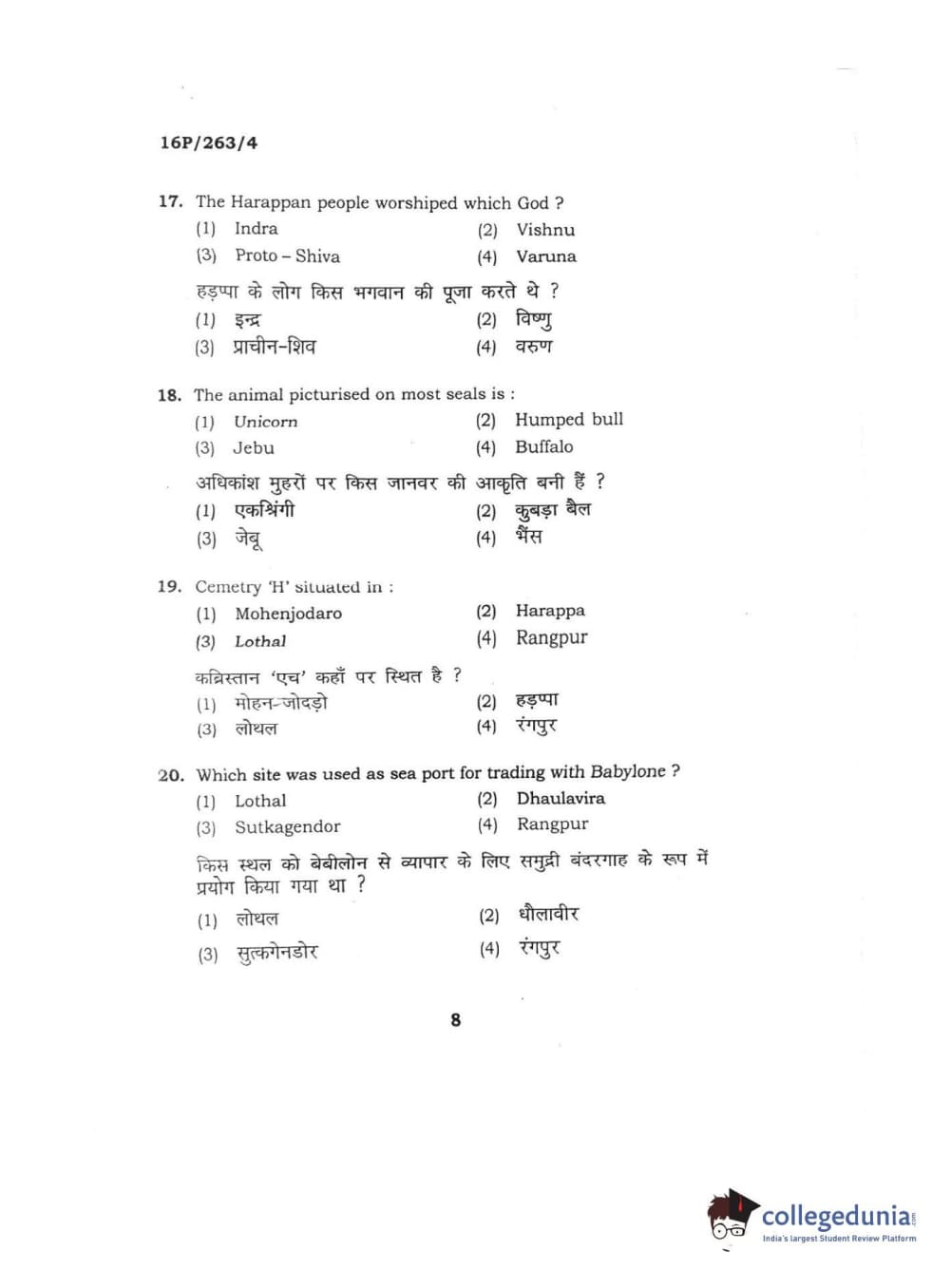 BHU PET 2016 M.A. IN AIHC & ARCH Question Paper with Answer Key PDFs