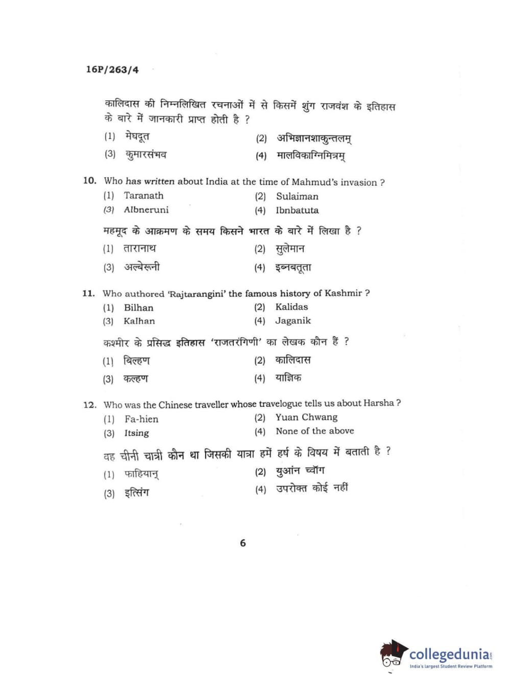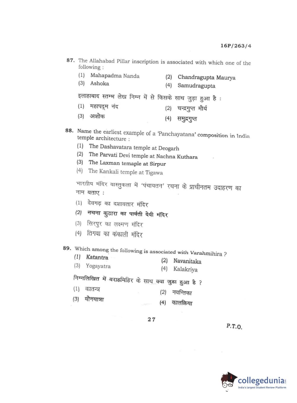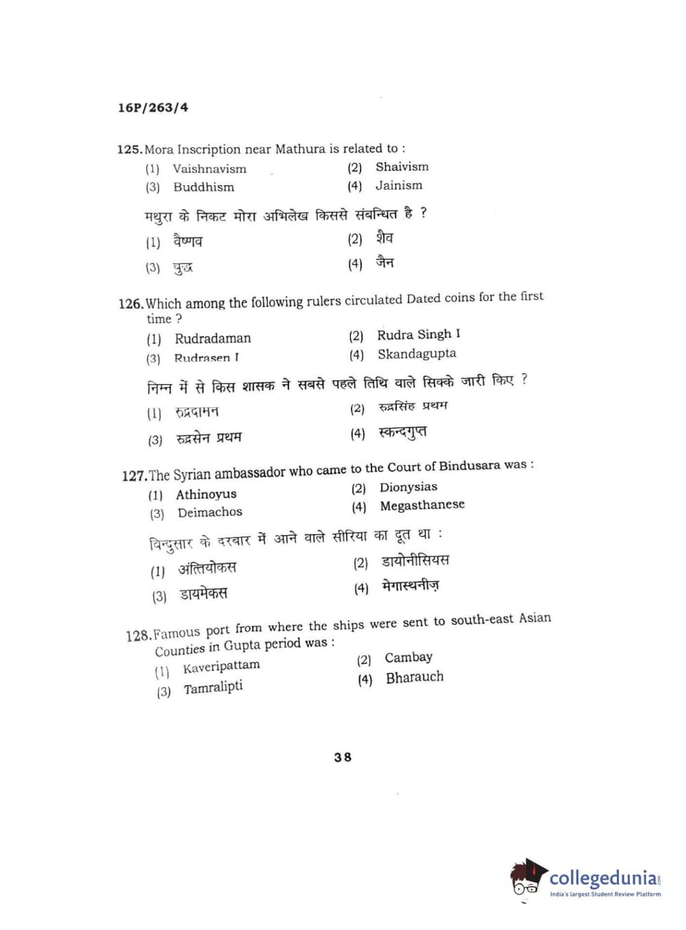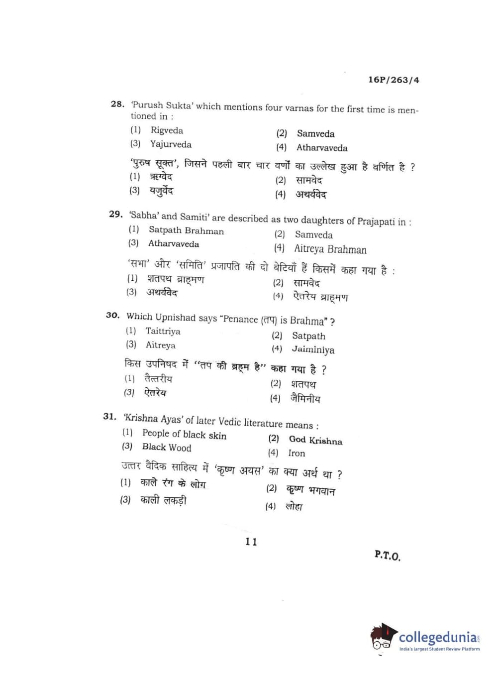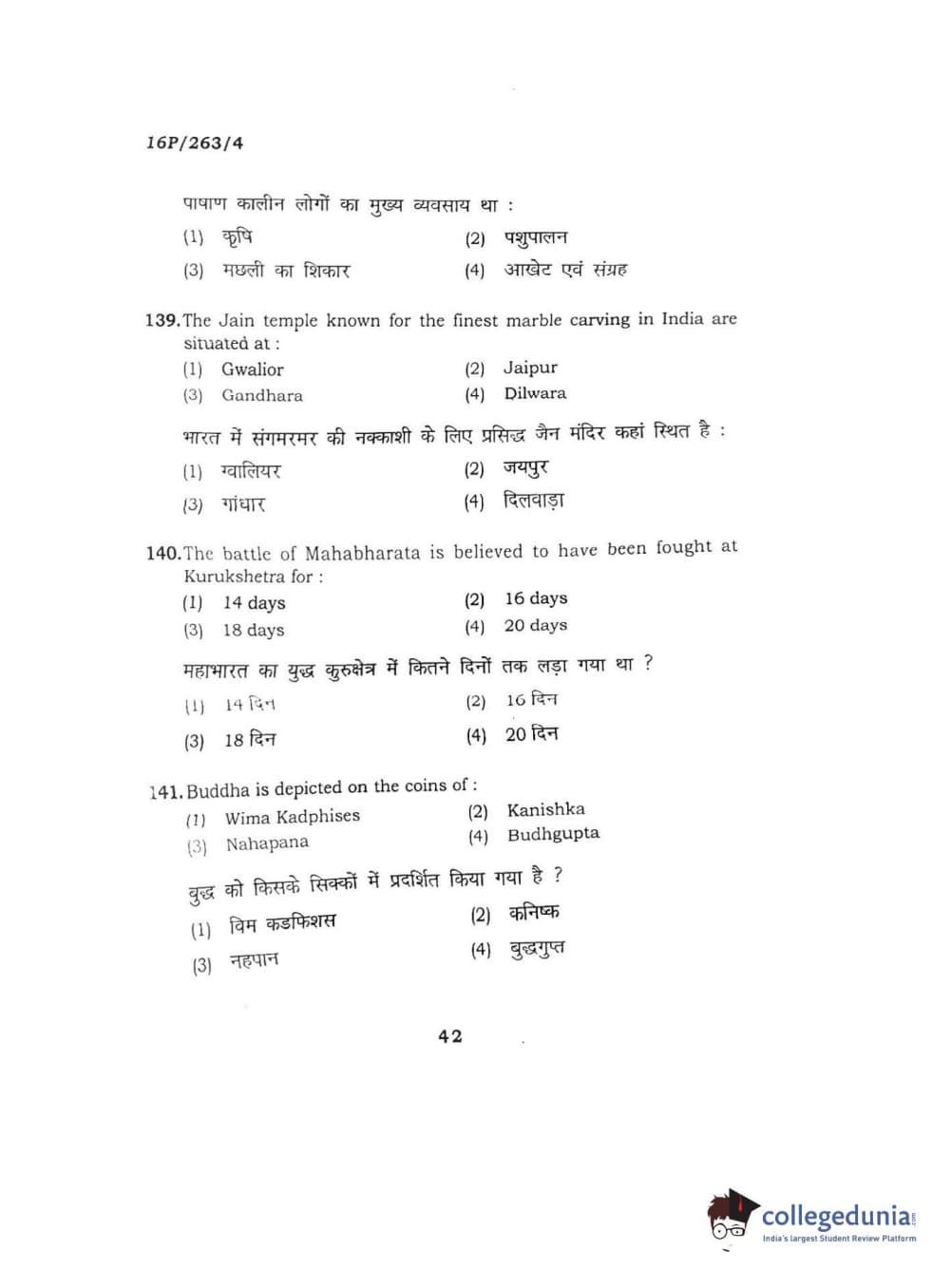 BHU PET 2016 M.A. IN AIHC & ARCH Question Paper with Answer Key PDFs