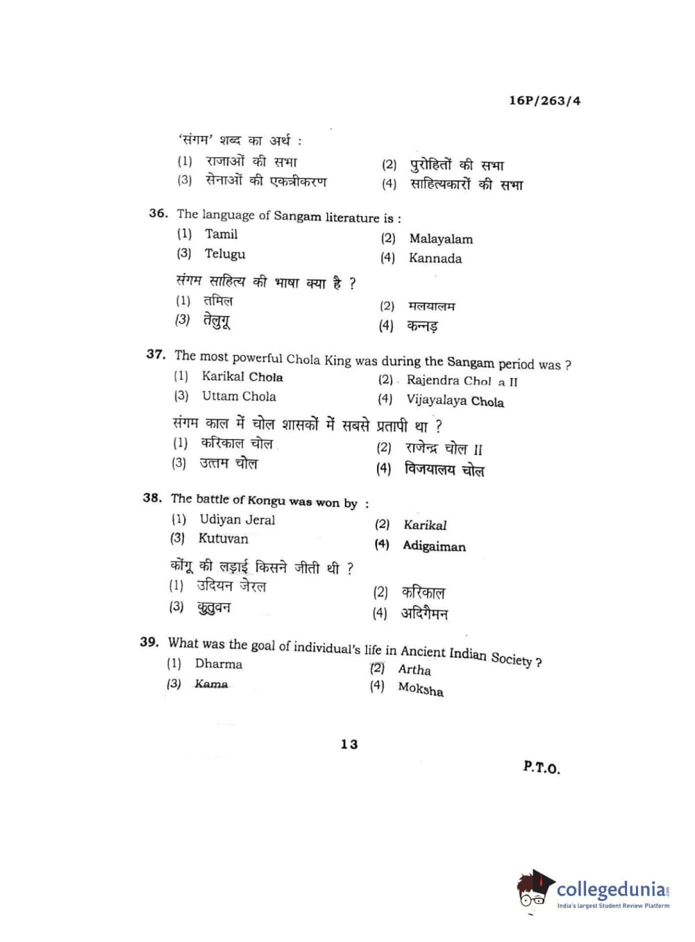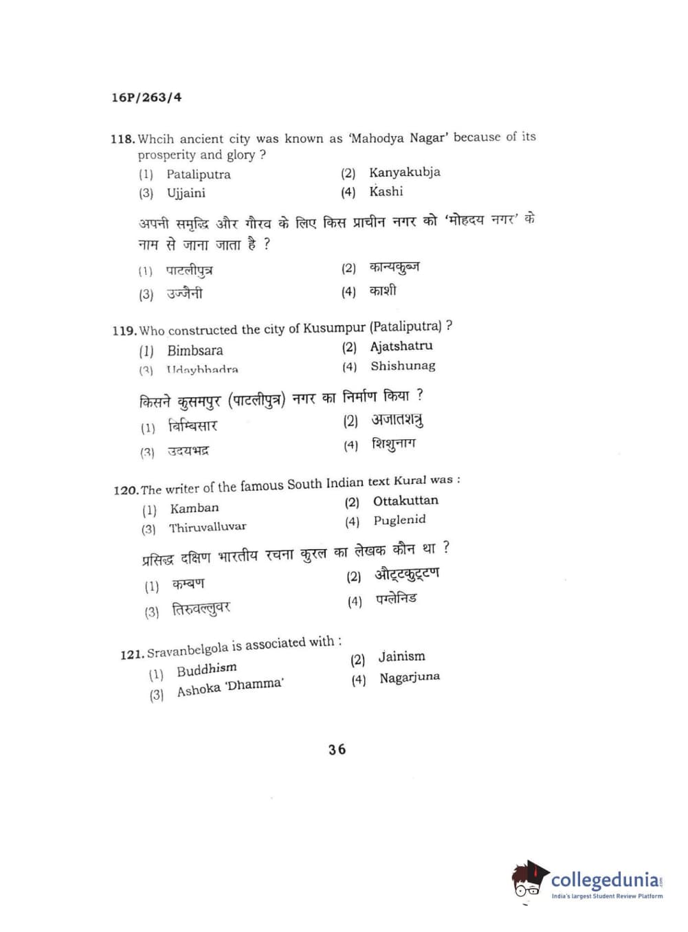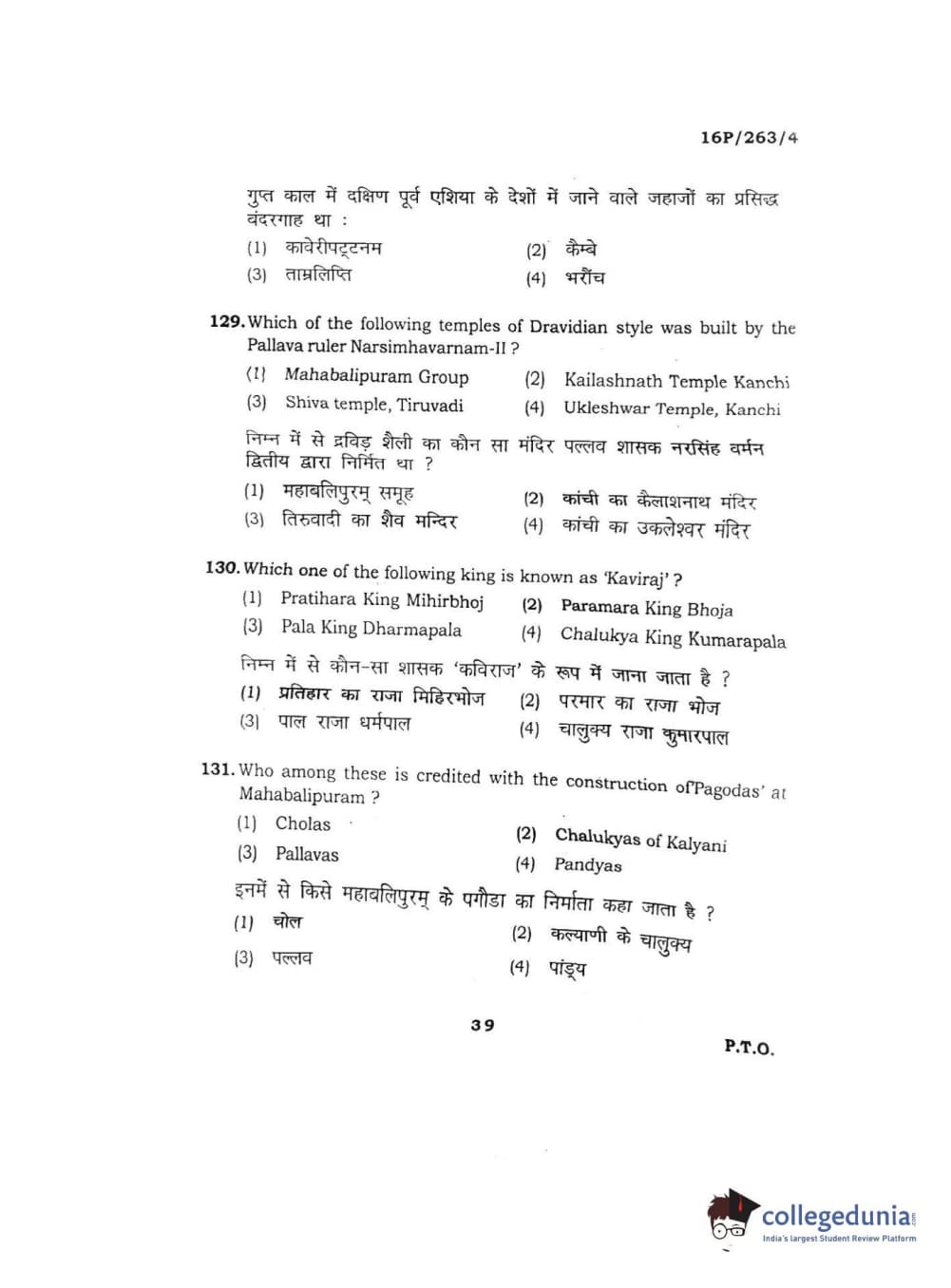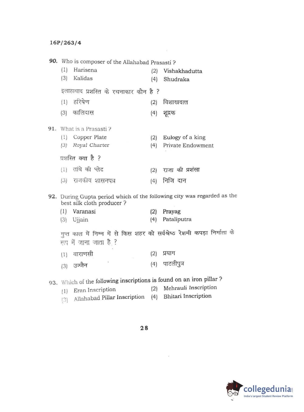 BHU PET 2016 M.A. IN AIHC & ARCH Question Paper with Answer Key PDFs