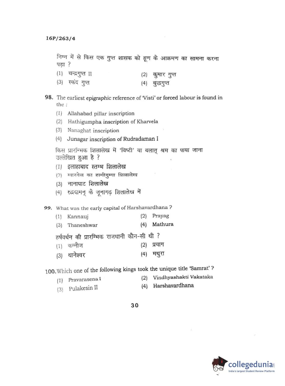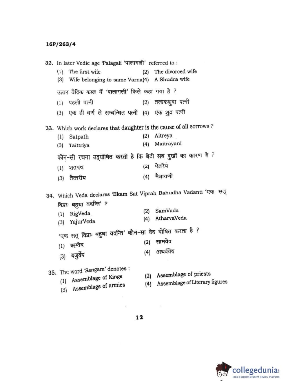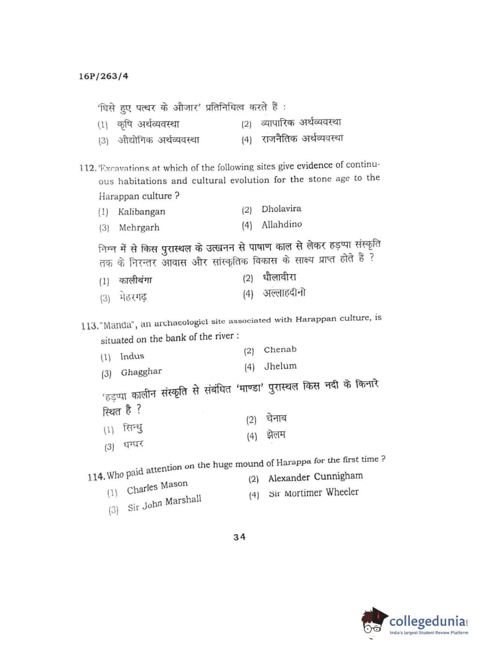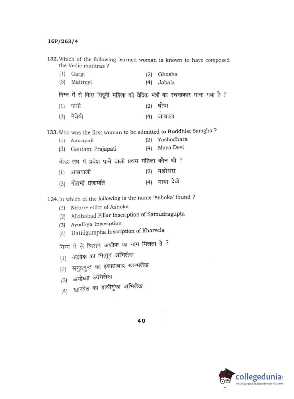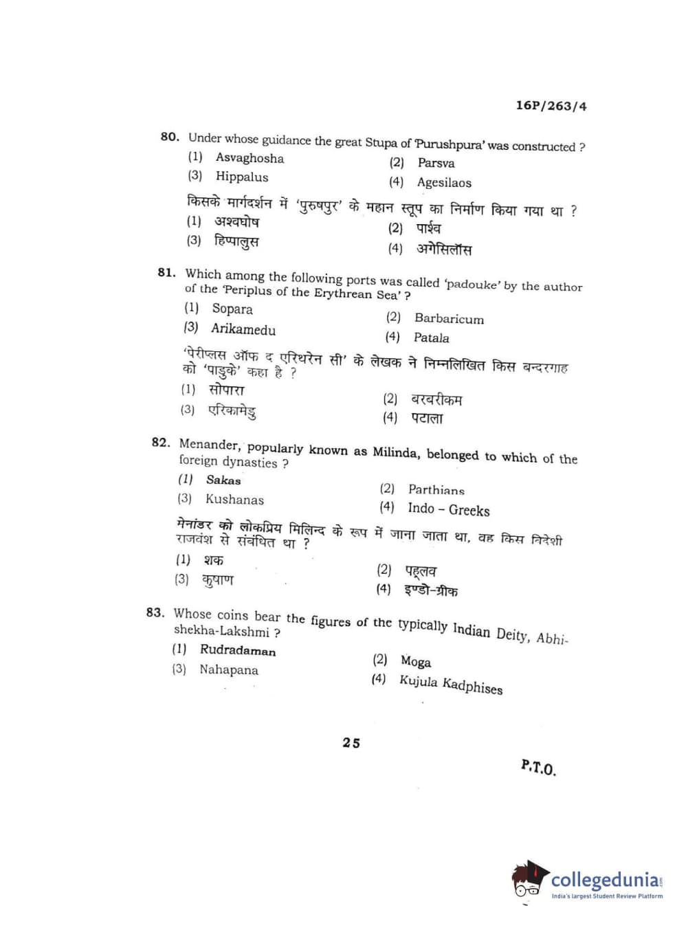 BHU PET 2016 M.A. IN AIHC & ARCH Question Paper with Answer Key PDFs