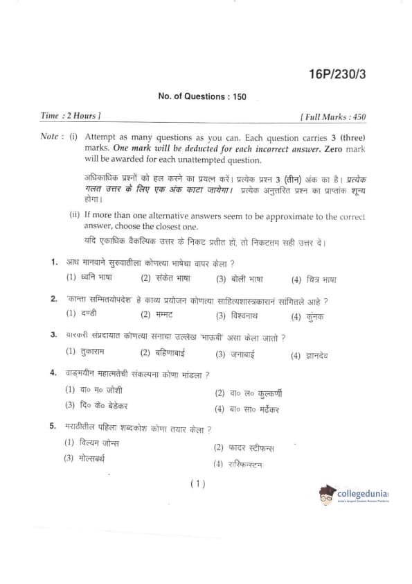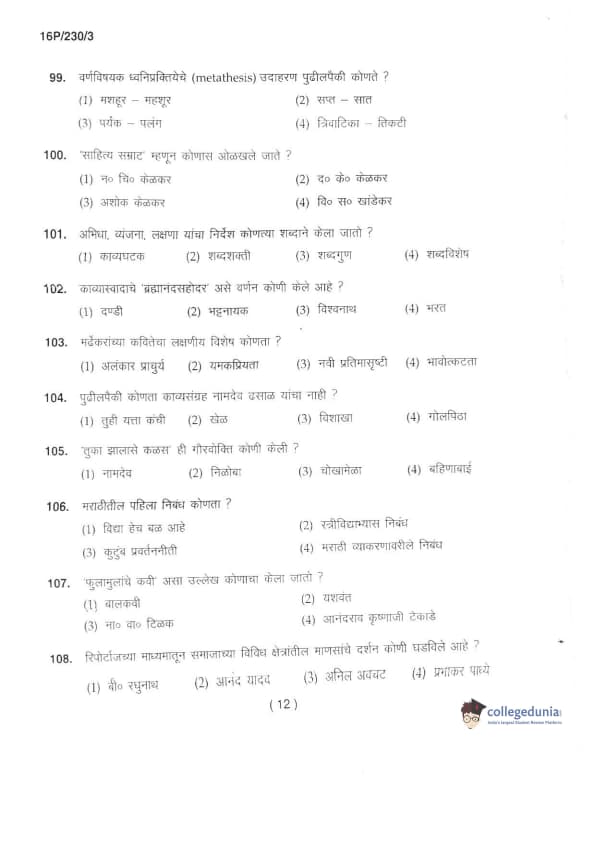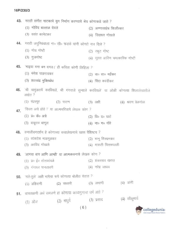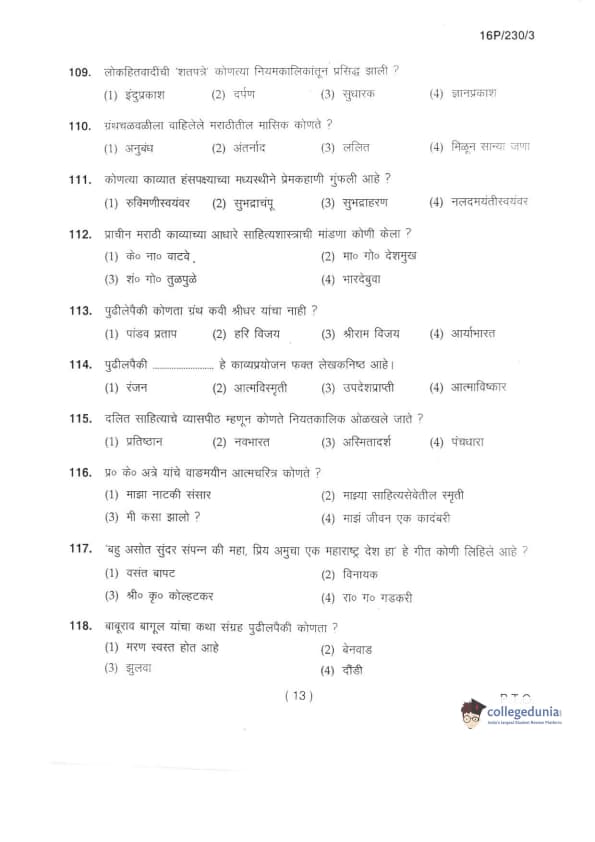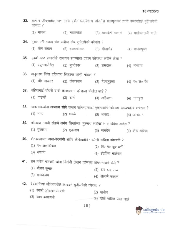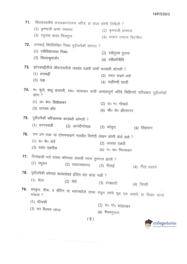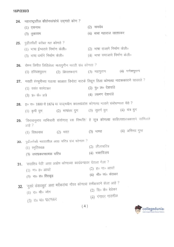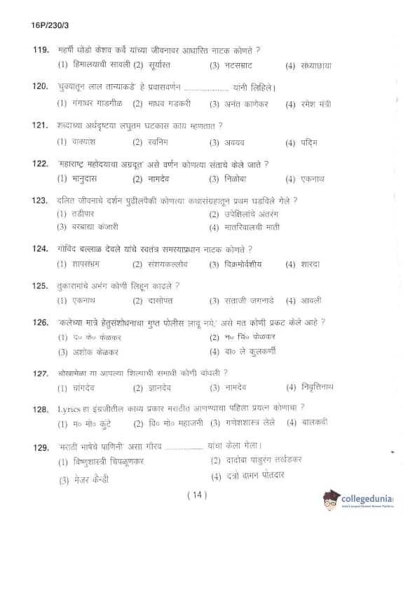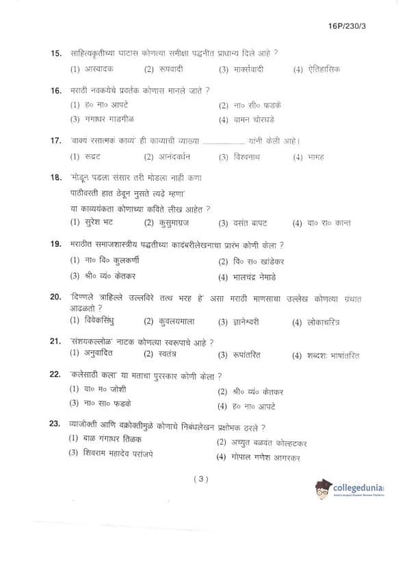 BHU PET 2016 M.A. MARTHI Question Paper with Answer Key PDFs in Marathi