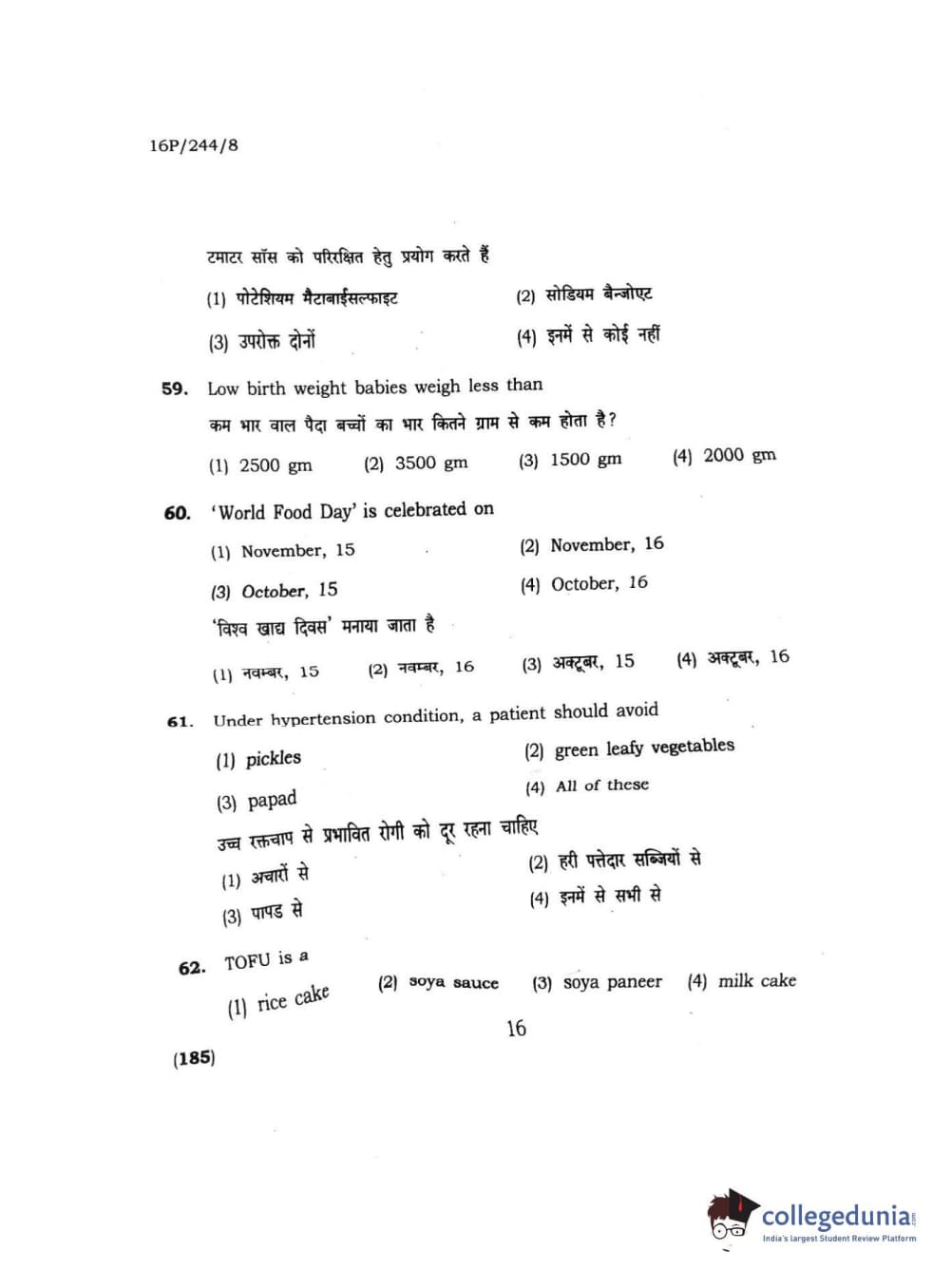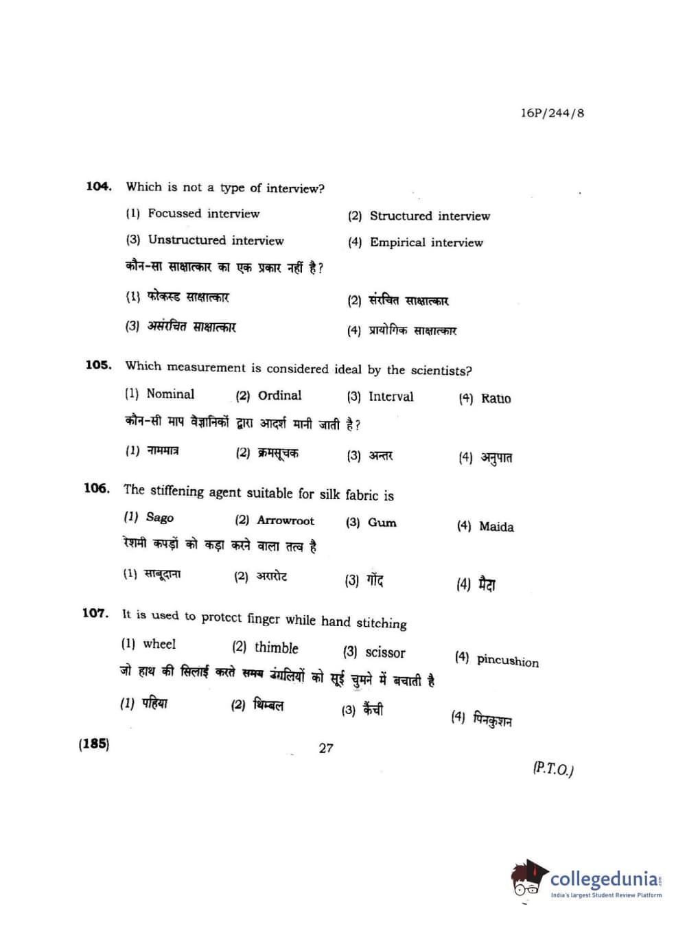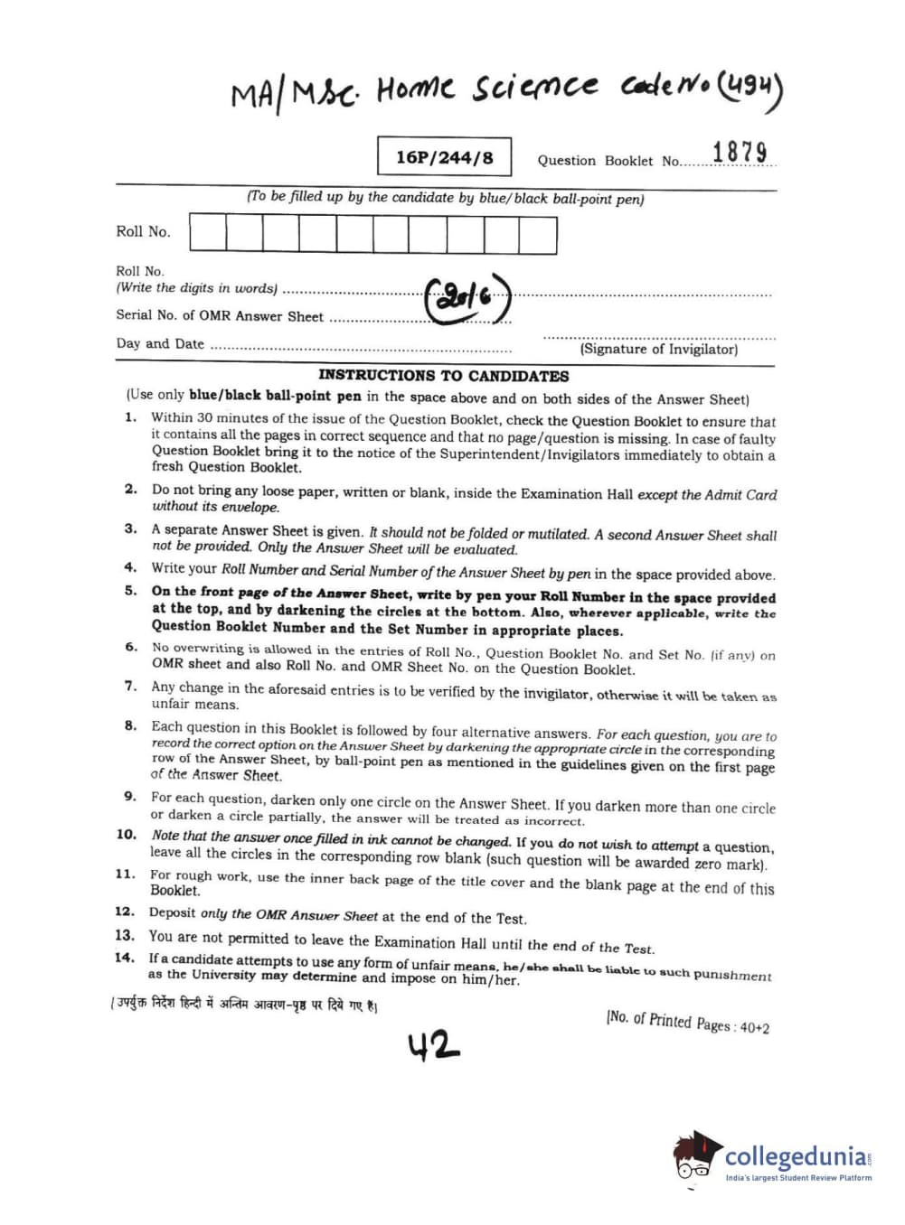 | BHU PET 2016 M.A. M.SC. HOME SCIENCE Question Paper PDF | BHU PET 2016 M.A. M.SC. HOME SCIENCE Answer Key PDF |