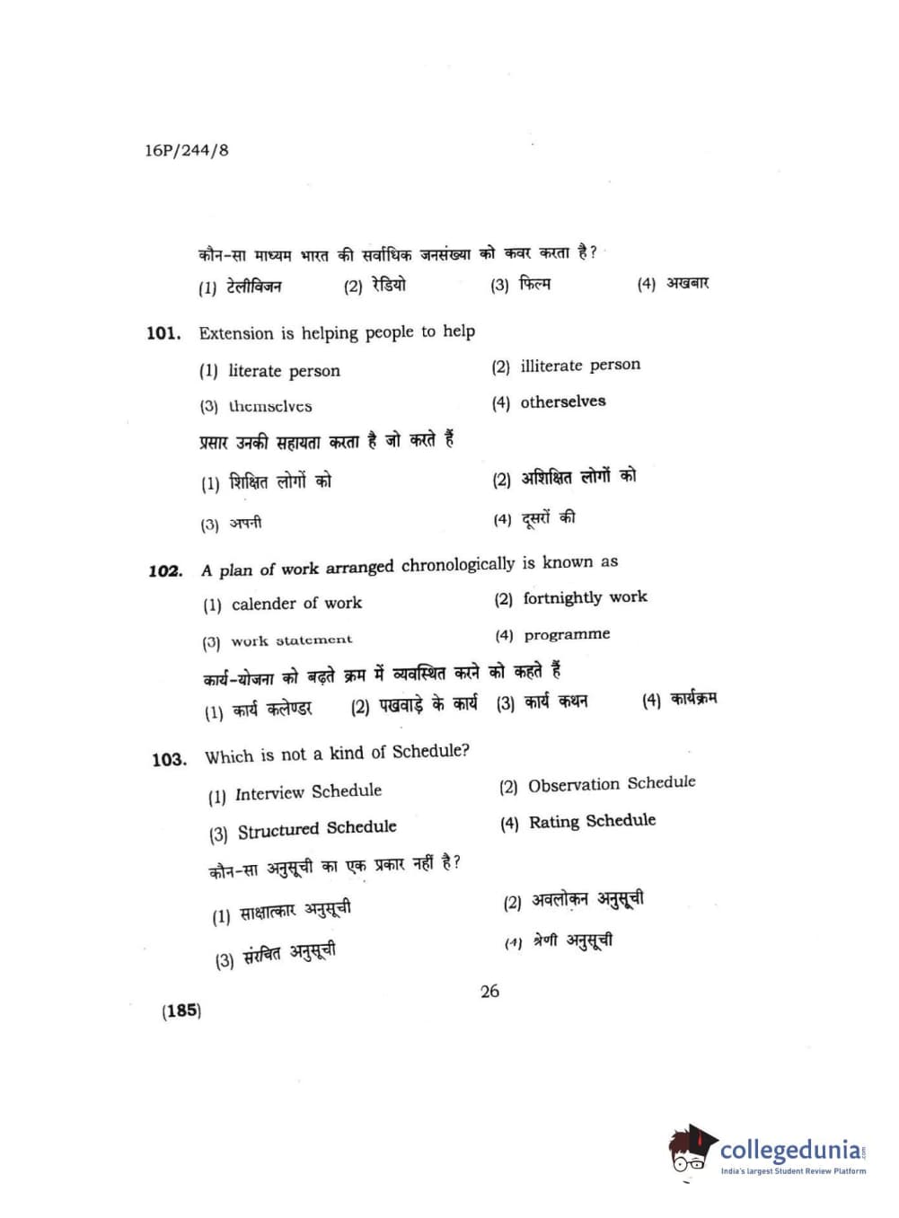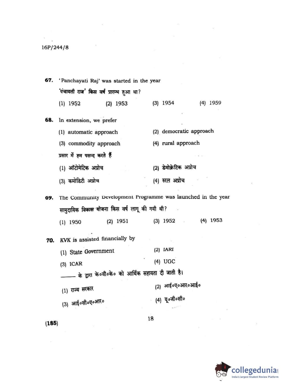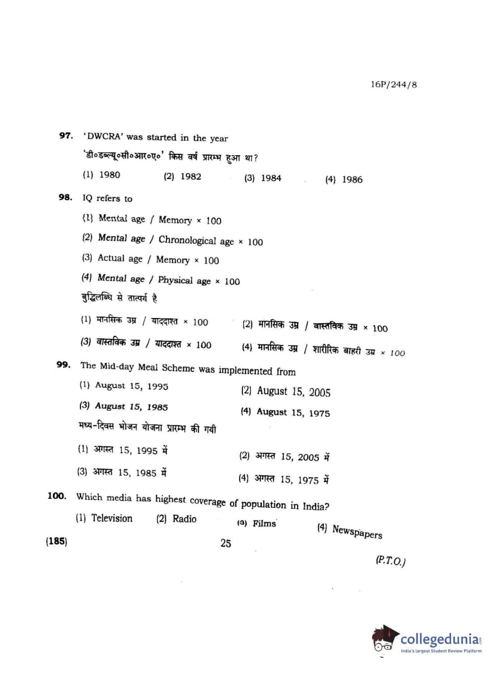| BHU PET 2016 M.A. M.SC. HOME SCIENCE Question Paper PDF | BHU PET 2016 M.A. M.SC. HOME SCIENCE Answer Key PDF |