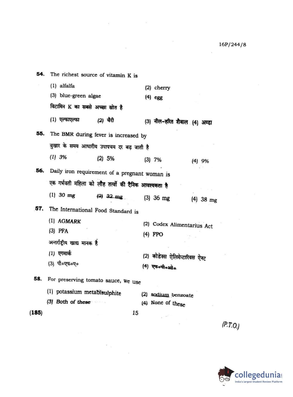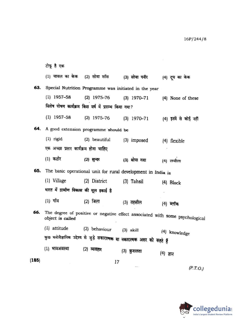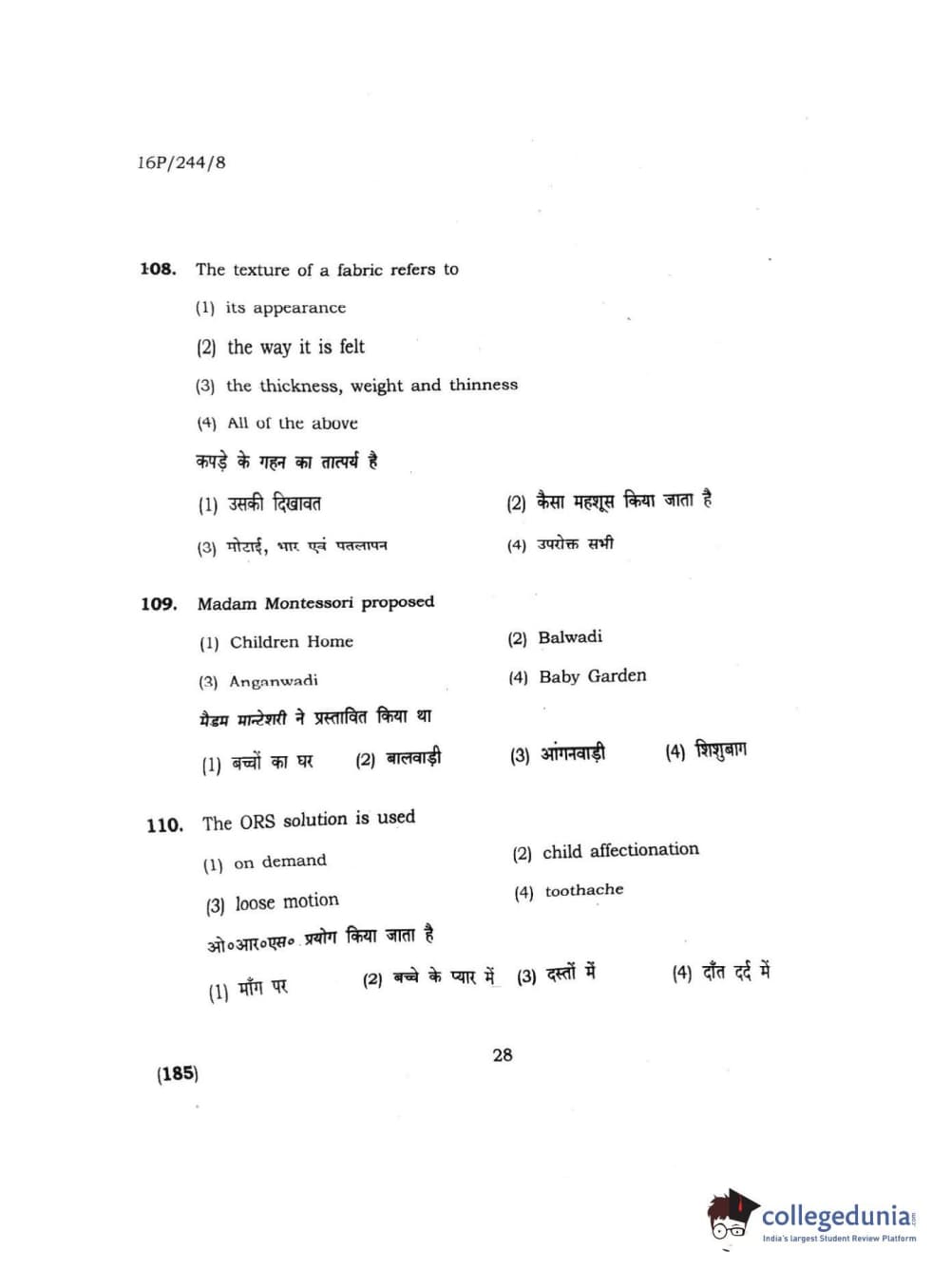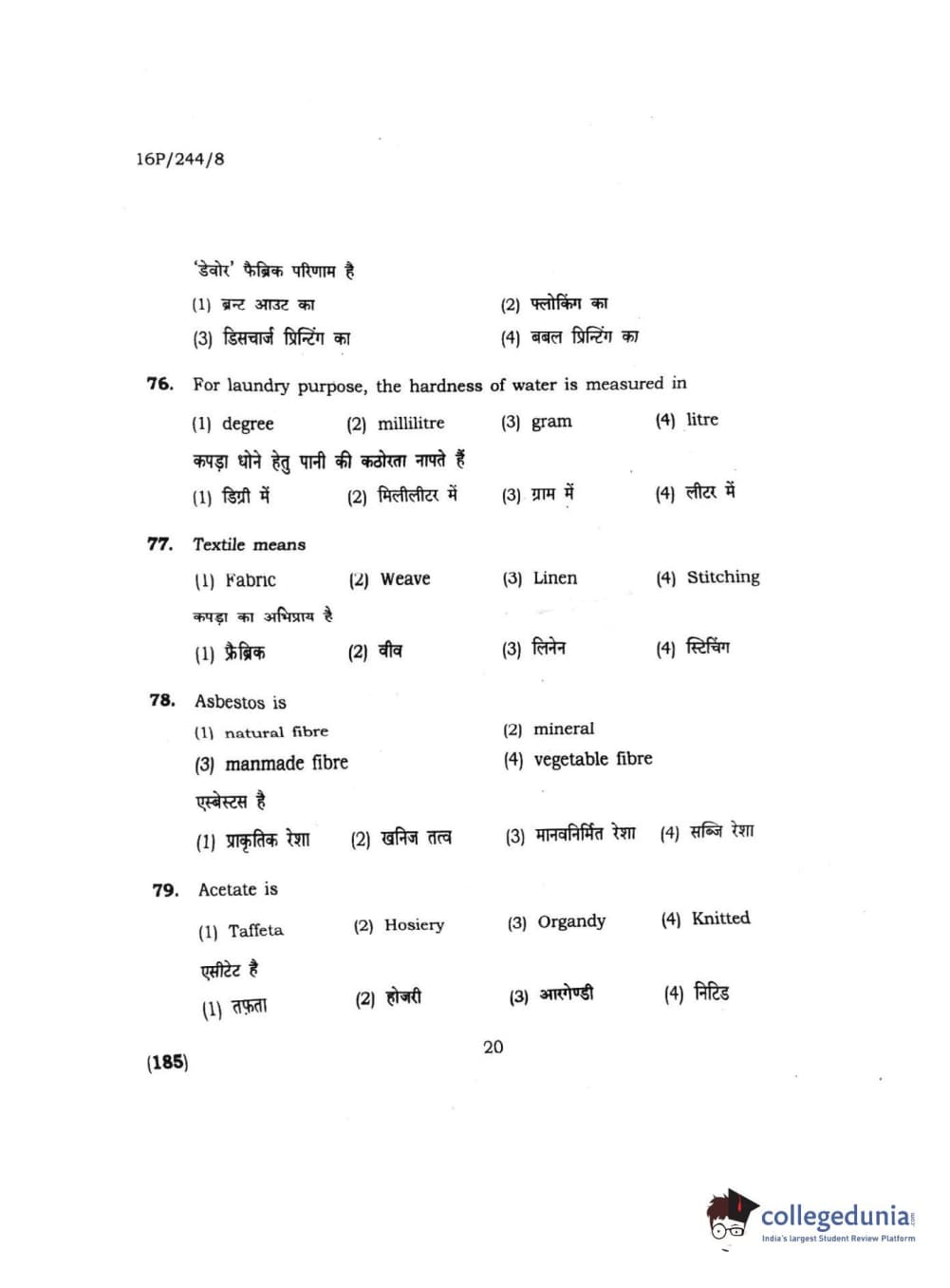 BHU PET 2016 M.A. M.SC. HOME SCIENCE Question Paper with Answer Key PDFs