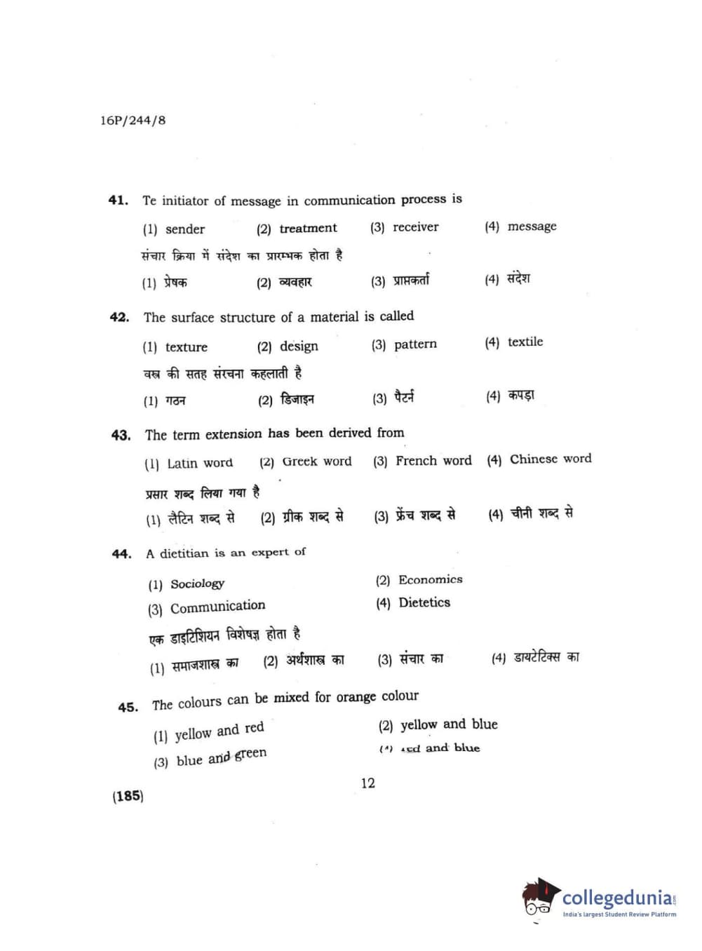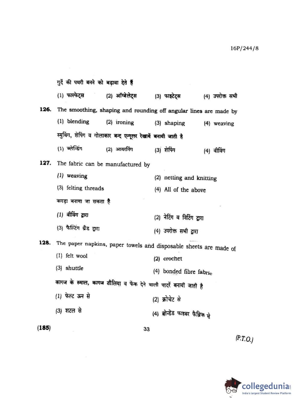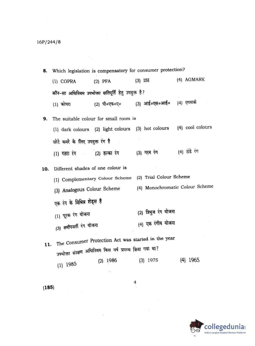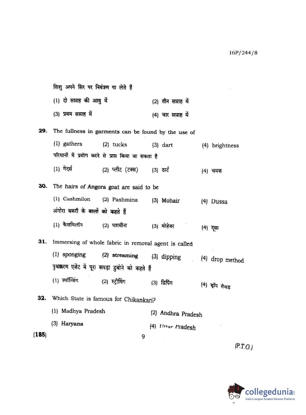 BHU PET 2016 M.A. M.SC. HOME SCIENCE Question Paper with Answer Key PDFs