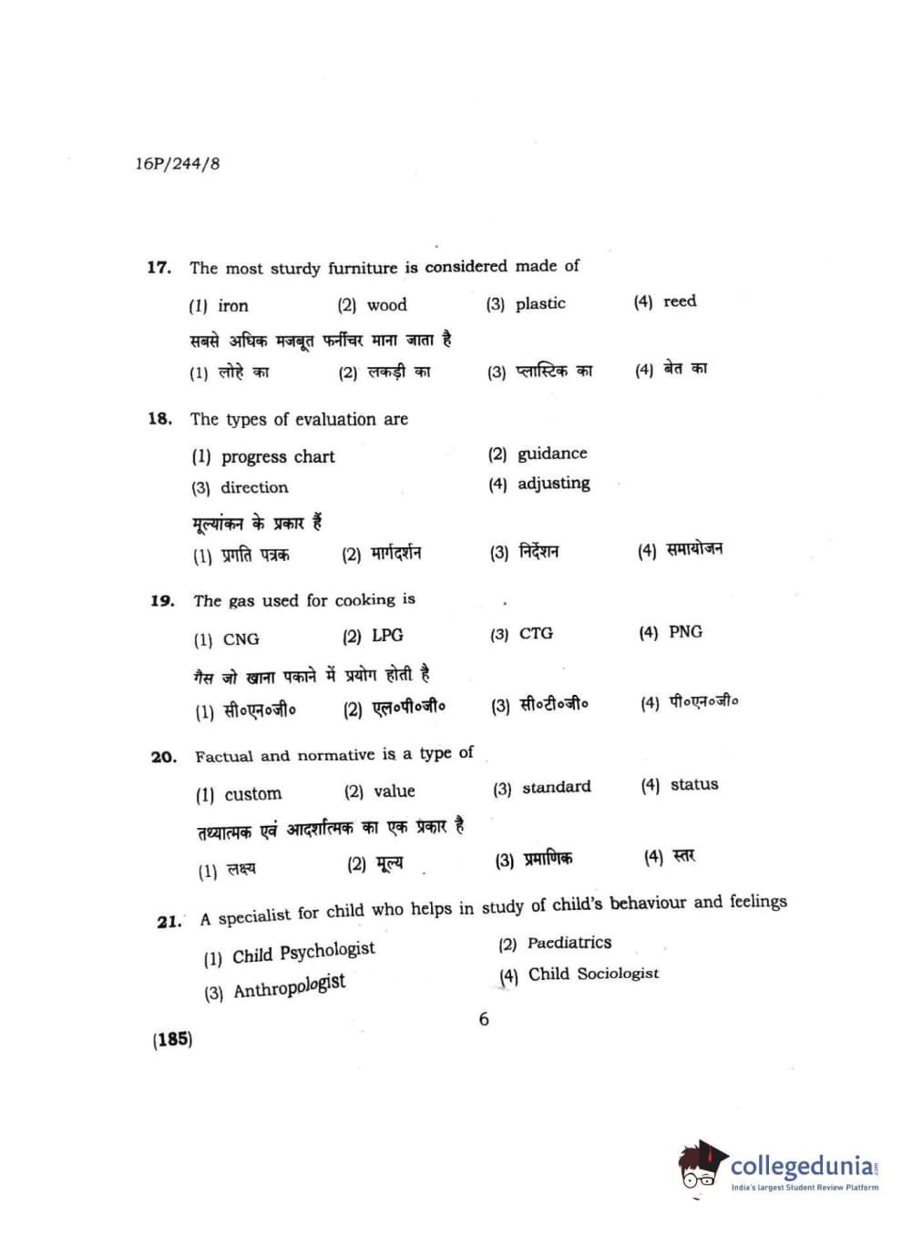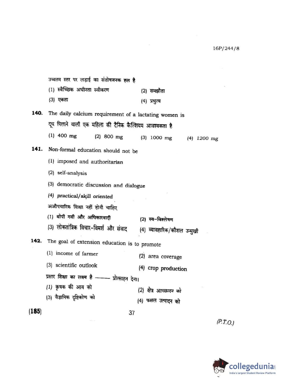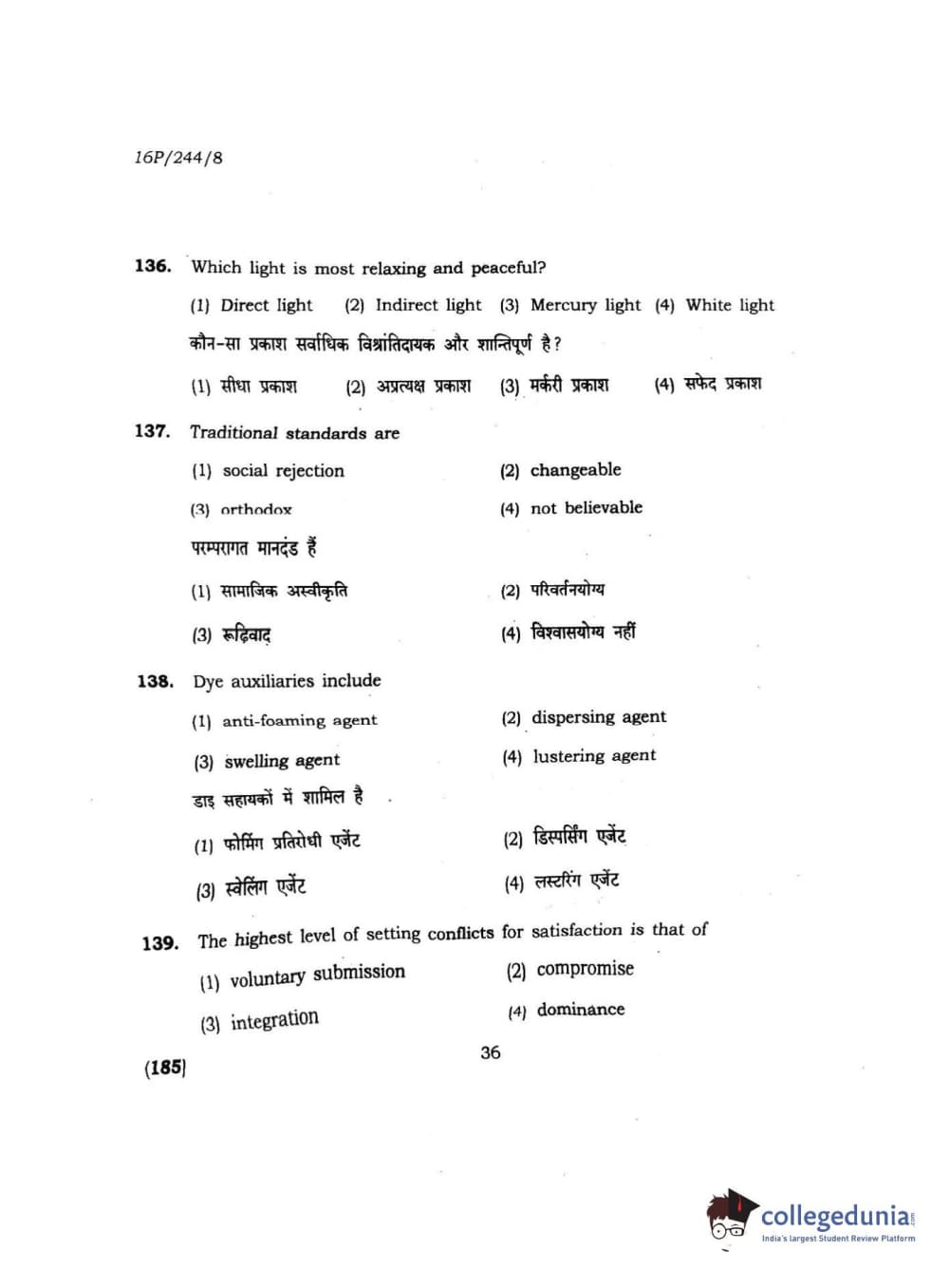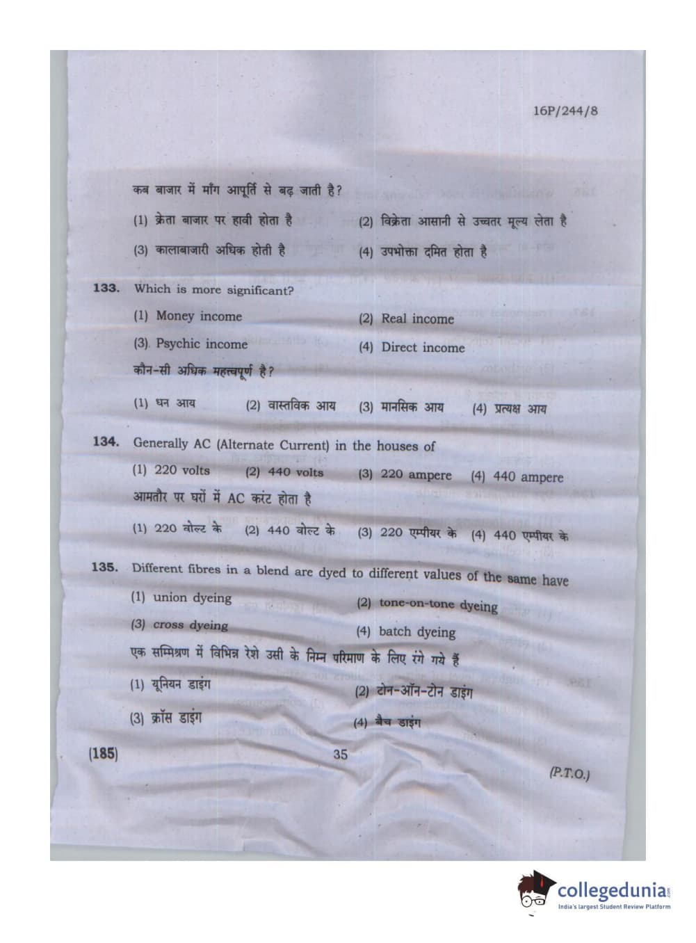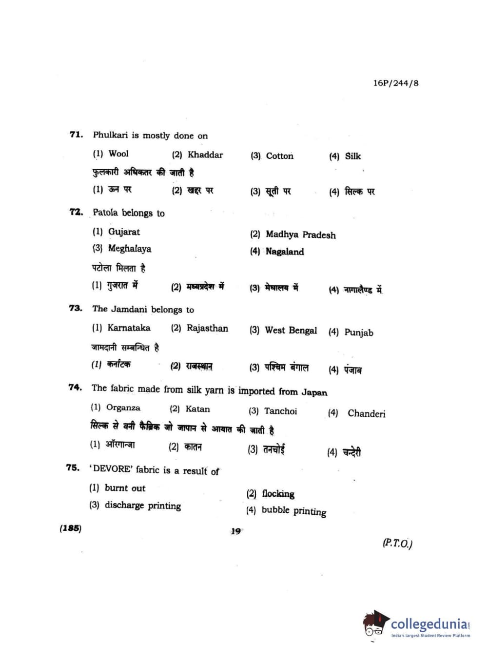 BHU PET 2016 M.A. M.SC. HOME SCIENCE Question Paper with Answer Key PDFs