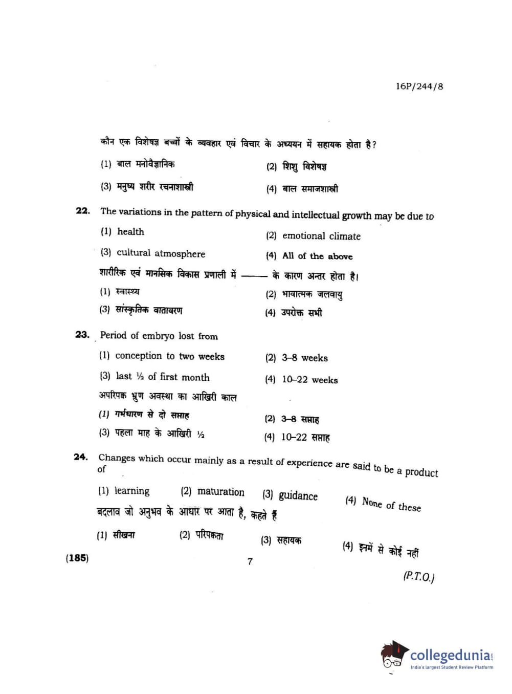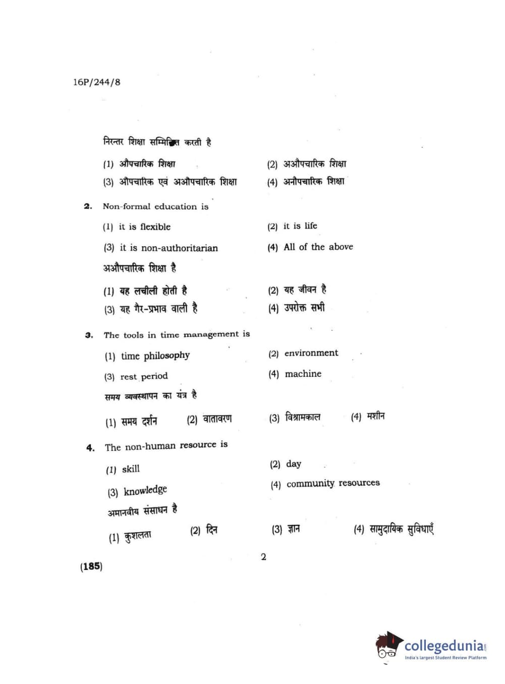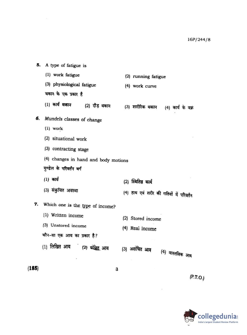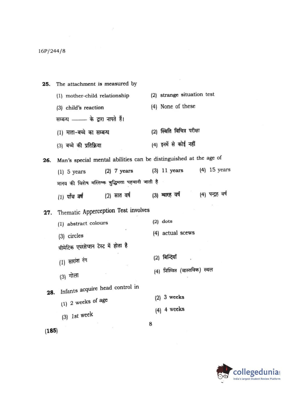 BHU PET 2016 M.A. M.SC. HOME SCIENCE Question Paper with Answer Key PDFs