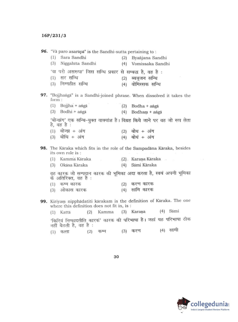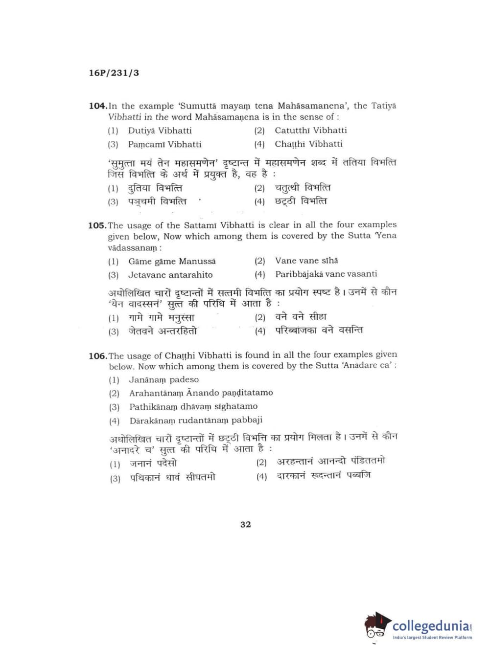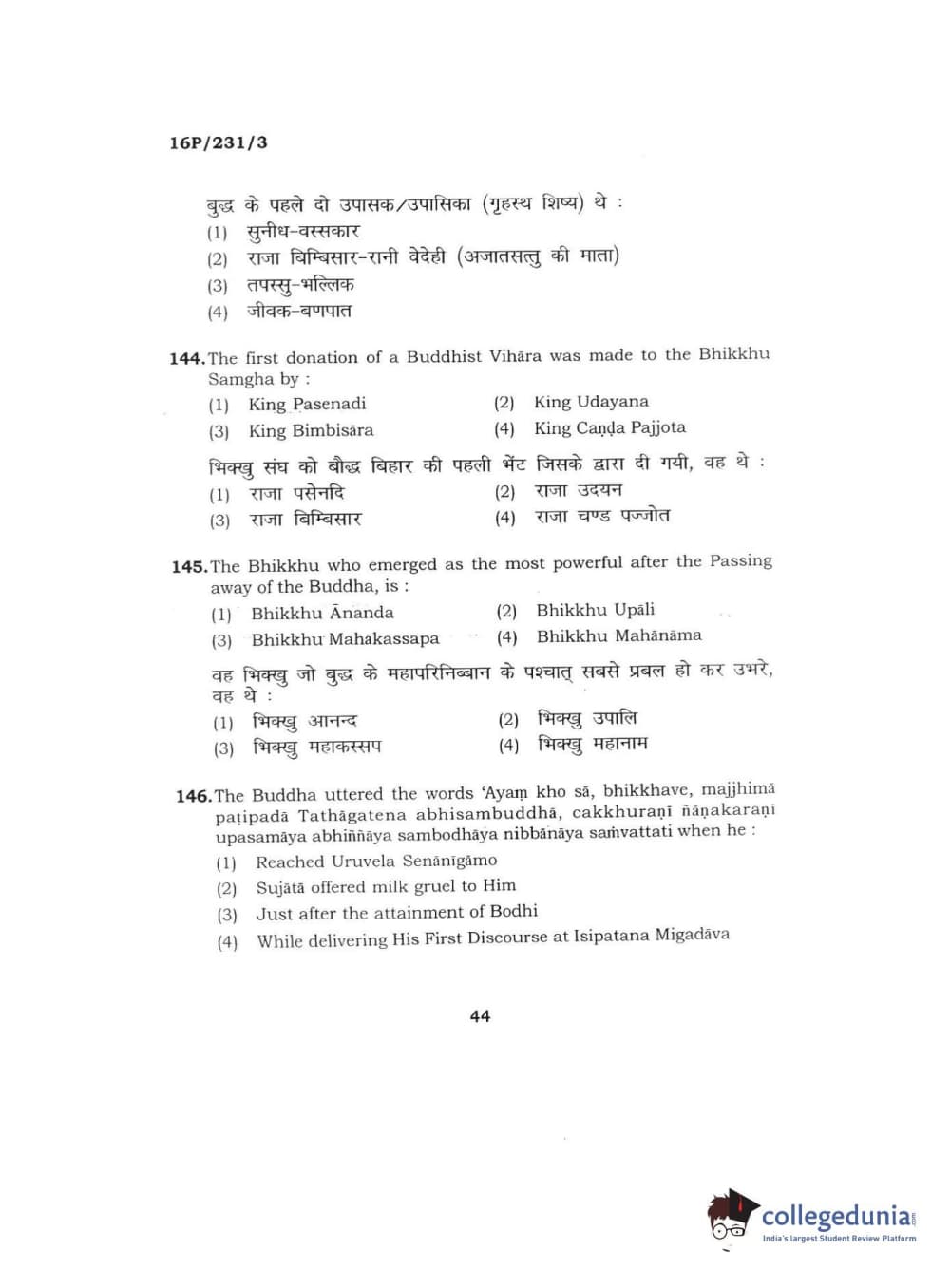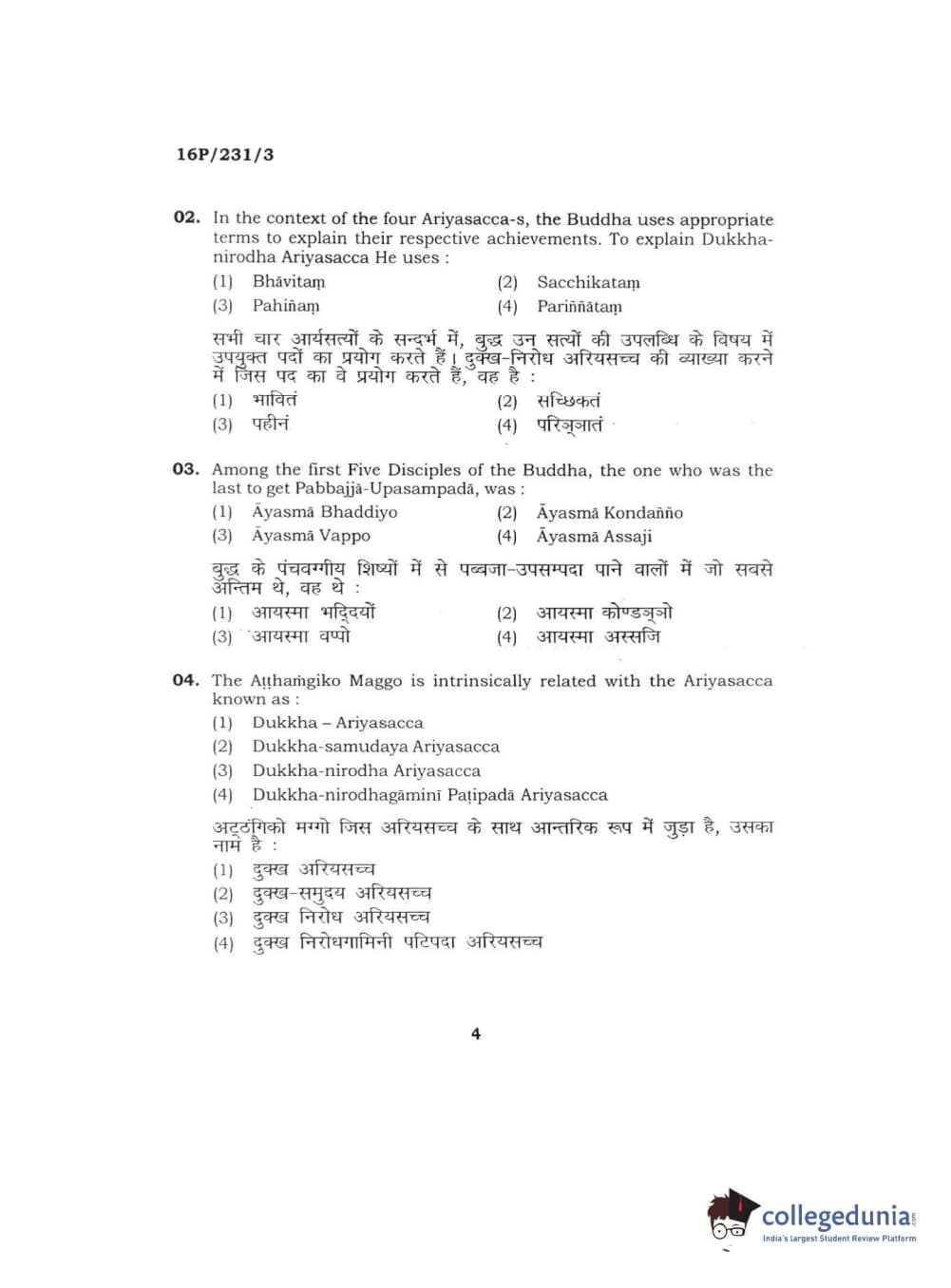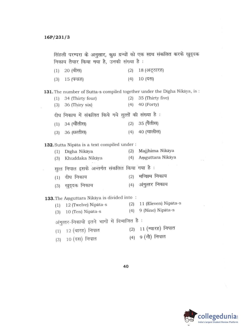 BHU PET 2016 M.A. PALI Question Paper with Answer Key PDFs
