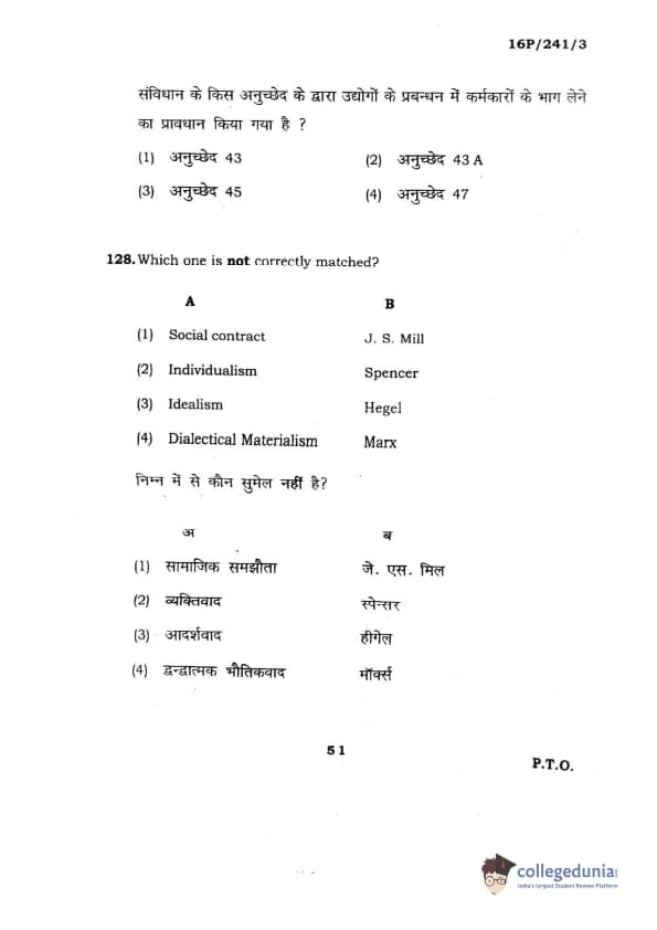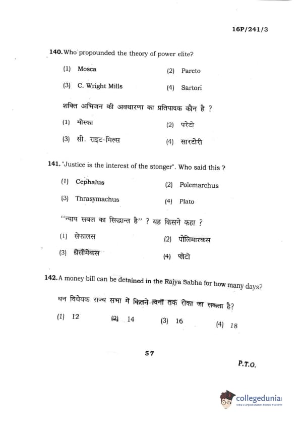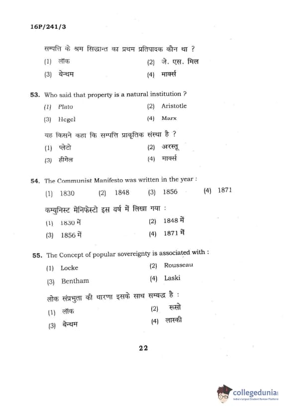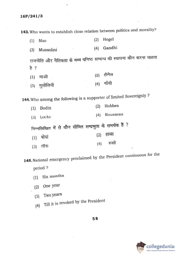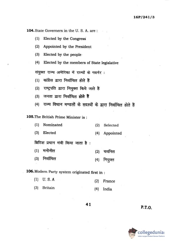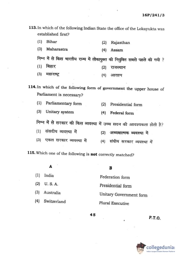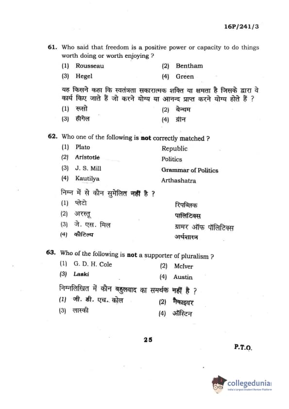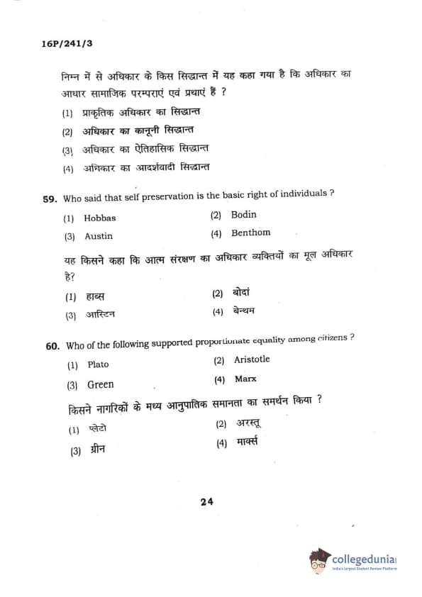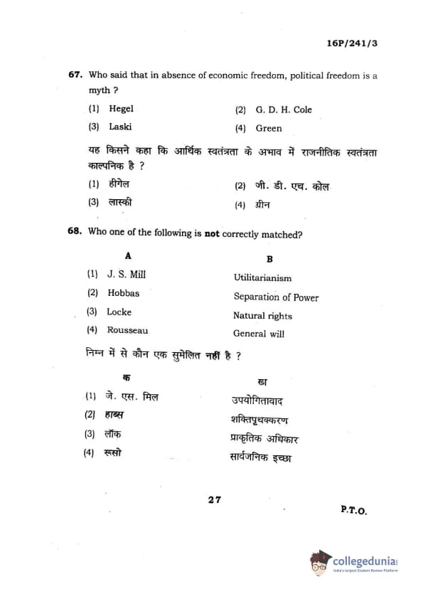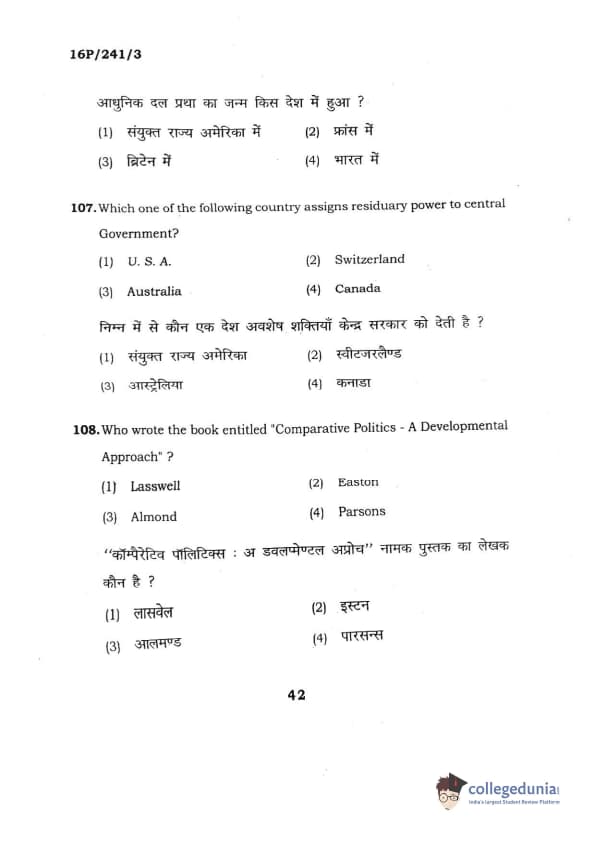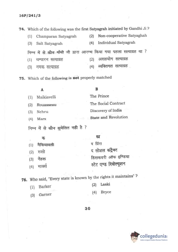 BHU PET 2016 M.A. POLITICAL SCIENCE Question Paper with Answer Key PDFs