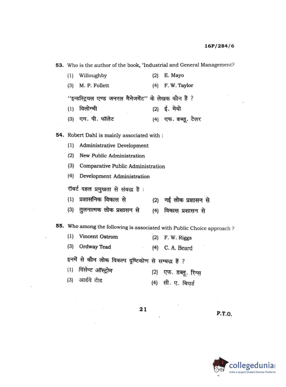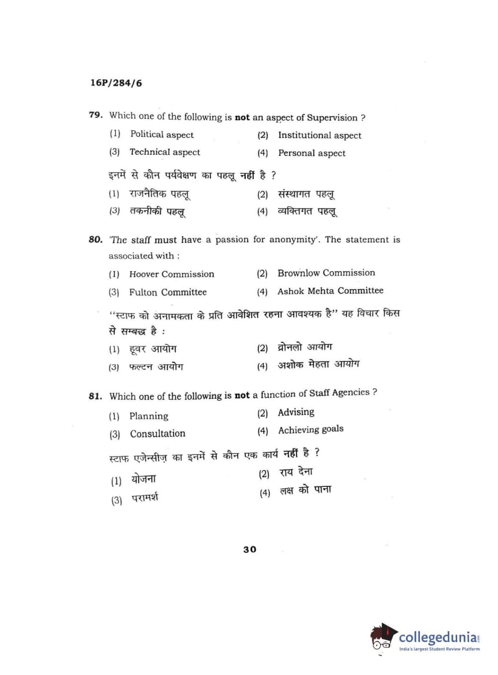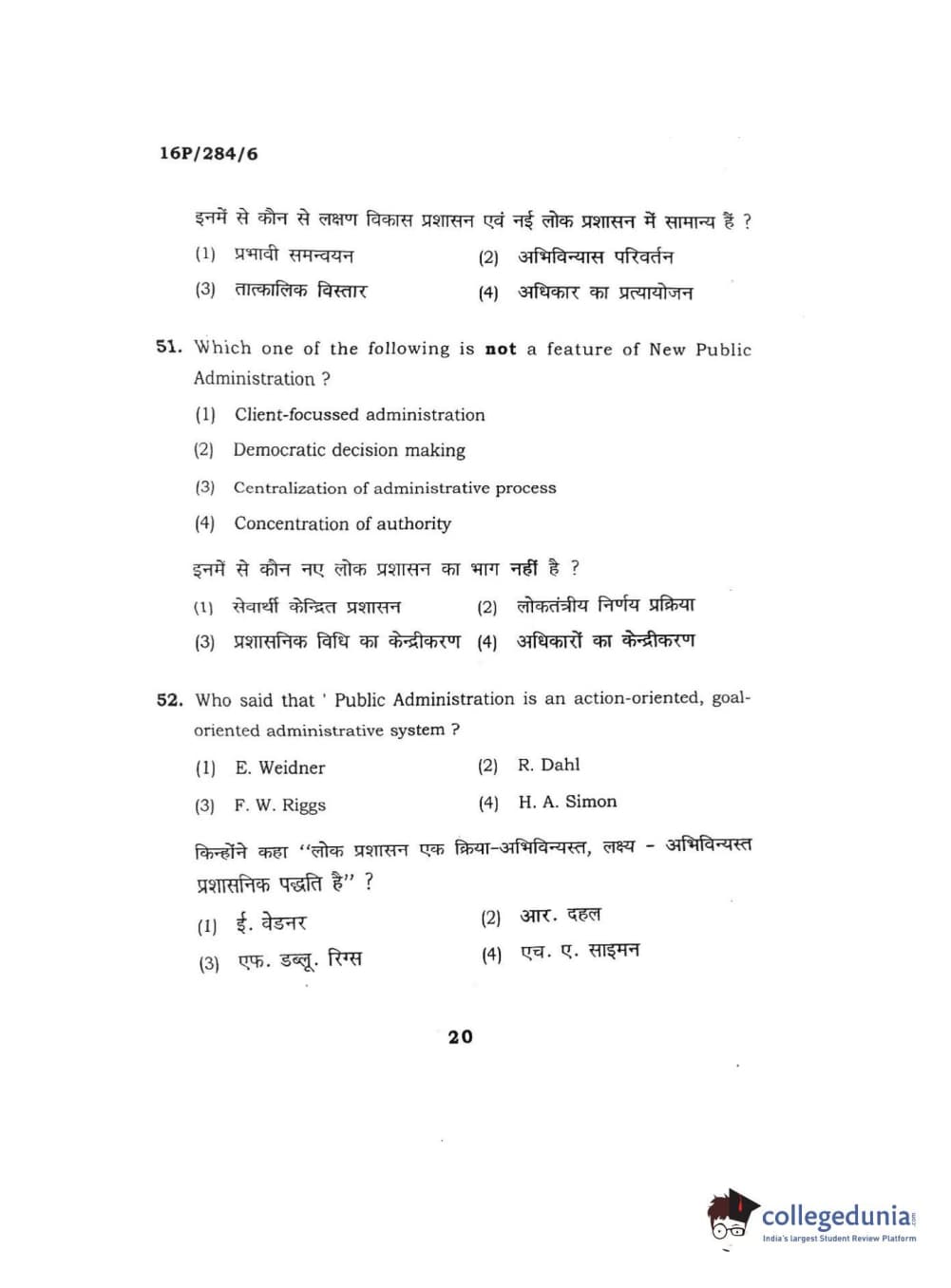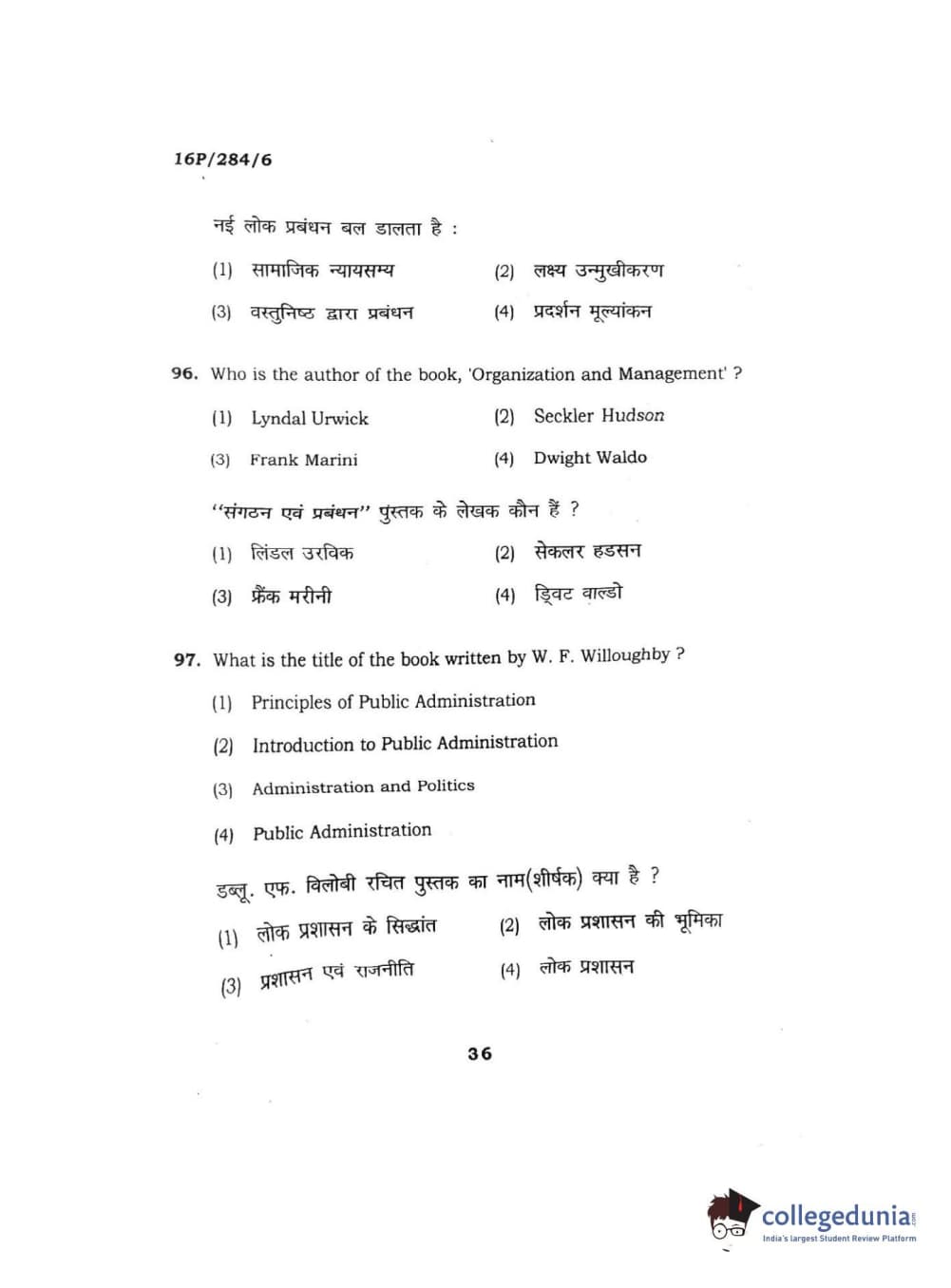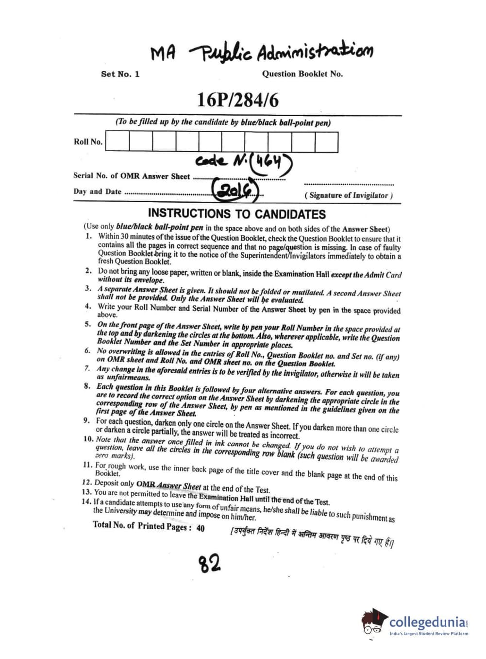 BHU PET 2016 M.A. PUBLIC ADMINISTRATION Question Paper with Answer Key PDFs